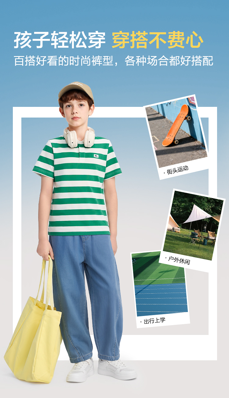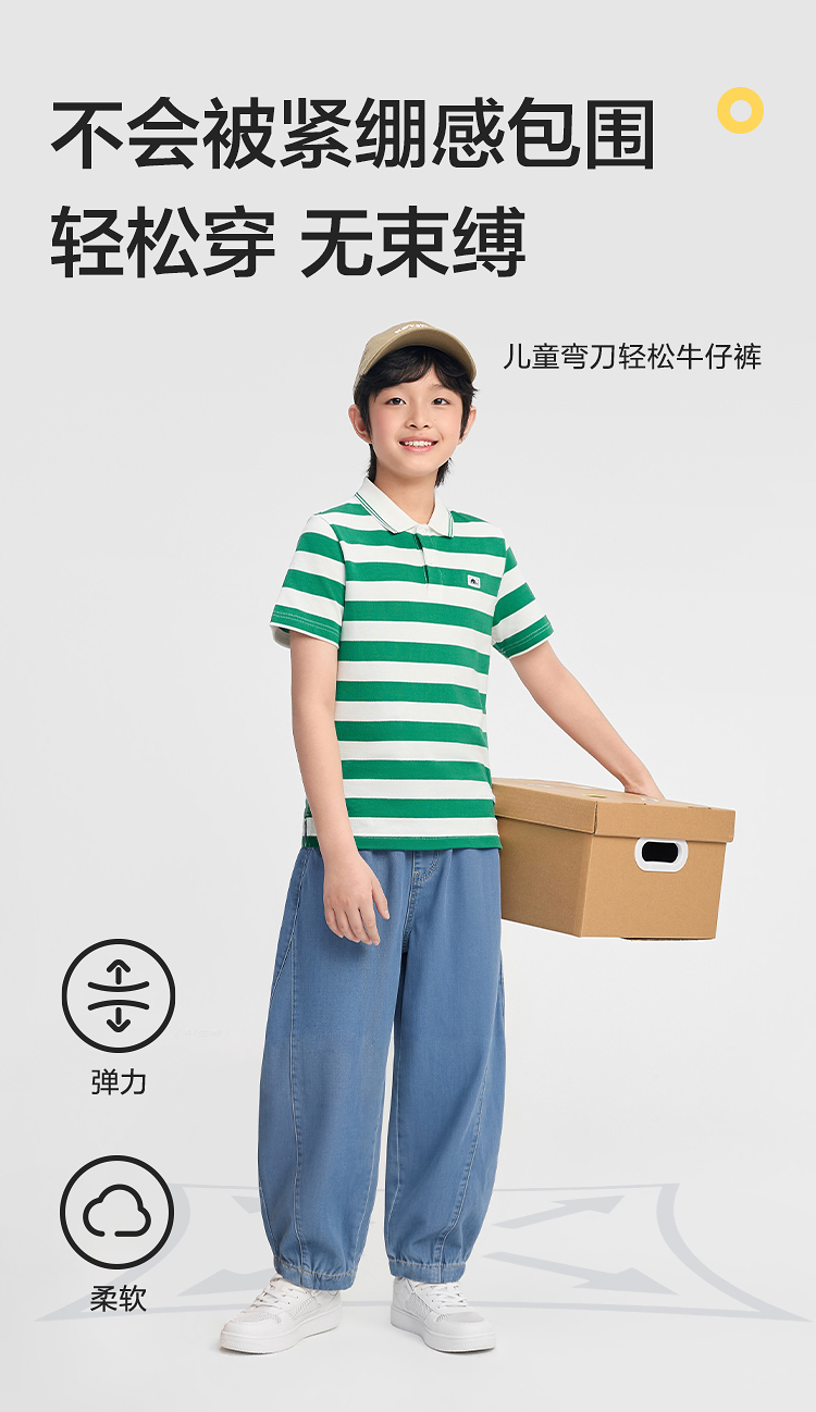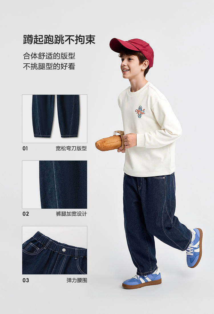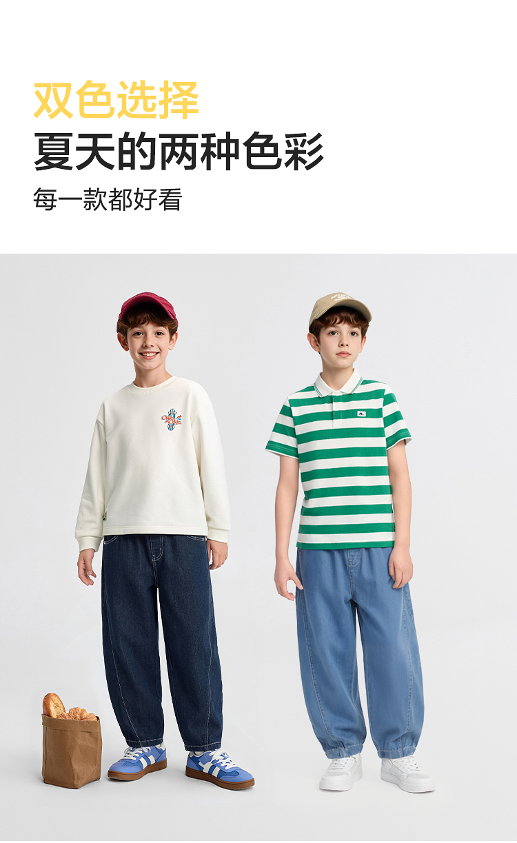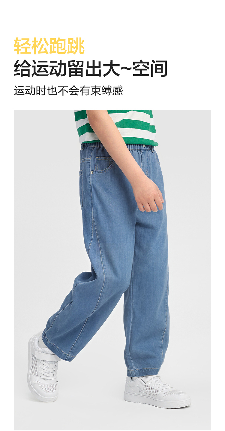 【balaOne】巴拉巴拉男童牛仔裤儿童裤子2026新款夏装长裤弯刀裤