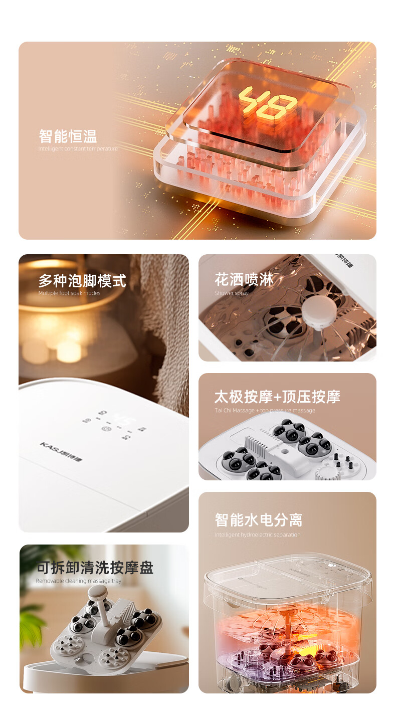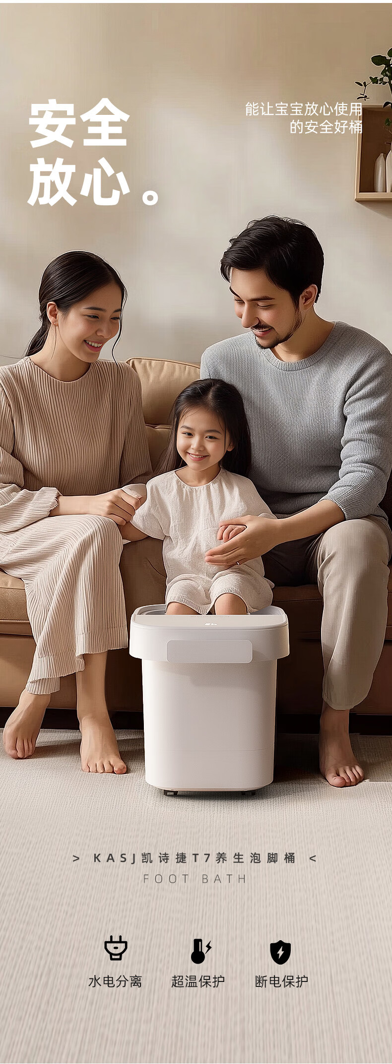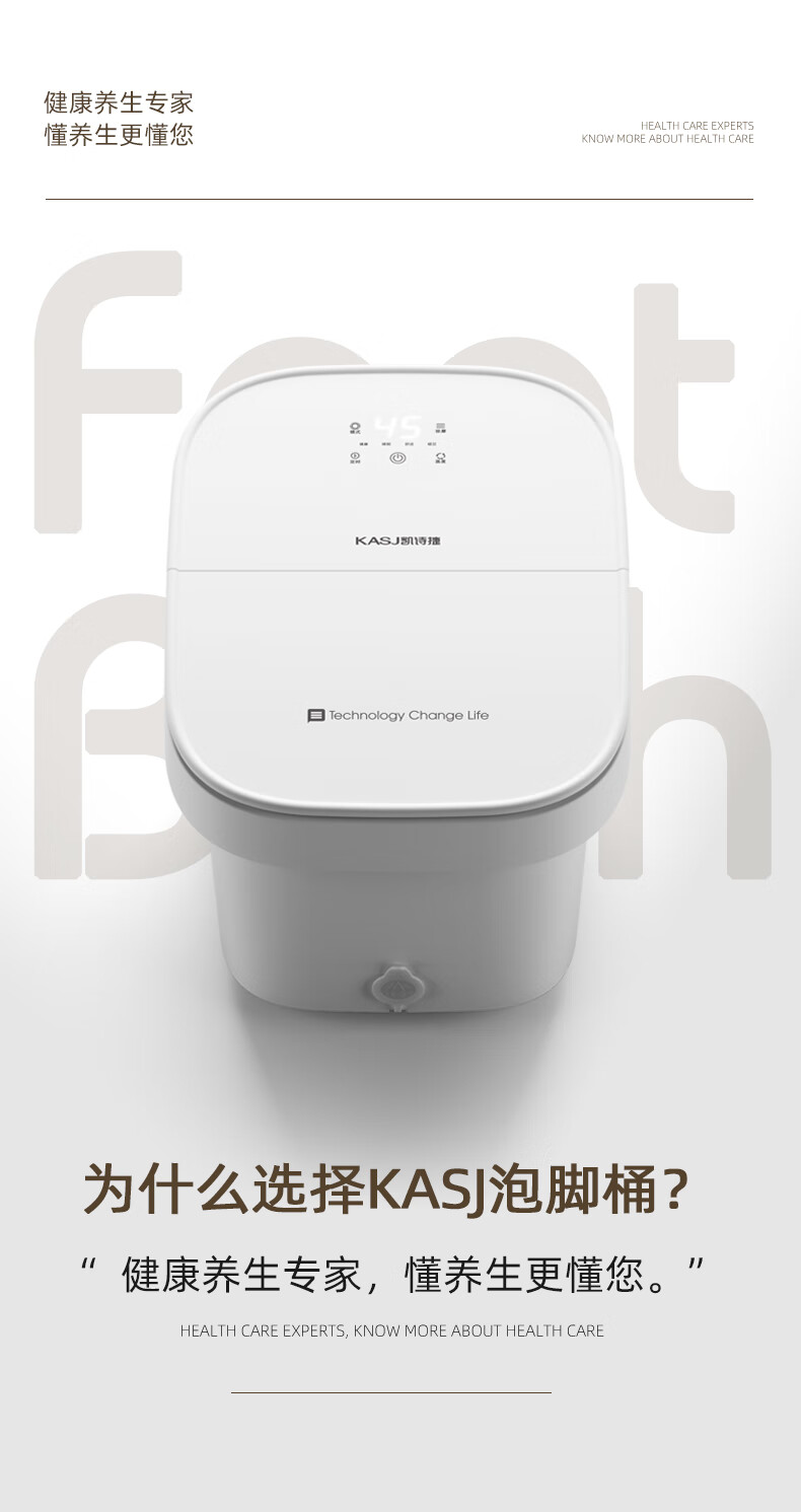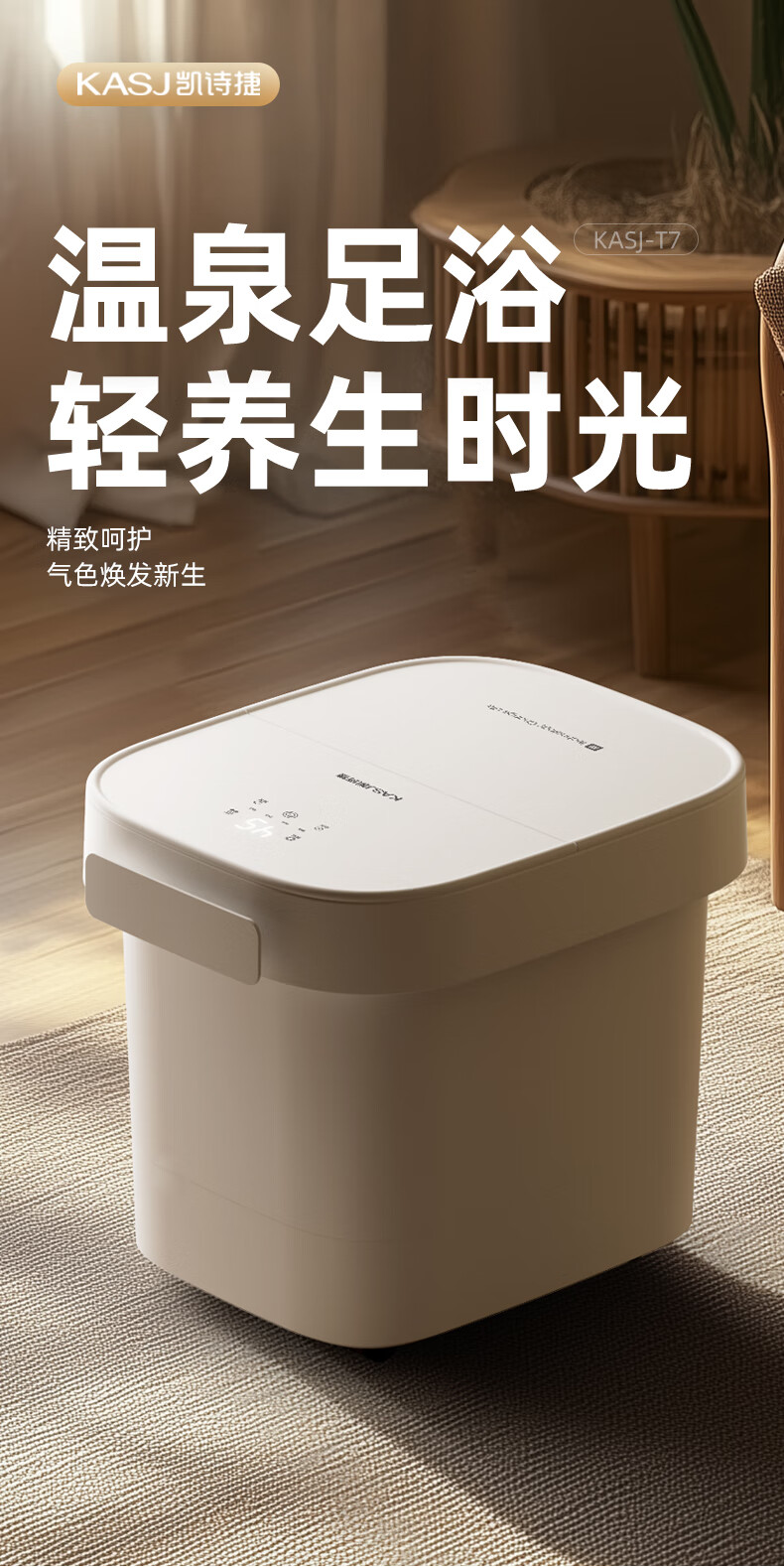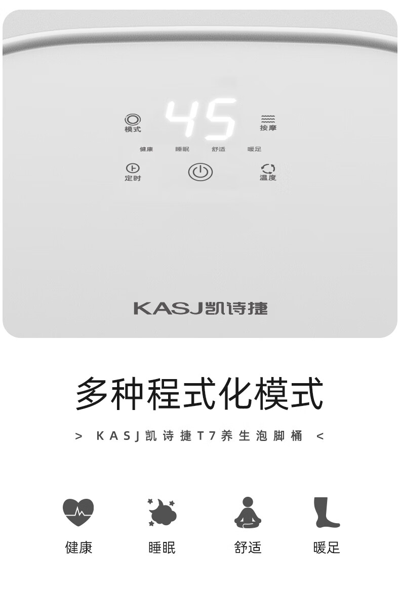 凯诗捷(KASJ)足浴盆自动按摩泡脚桶泡脚盆加热洗脚盆足疗盆 【T7旗舰款明月白】可拆卸按摩盘