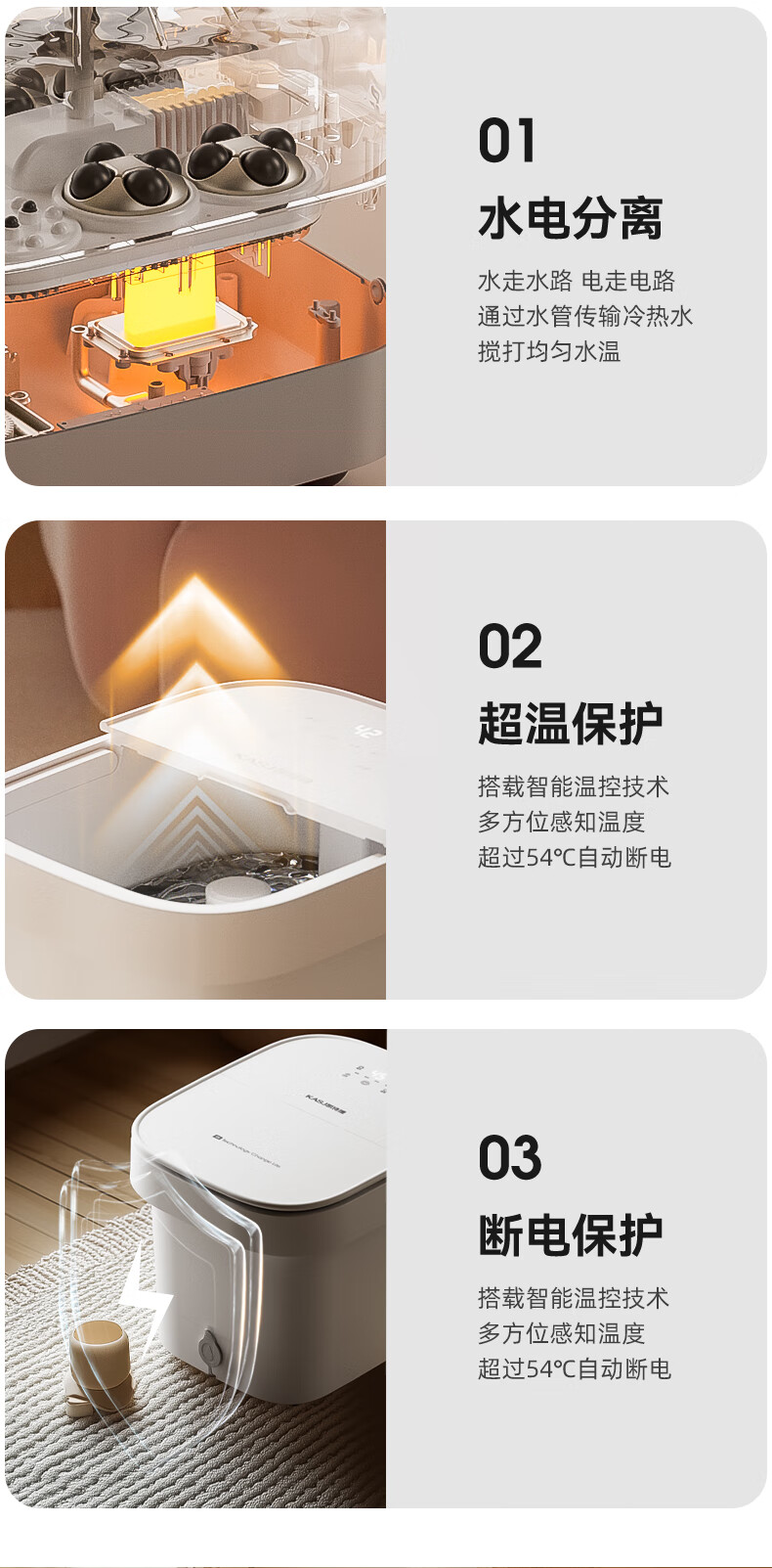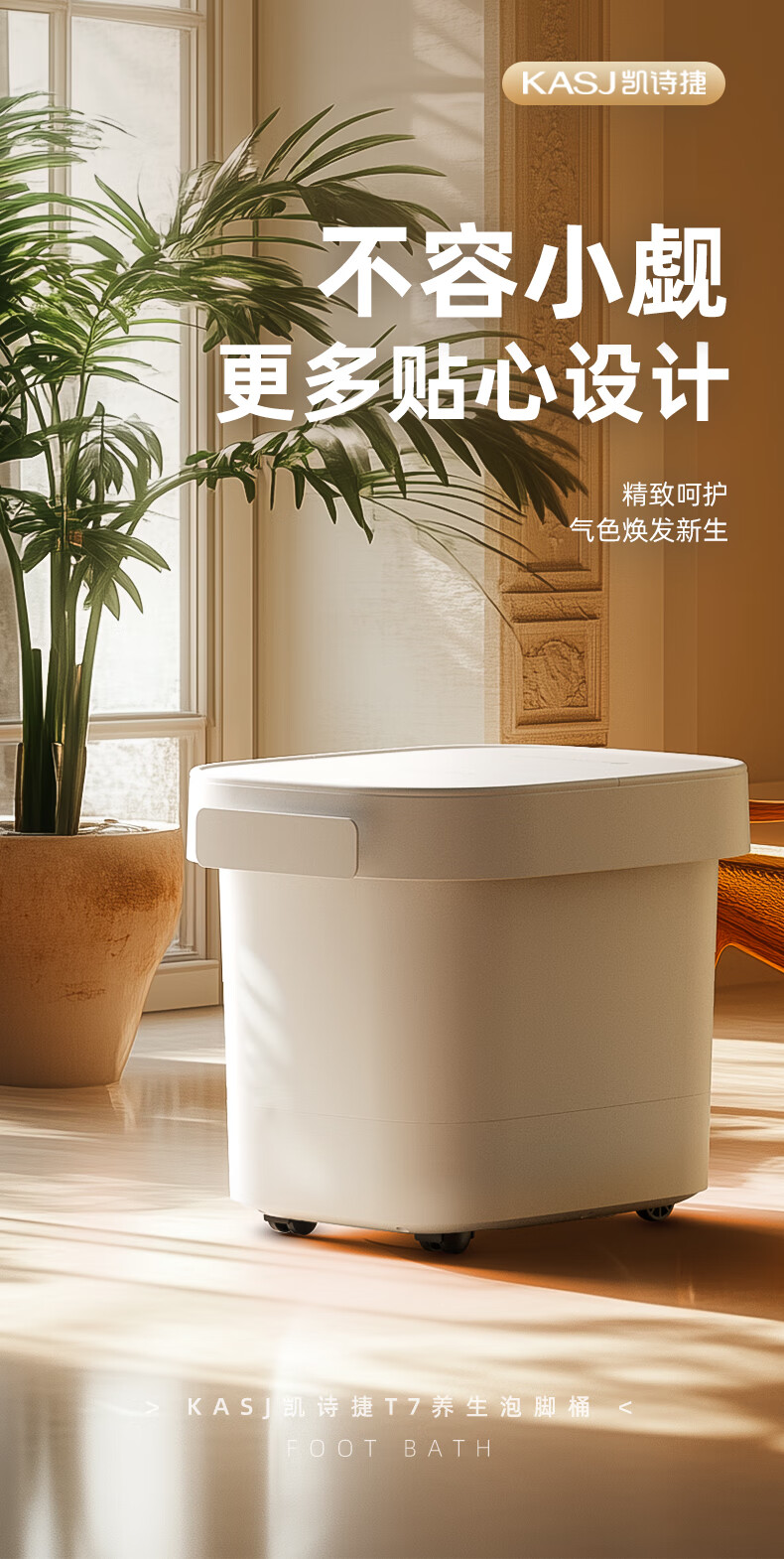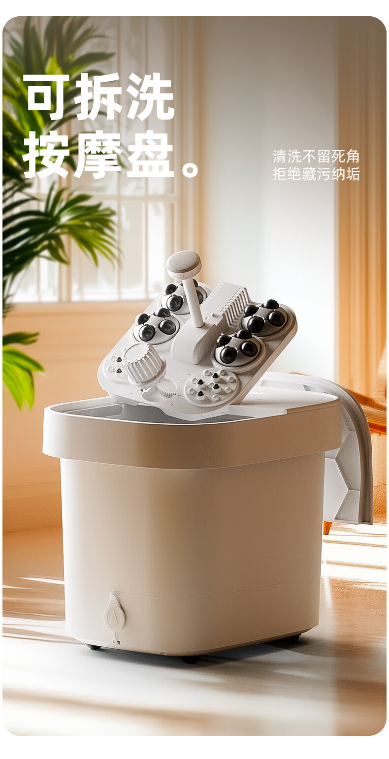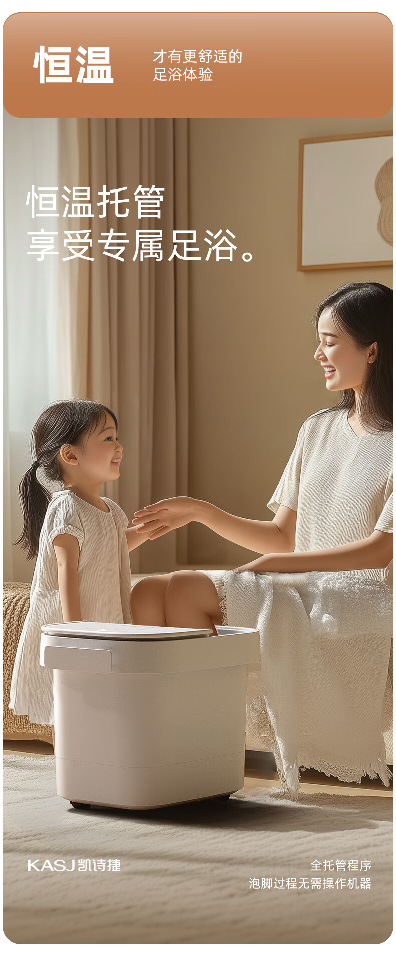 凯诗捷(KASJ)足浴盆自动按摩泡脚桶泡脚盆加热洗脚盆足疗盆 【T7旗舰款明月白】可拆卸按摩盘