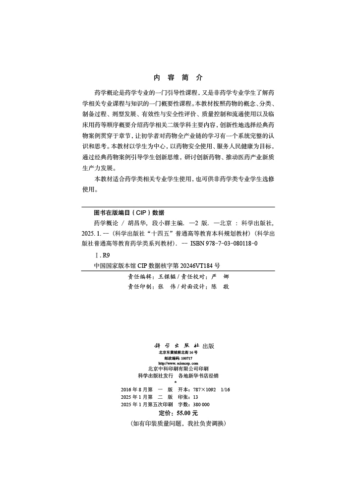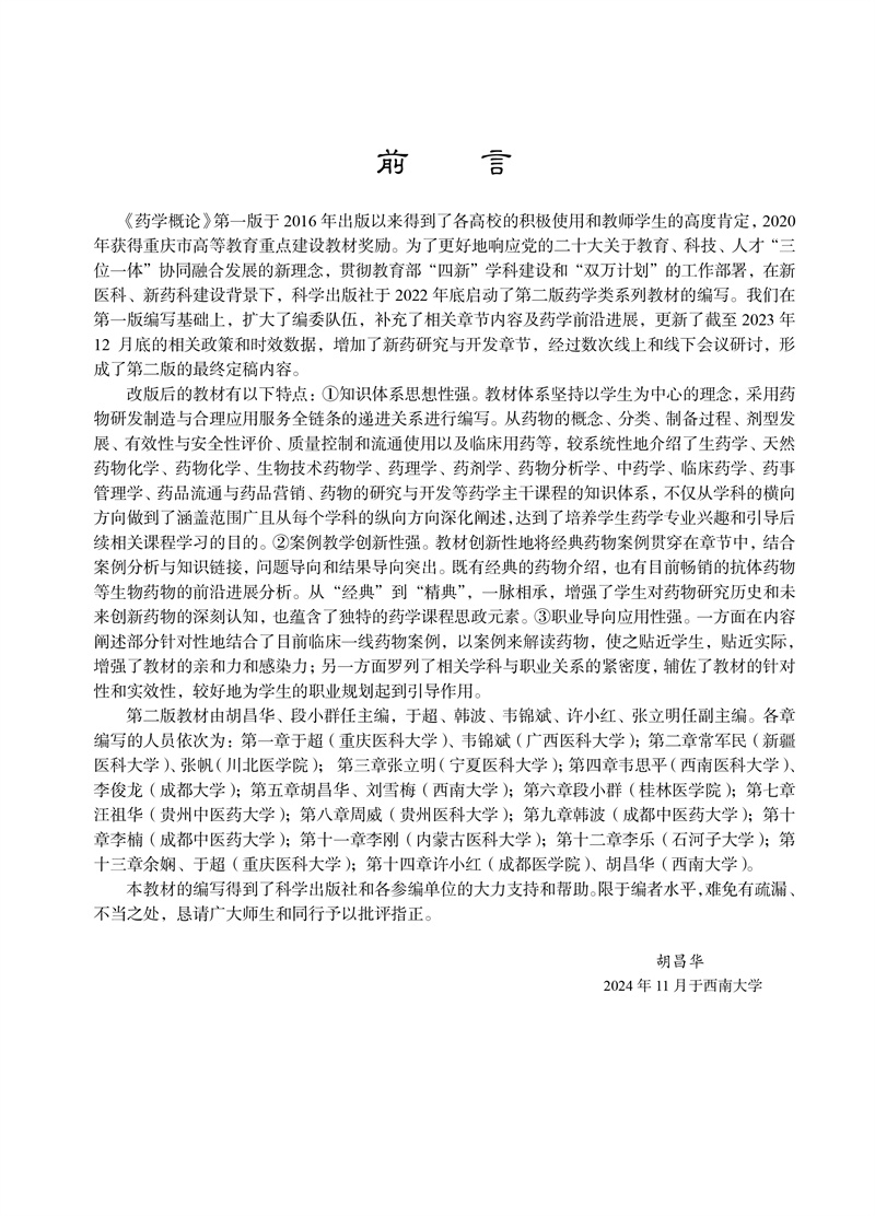 药学概论 第2版 十四五普通高等教育本科规划教材 胡昌华等编 本教材适合药学类相关专业学生使用 也可供非药学类专业学生选修使用