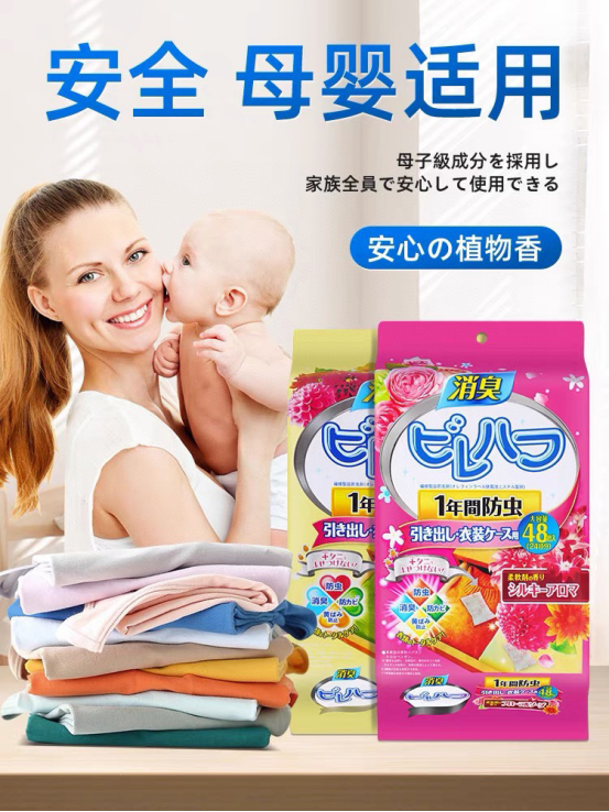 天然植物提取的衣物防蛀剂,主要成分是烯炔菊酯,除虫菊植物萃取,能够有效抑制蛀虫的食欲,对织物起到防蛀作用,可用于防治黑皮囊(一种破坏织物的虫) 衣柜除味防霉防虫包,居家必备!芬芳香味有效防蛀、防霉、防黄、防螨虫、更含有消臭成分、有效保护衣服!一包持续365天,功能强大,让衣物没有怪味.芳香清新去味