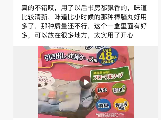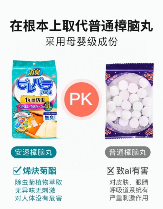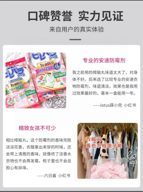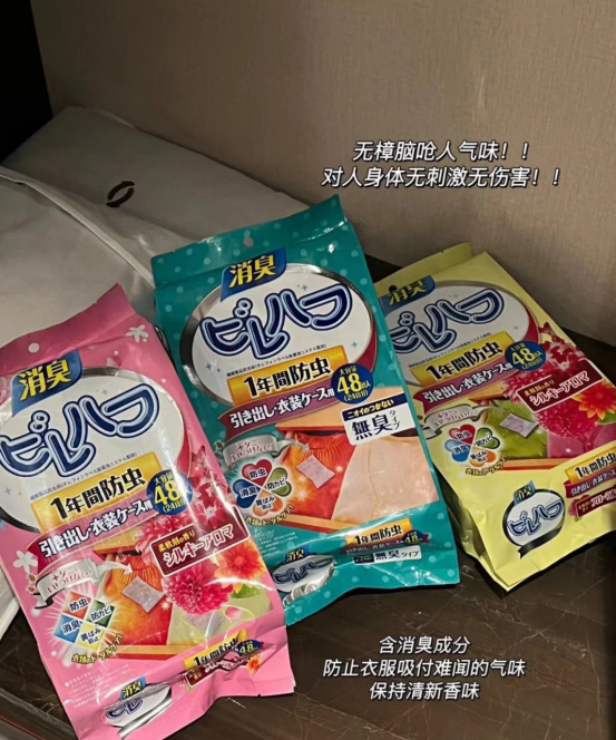 一款衣物防蛀剂 是天然植物提取的 简单来说就是进阶版樟脑丸! 而合成樟脑丸只能防虫、防蛀、防霉和驱赶臭虫,并且没有确定的更换期限。 普通樟脑丸那个味道,衣服拿出来都要喷一遍香水才敢出门。是防蛀了,但也真的是不好闻这款自带清香的味道,衣服拿出来都香喷喷的,味道还多选,超级好用