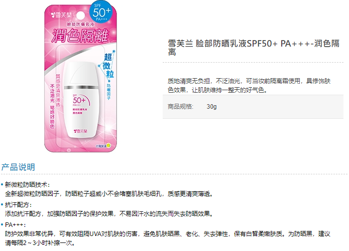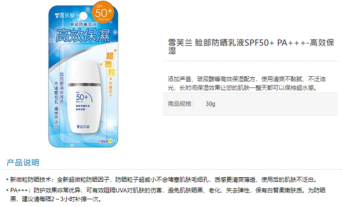 【爆款超低价预售 急单慎拍】雪芙兰脸部防晒嫩白保湿隔离SPF50+ 防晒乳30g