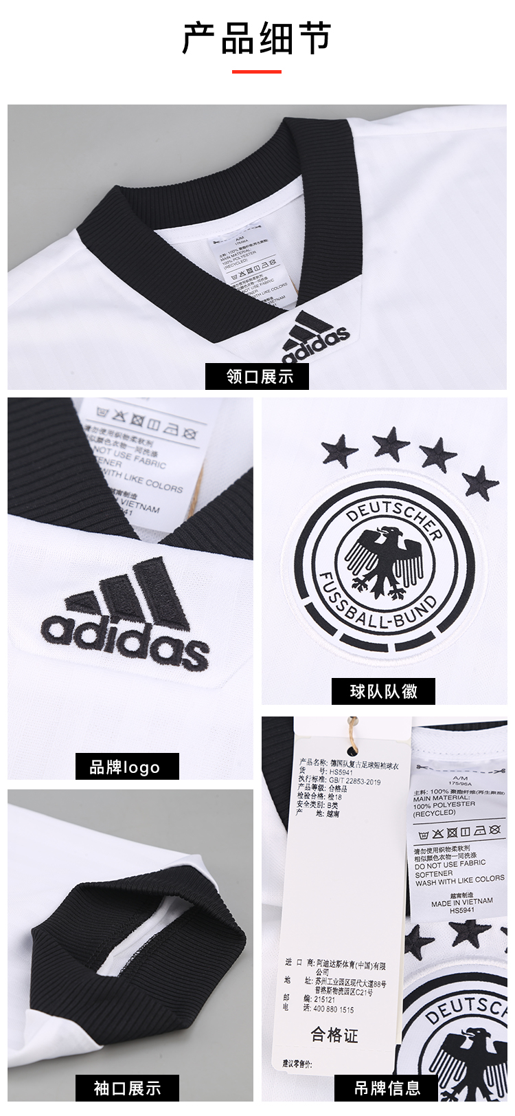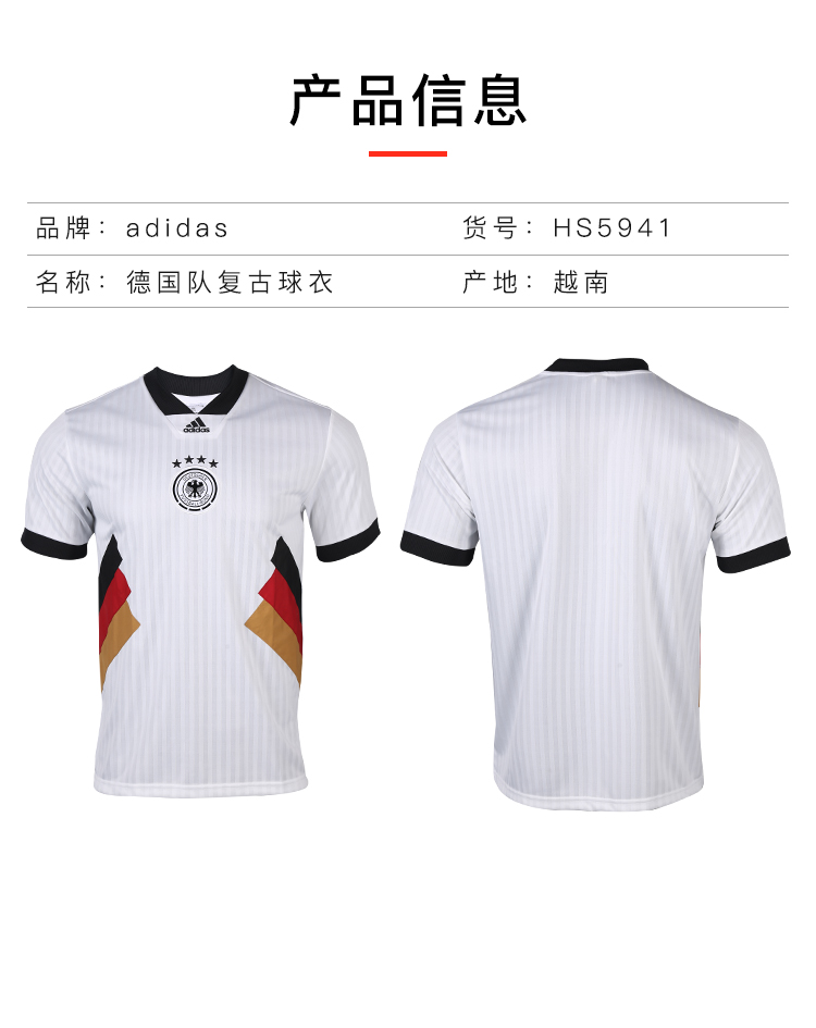 ADIDAS/阿迪达斯DFB ICON JSY德国队复古足球短袖球衣HS5941