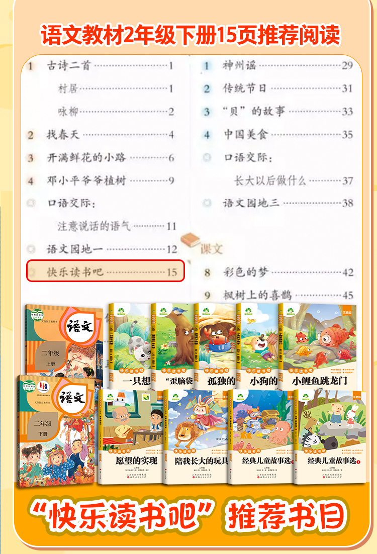 【全套9册】快乐读书吧二年级上册下册语文必读小学生课外书注音版配套人教版小鲤鱼跳龙门一只想飞的猫神笔马良七色花愿望的实现