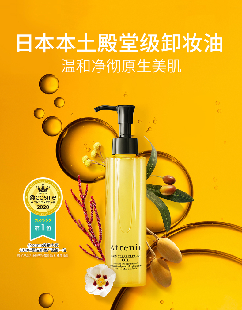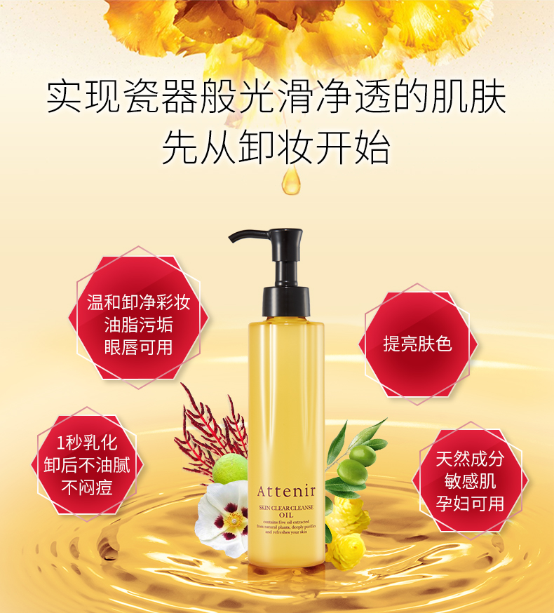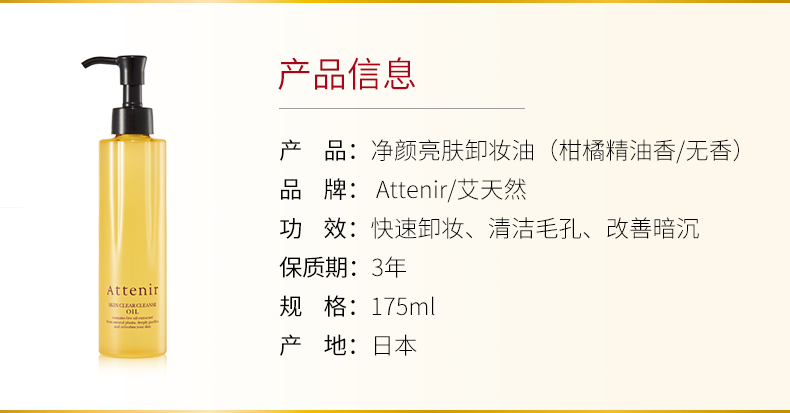 attenir艾天然净颜亮肤深层清洁抗老化卸妆油175ml 无香柑橘香