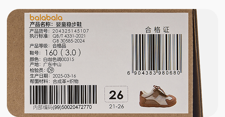 【商场同款】巴拉巴拉宝宝稳步鞋男童婴儿鞋2025秋新款阿甘鞋复古