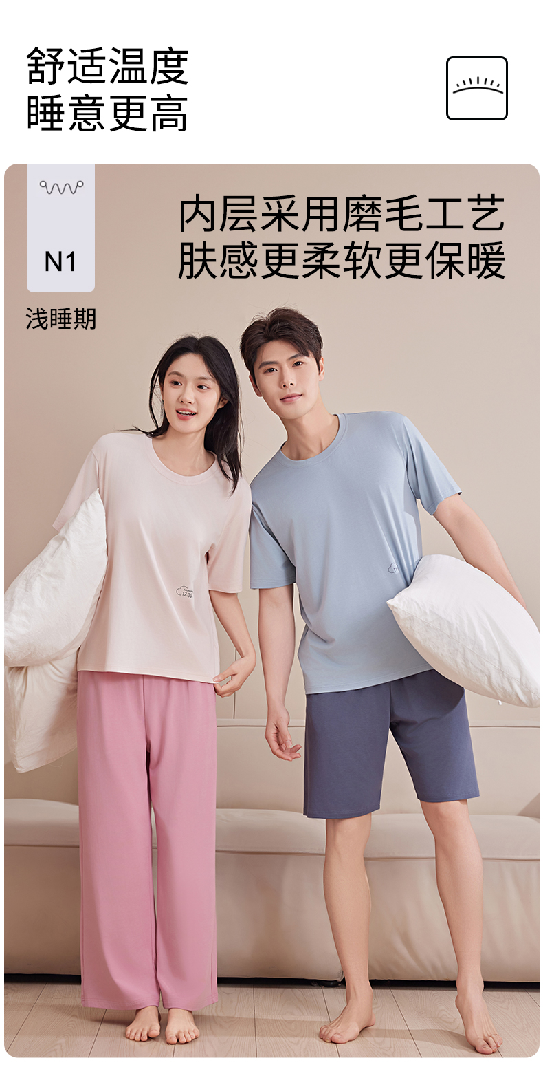 专属!夏季热卖!【茶稚CHAZHI情侣莫代尔家居服睡衣套装】 优质莫代尔+棉混纺面料 亲肤柔软 0压感深睡模式 无痕腰部 无感标签 内外面料舒适 贴合肌肤