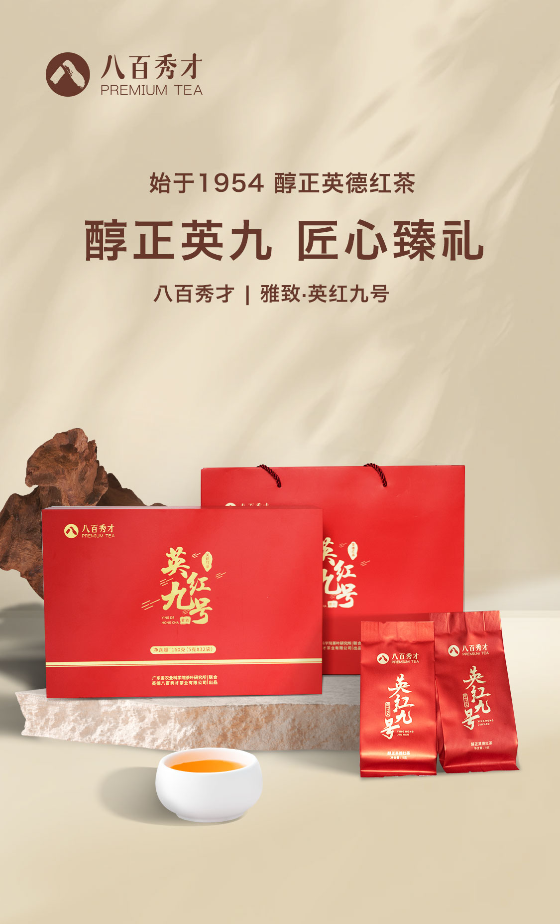 【花香型】八百秀才1954英红九号礼盒装160g