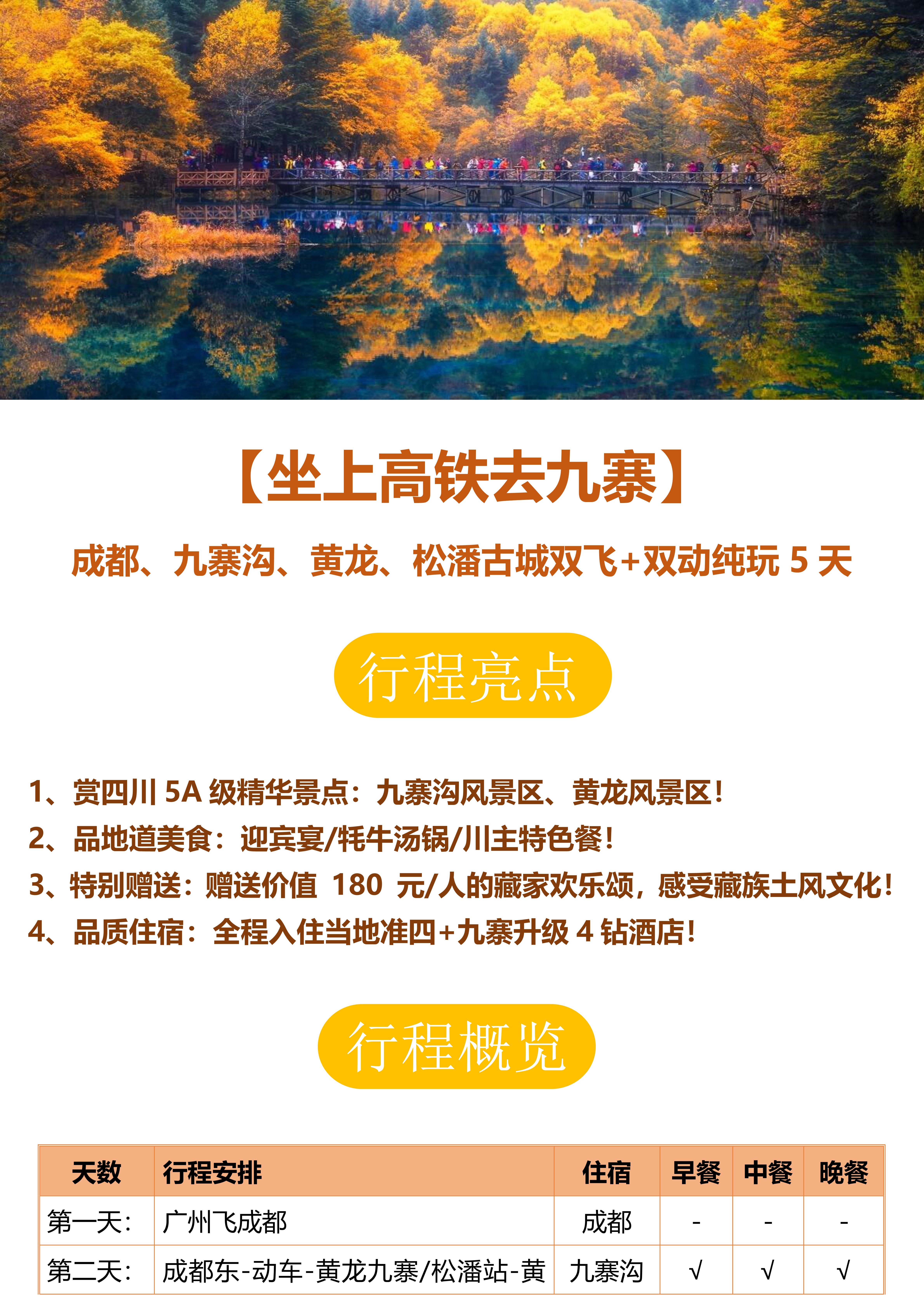 【坐上高铁去九寨】 成都、九寨沟、黄龙、松潘古城双飞+双动纯玩5天