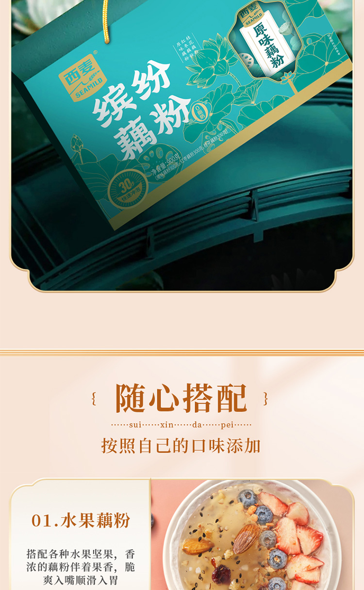 缤纷藕粉礼盒(喜迎人家)900g内含300g*3罐节日礼盒送长辈即冲即饮零蔗糖高纤维 办公室速食早餐营养代餐