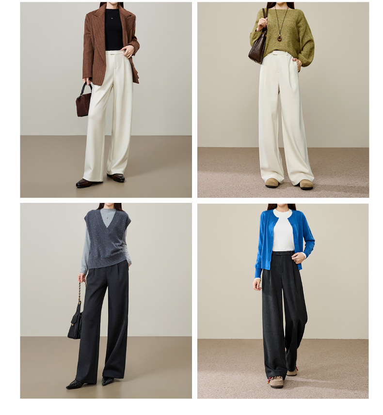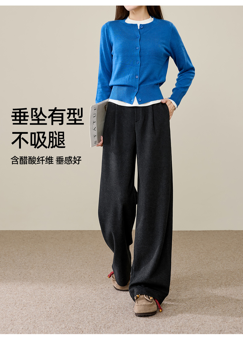 【即将下架!亏本售!西装阔腿裤】逸阳春秋醋酸羊毛高腰垂感显瘦宽松直筒裤8166