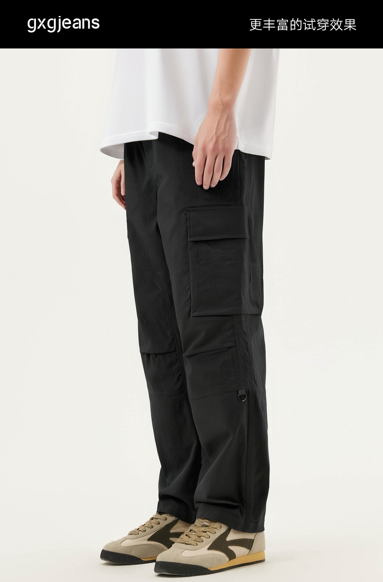 gxg.jeans男装 黑色时尚美式工装裤男松紧腰休闲长裤 25年春热卖