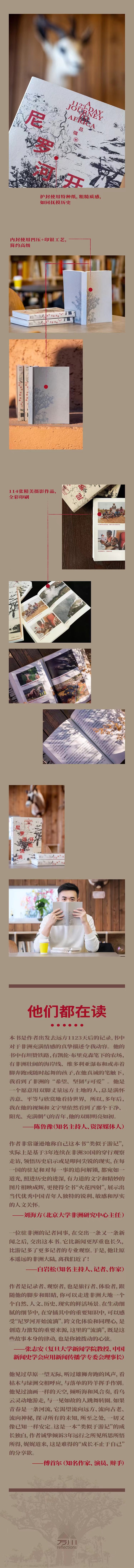 作者是记录者、观察者,也是旅行者、体验者,跟随他的脚步和眼睛,你可以走进非洲大地一个个自然、人文、历史、现实的鲜活场景。在生动细腻的细节中,在穿插其中的重要知识中,可以感受“尼罗河开始流淌”。跨文化体验和同理心,是创造力激发的重要来源,这里的“流淌”,既是这些故事本身的律动,也是你被拨动的心弦。