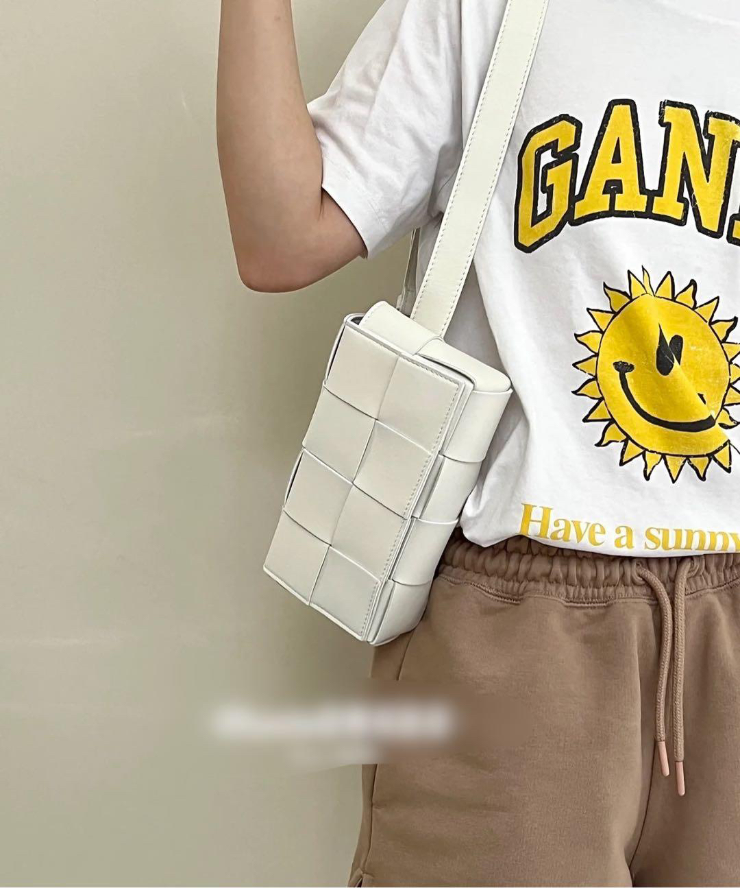 【商品詳情】正品二手 BV Cassette 奶油白 油蜡牛皮 8格 编织 腰包🥚97新 18x11 配件:肩带 防尘袋。bv家的断货王