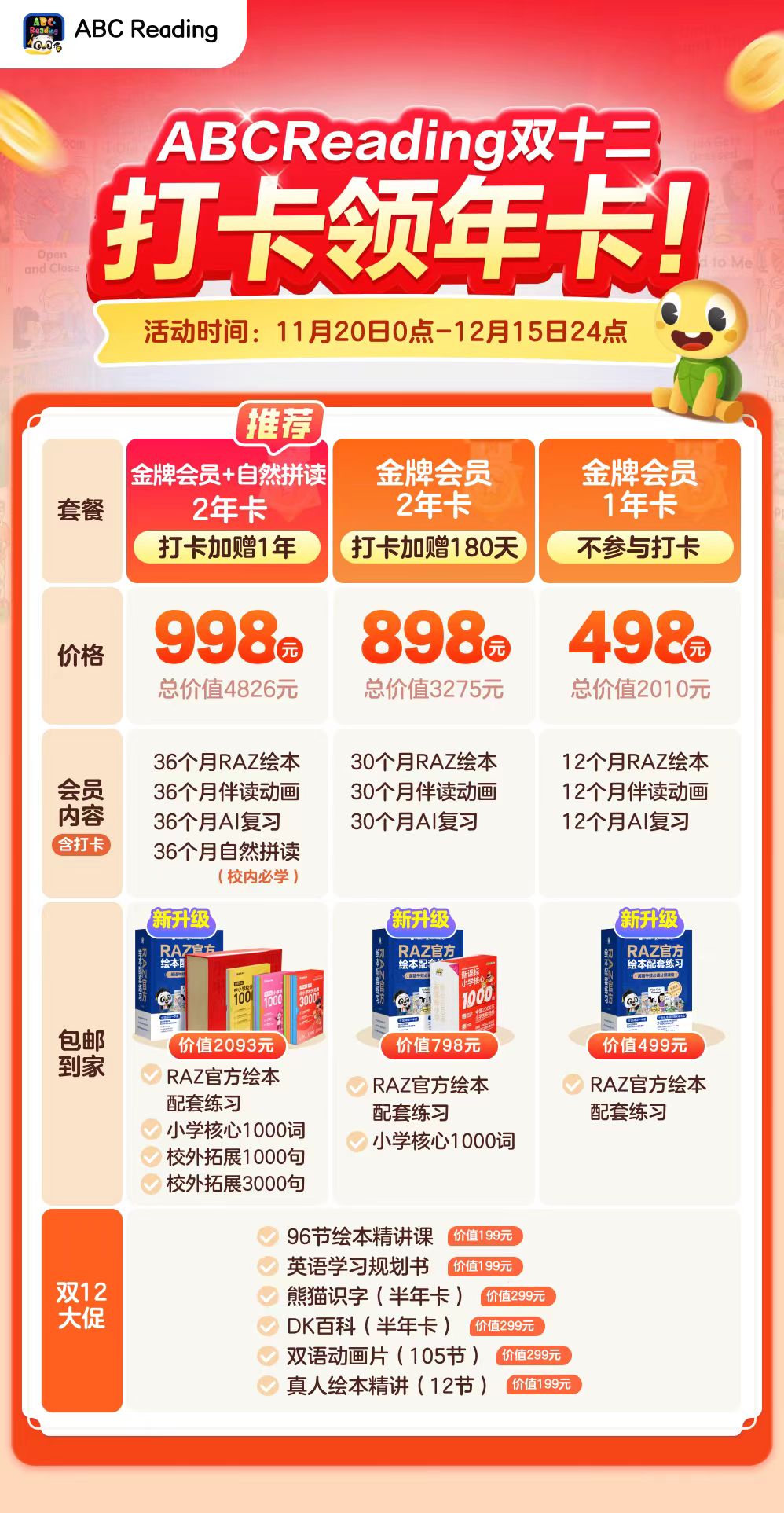双十二打卡领年卡【ABCReading】🏖️英语启蒙规划;用ABC Reading 刷RAZ分级阅读,国内唯一正版授权