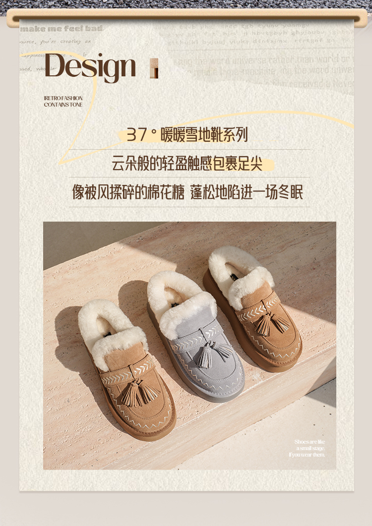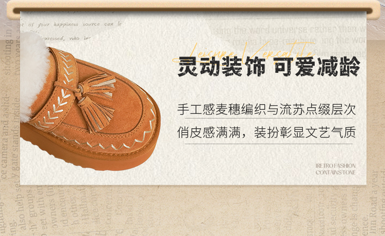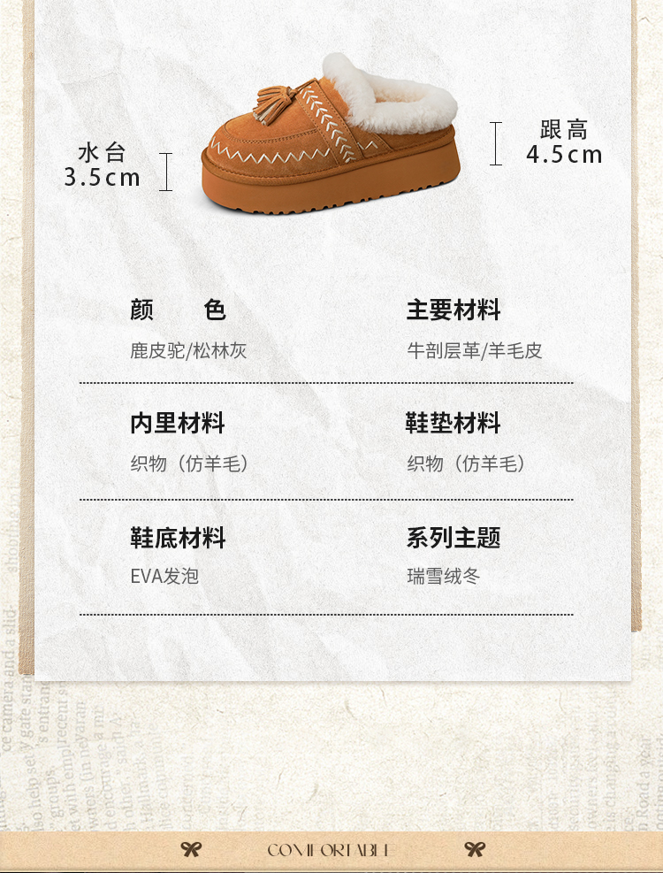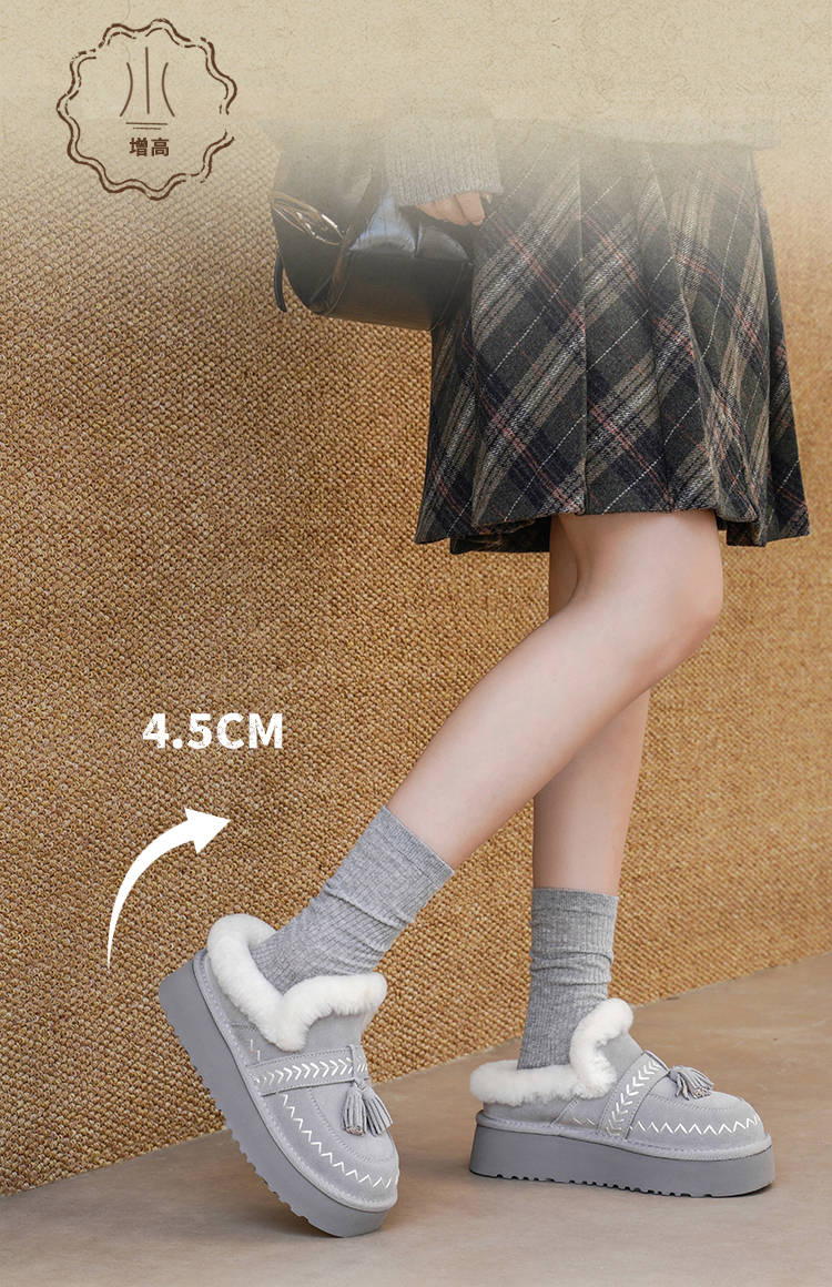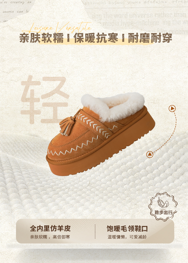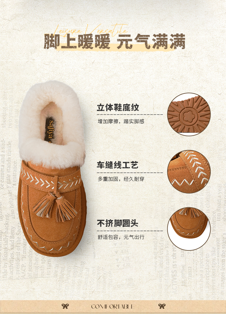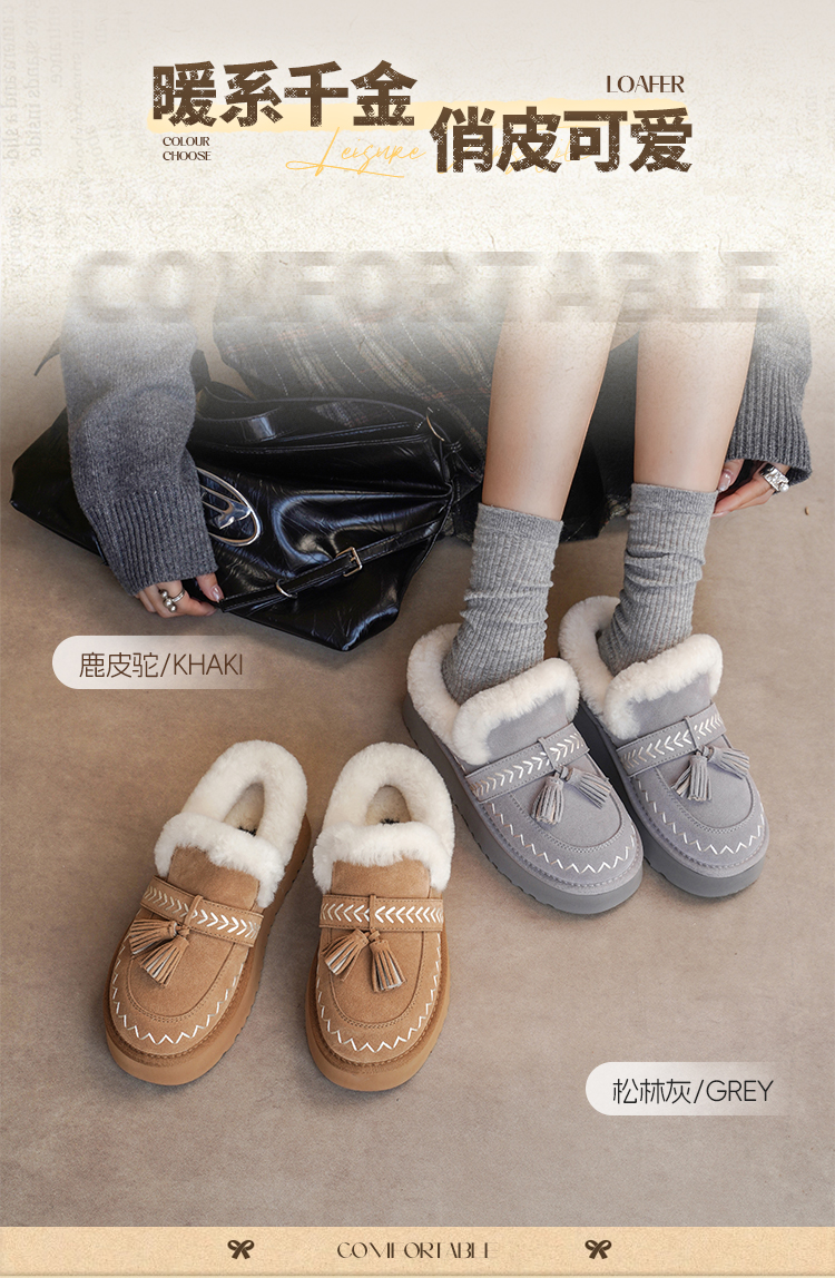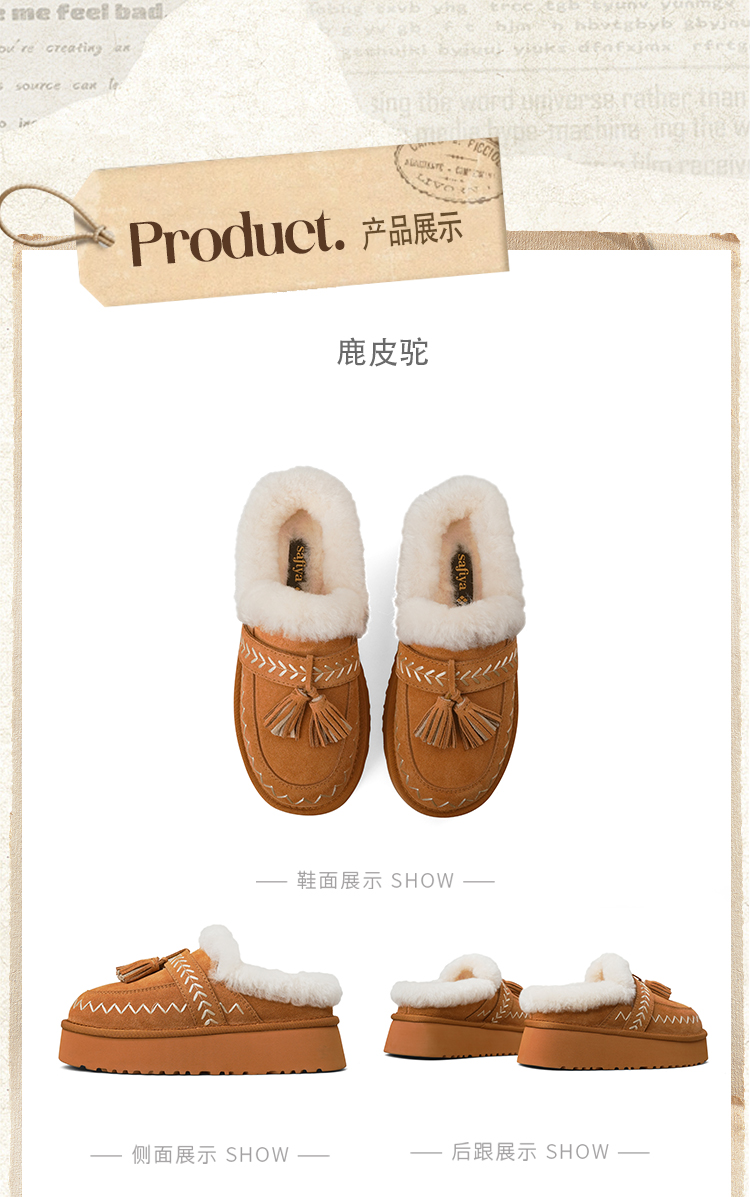 预售|Safiya/索菲娅2025冬季流苏百搭厚底低帮休闲外穿保暖毛毛雪地靴SFD4110045