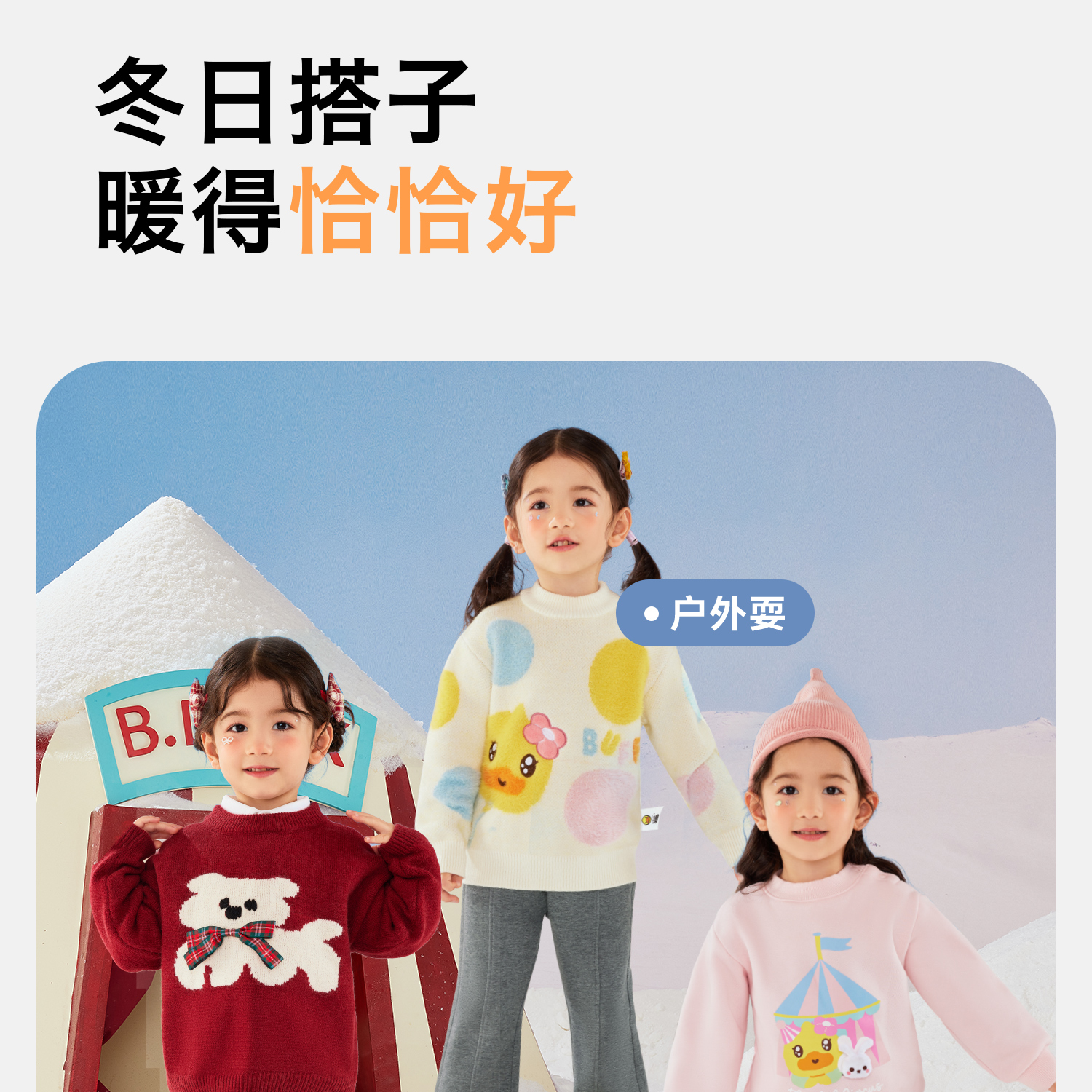 【加绒】B.Duck小黄鸭童装冬季保暖针织长裤90-130码 FF5673070