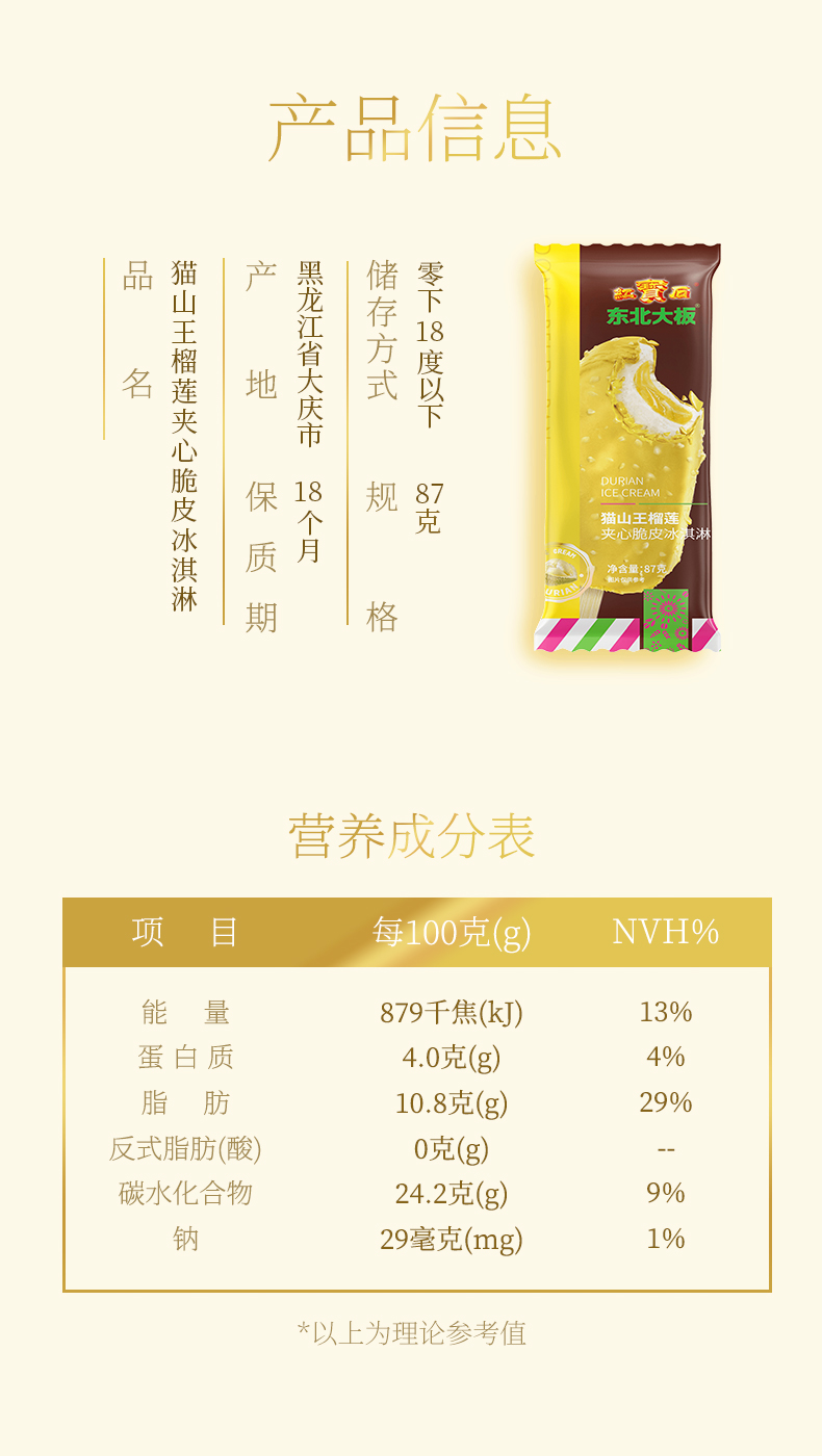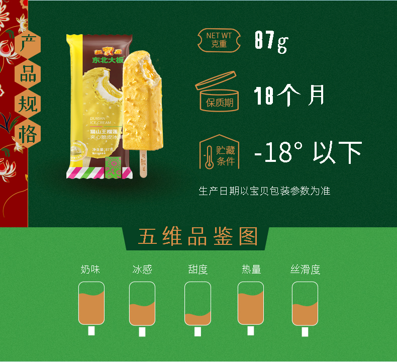 东北大板榴莲脆皮冰淇淋猫山王榴莲雪糕87g*5支量贩装 商品缩略图0 东北大板榴莲脆皮冰淇淋猫山王榴莲雪糕87g*5支量贩装 商品缩略图1 东北大板榴莲脆皮冰淇淋猫山王榴莲雪糕87g*5支量贩装 商品缩略图2 东北大板榴莲脆皮冰淇淋猫山王榴莲雪糕87g*5支量贩装 商品缩略图3 东北大板榴莲脆皮冰淇淋猫山王榴莲雪糕87g*5支量贩装 商品缩略图4