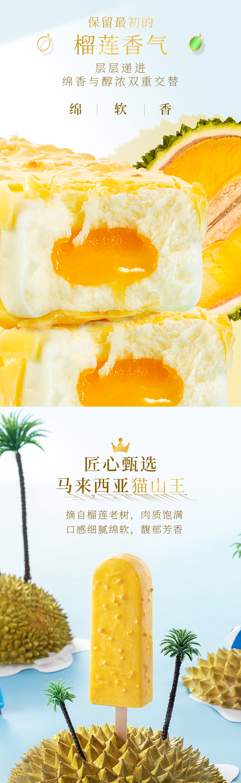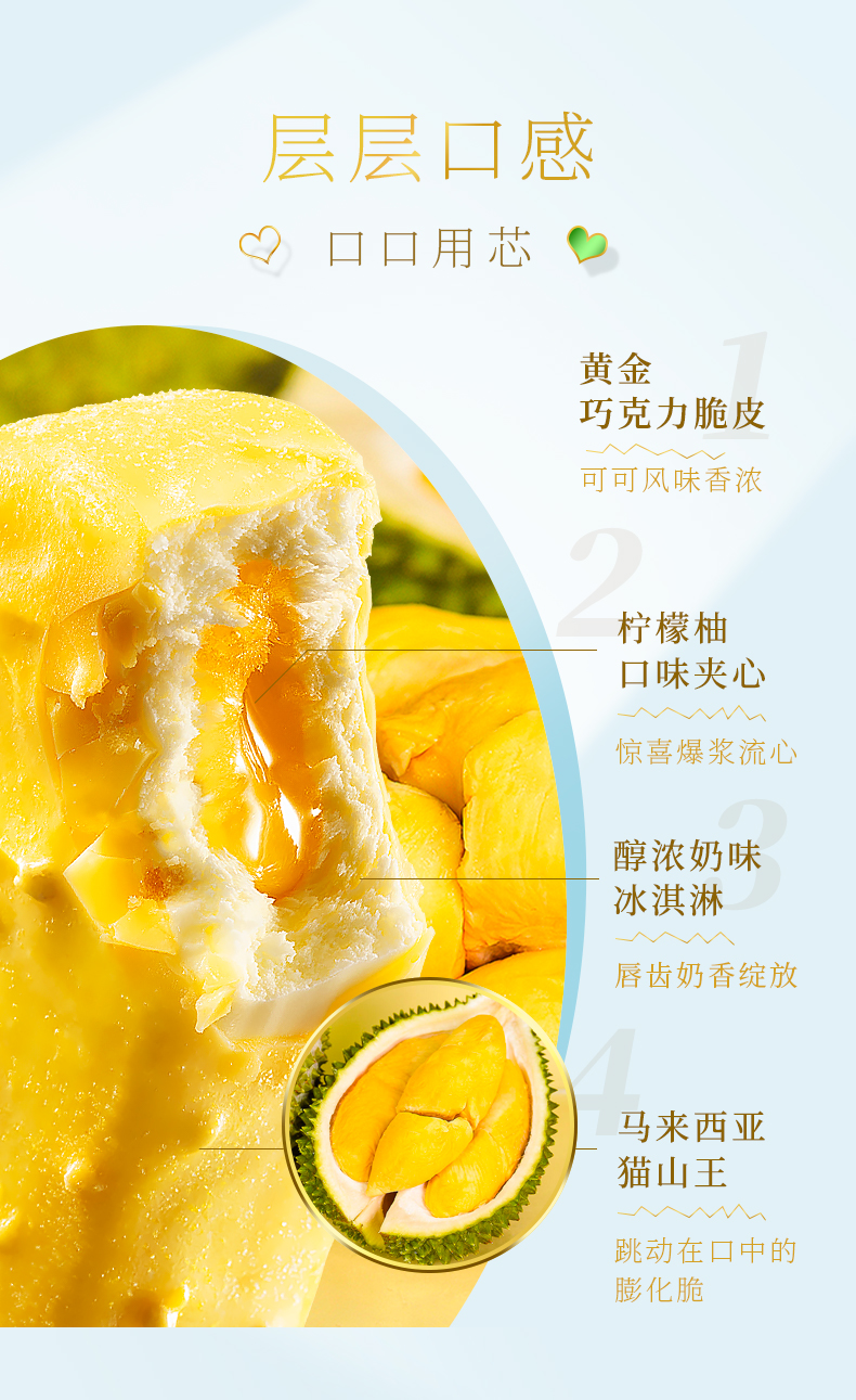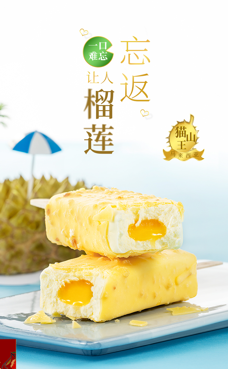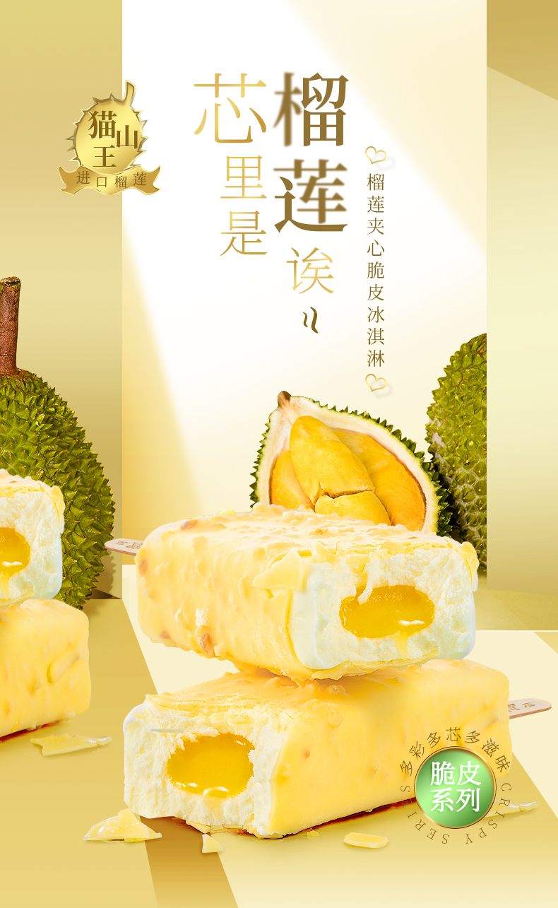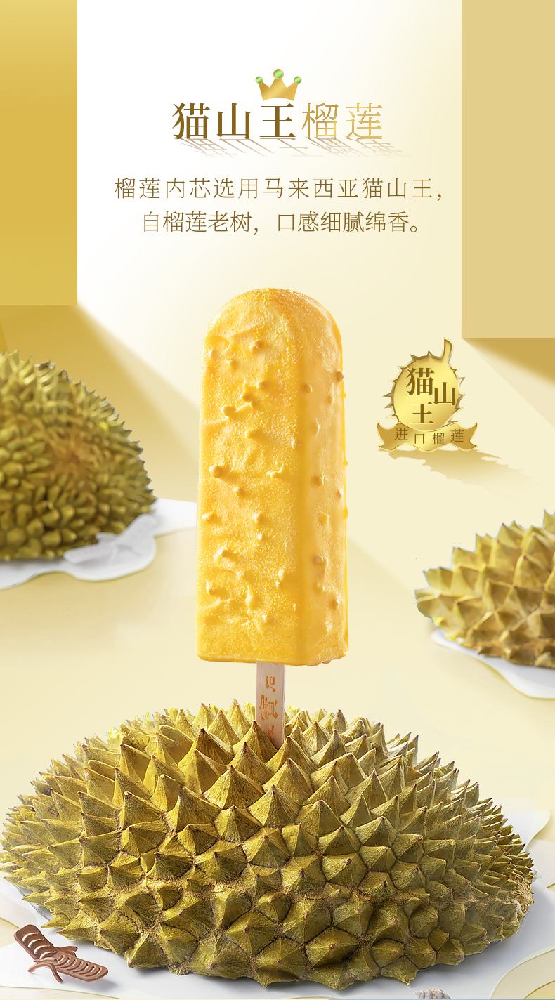 东北大板榴莲脆皮冰淇淋猫山王榴莲雪糕87g*5支量贩装 商品图2