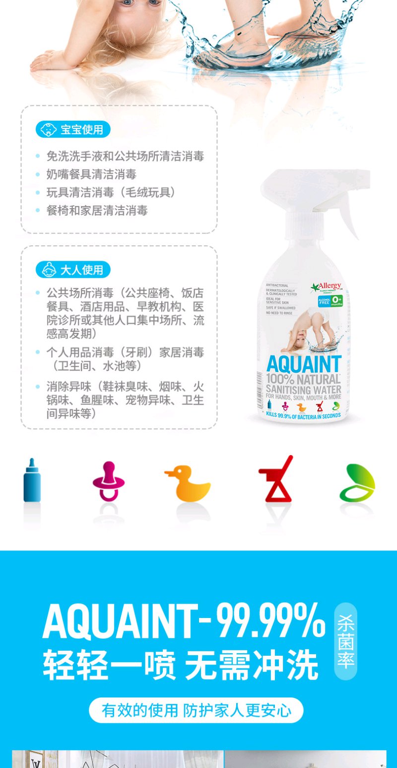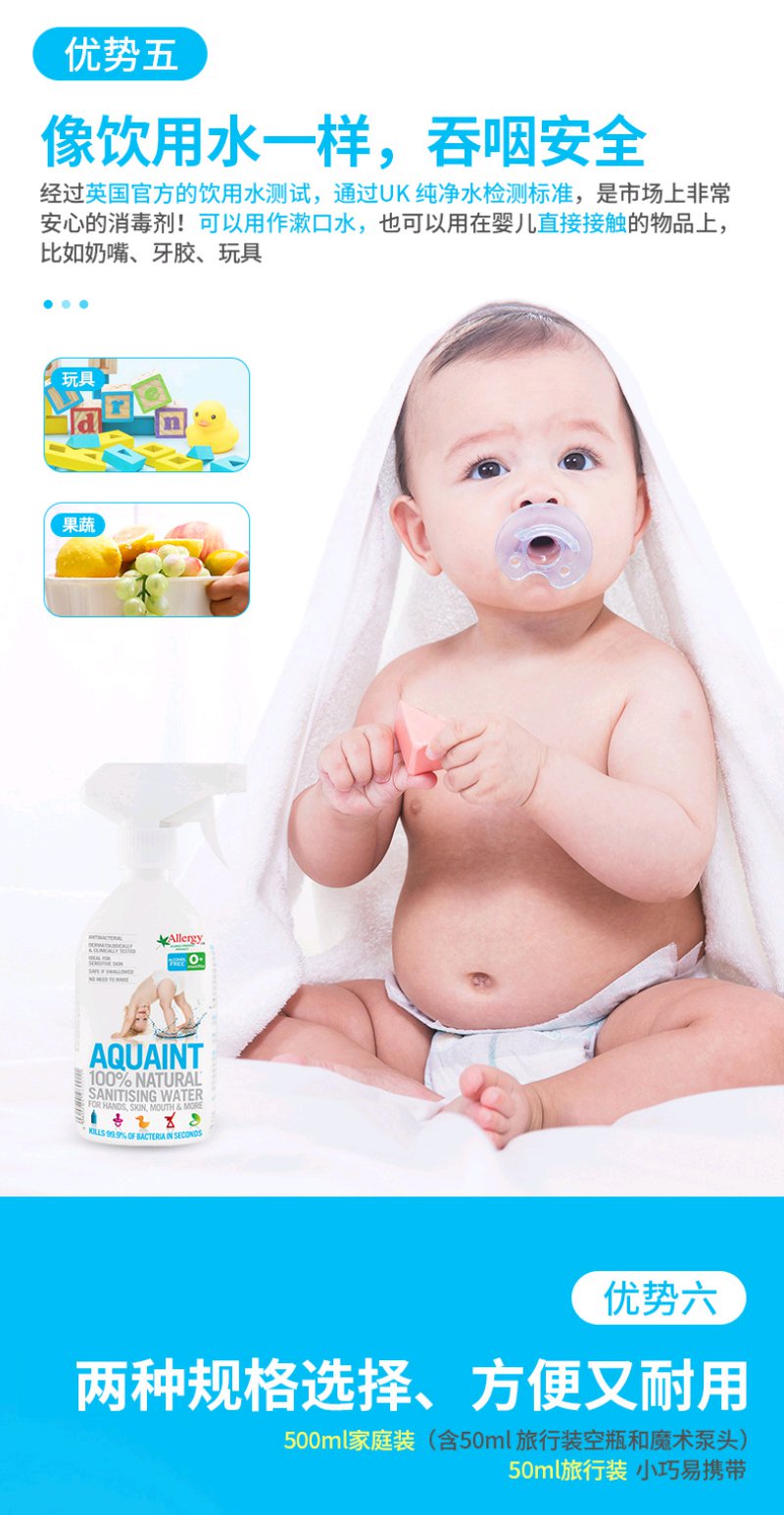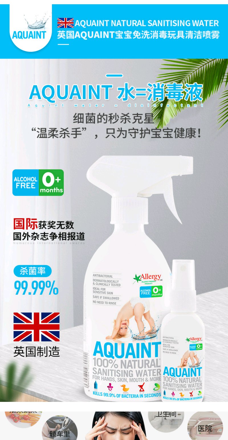 (超值)英国Aquaint 天然水性 消毒水50ML *2瓶