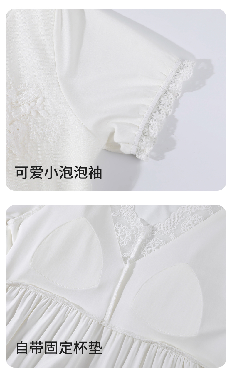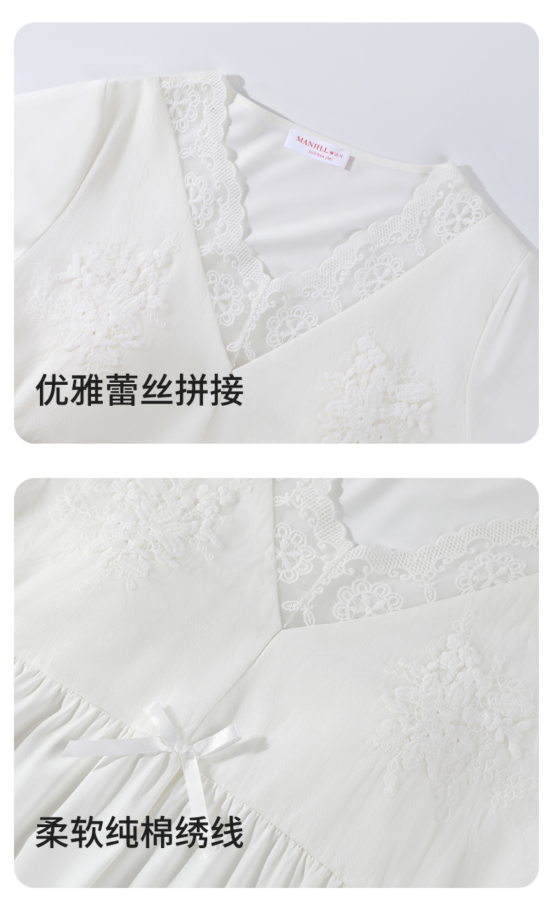 【商场同款】熳洁儿 女士家居服睡裙棉莱卡短袖连衣裙V领甜美公主风24203232