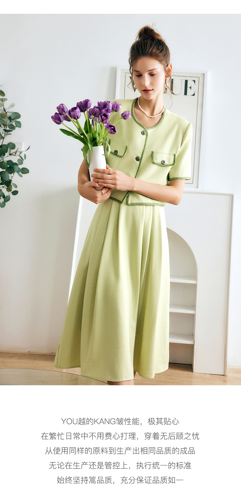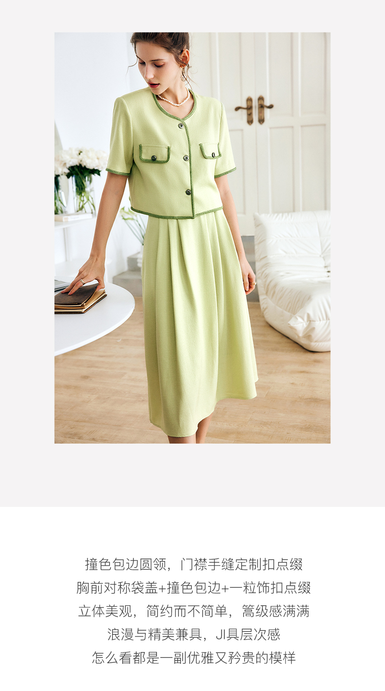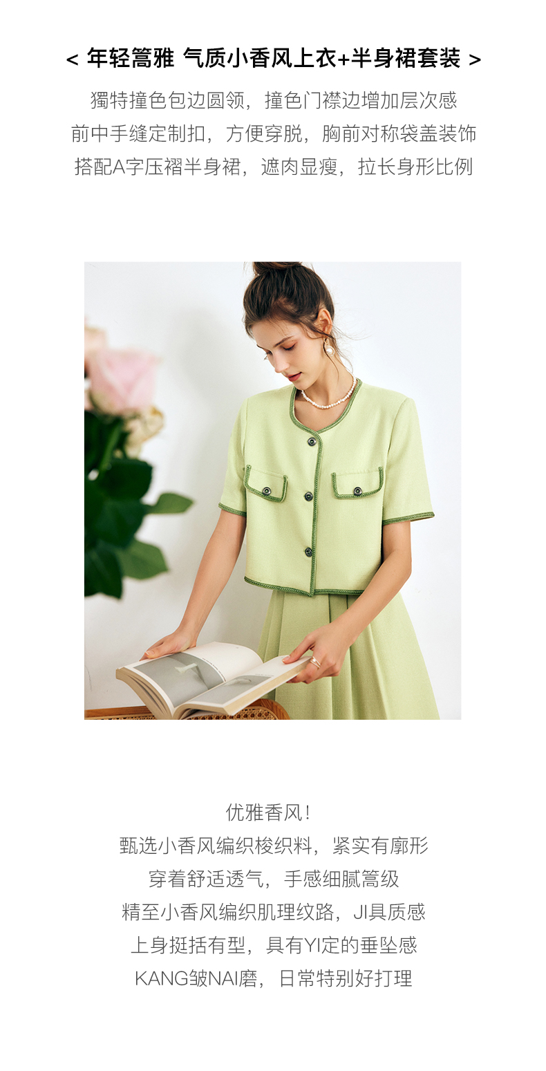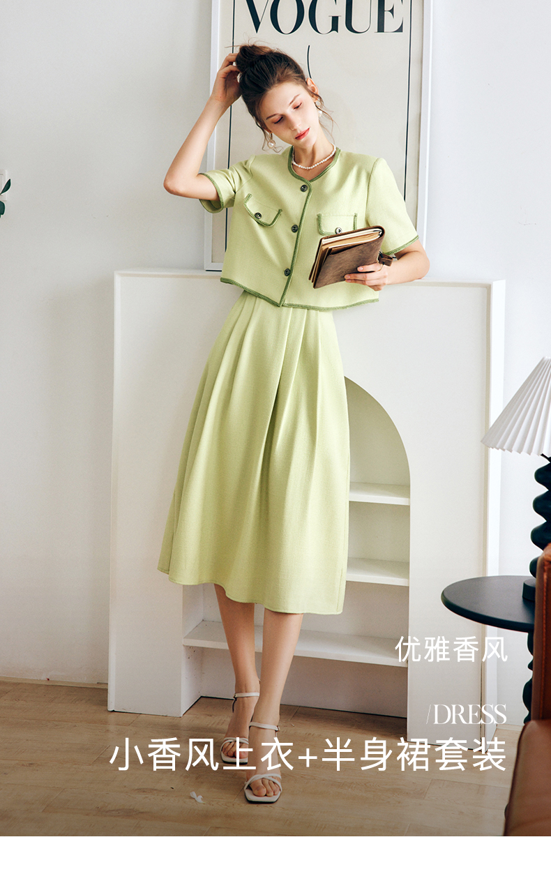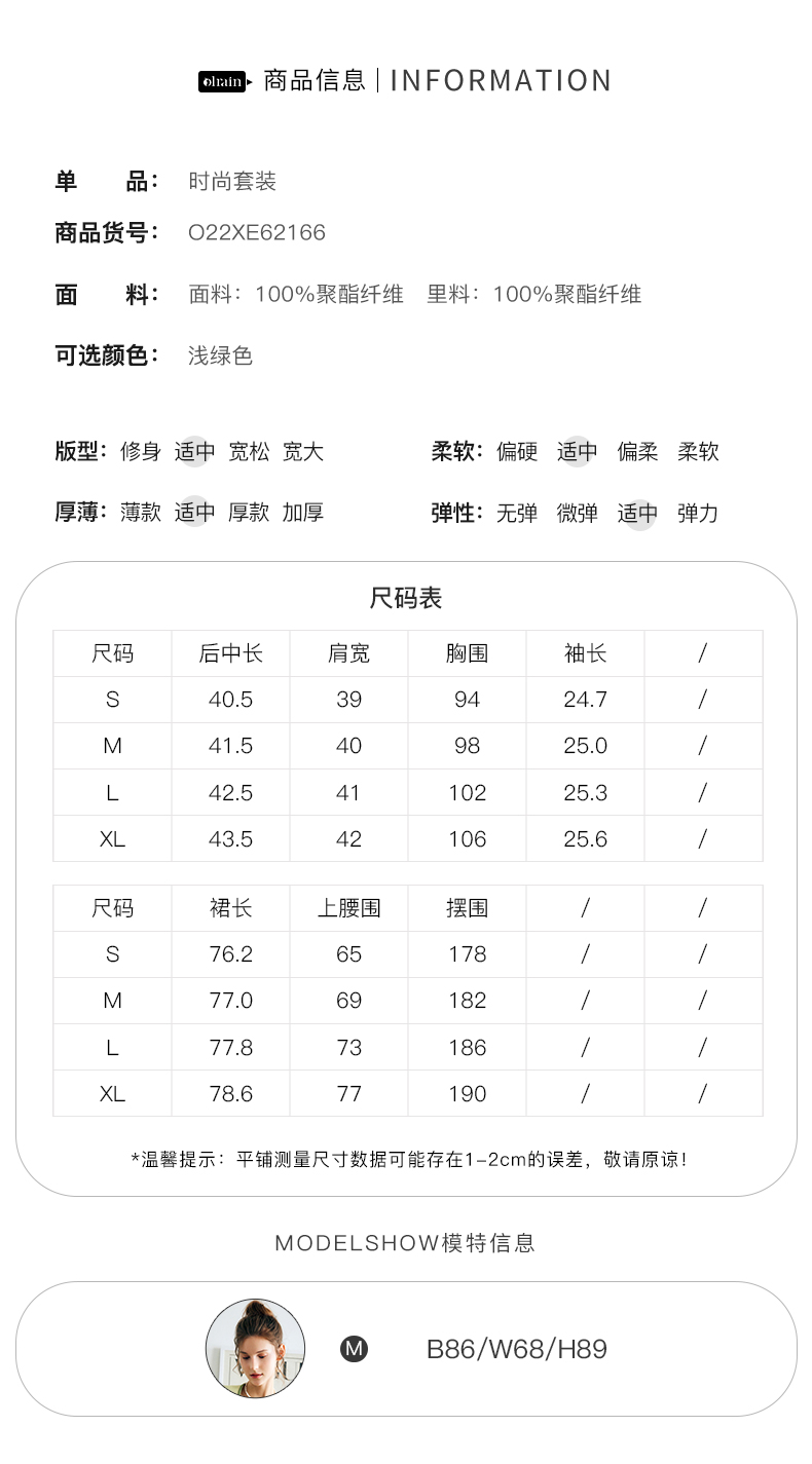 OLrain法式绿色小香风时尚套装女夏季2022年新款时髦减龄两件套