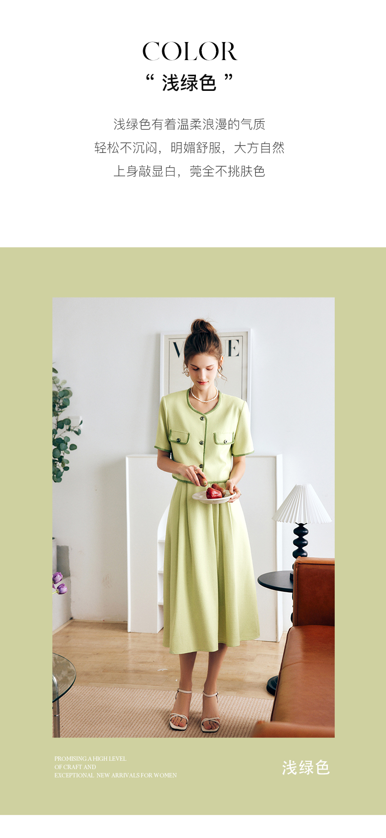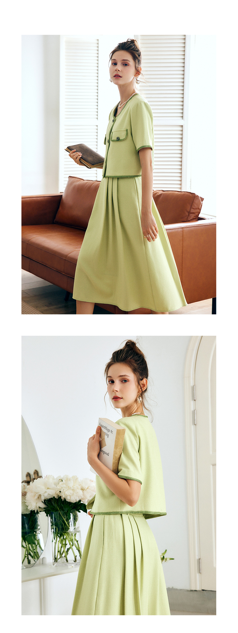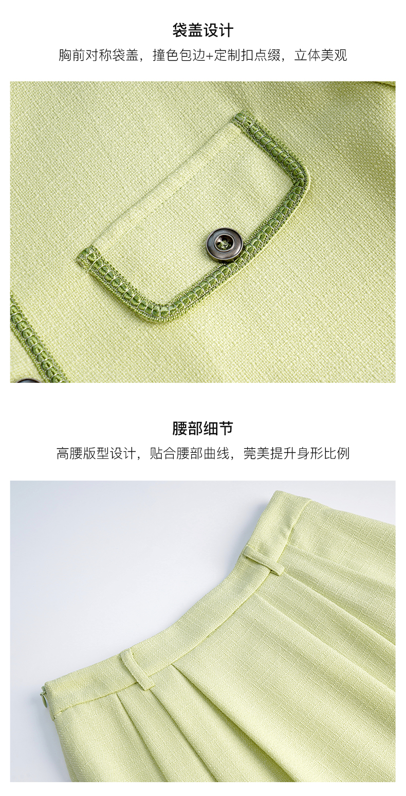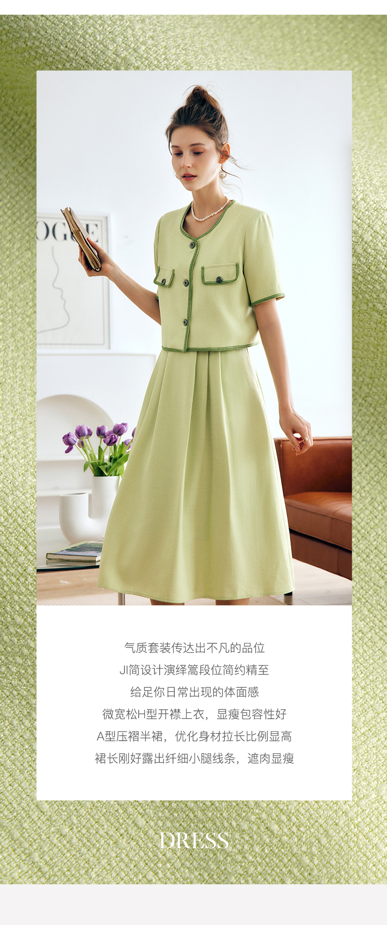 OLrain法式绿色小香风时尚套装女夏季2022年新款时髦减龄两件套