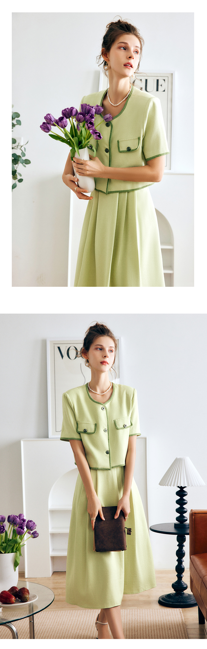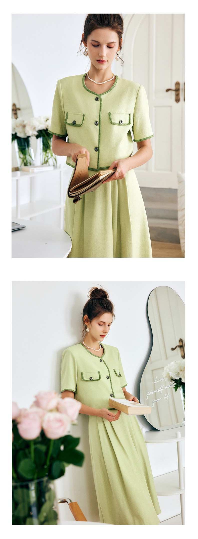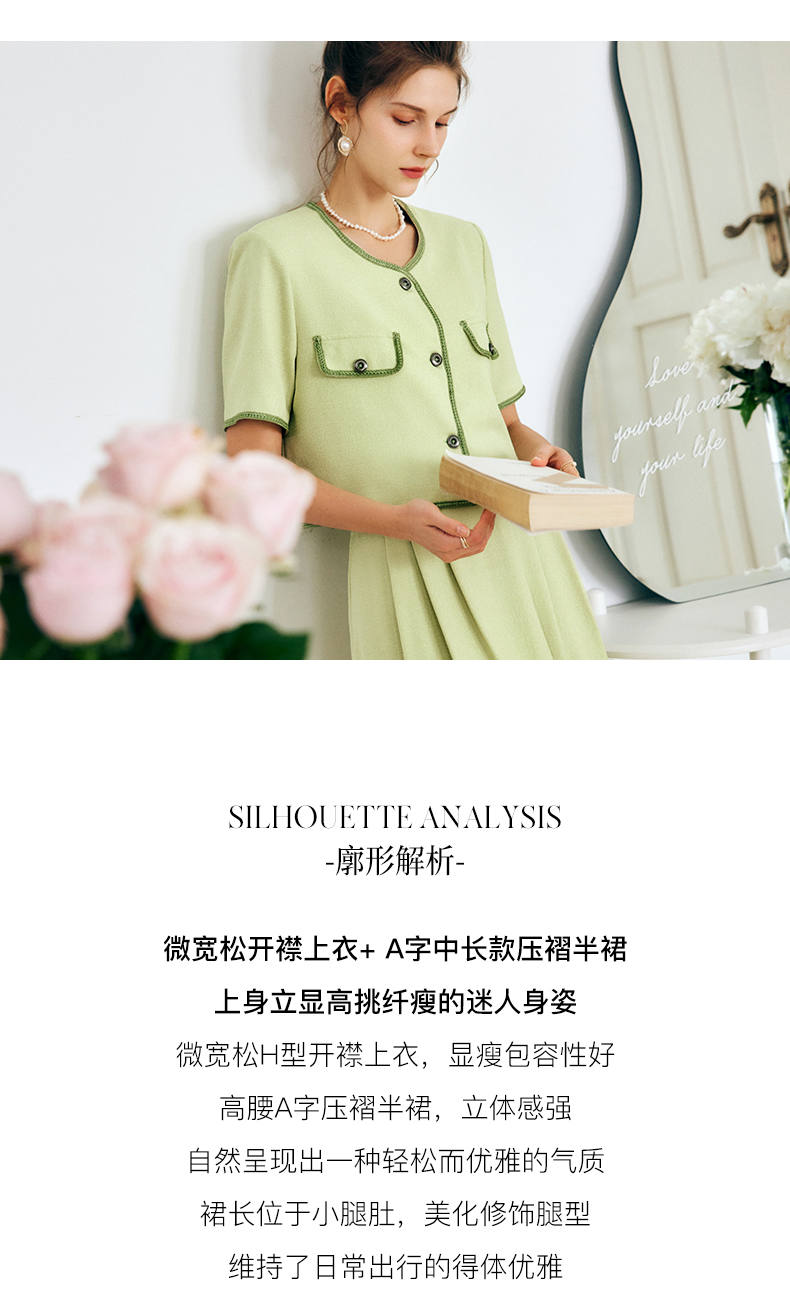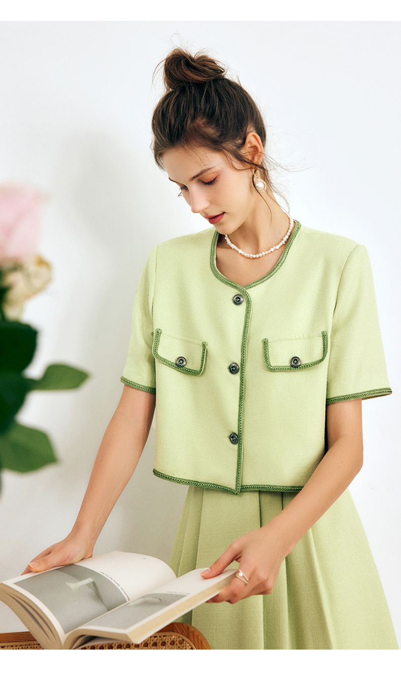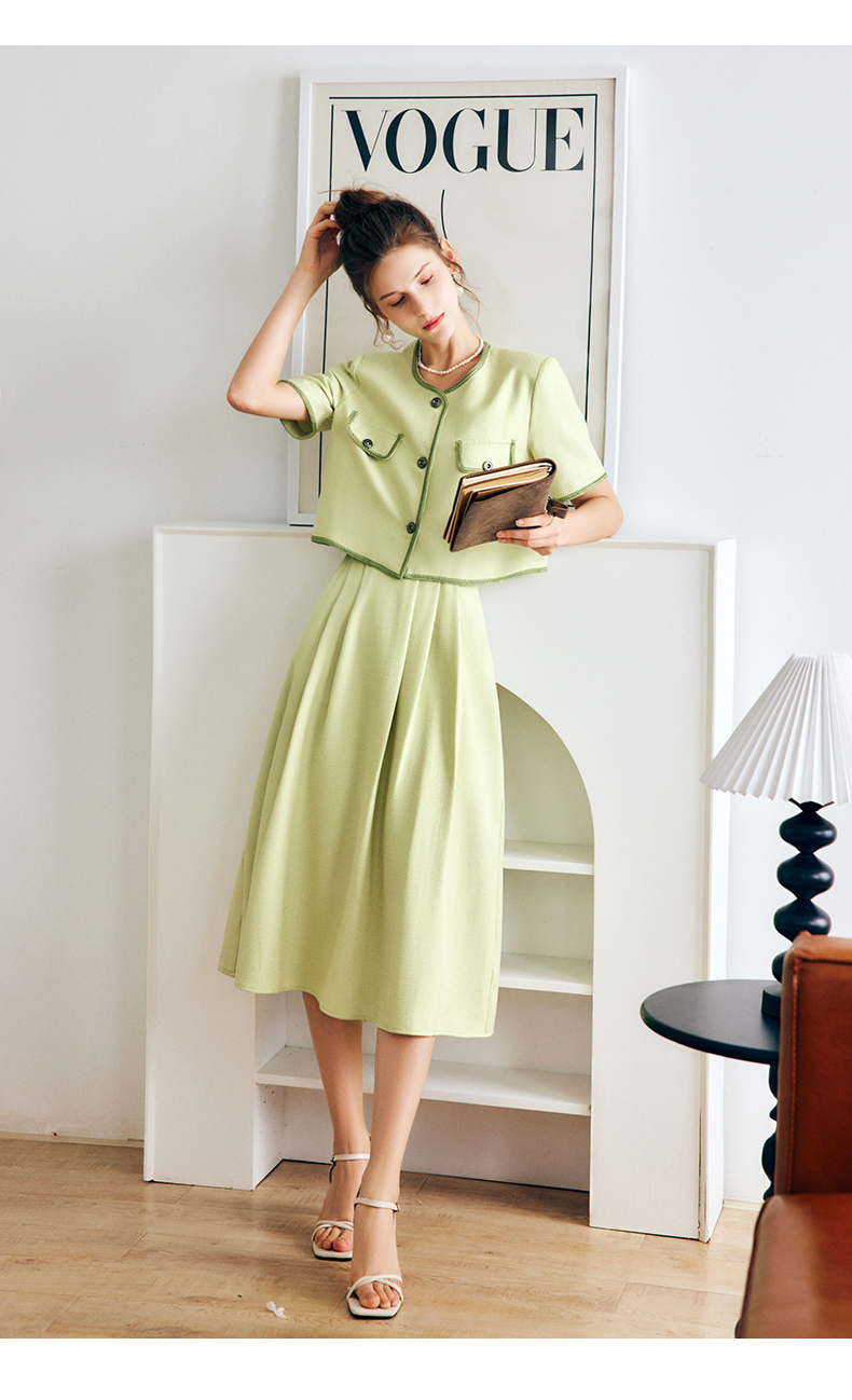 OLrain法式绿色小香风时尚套装女夏季2022年新款时髦减龄两件套