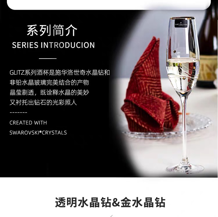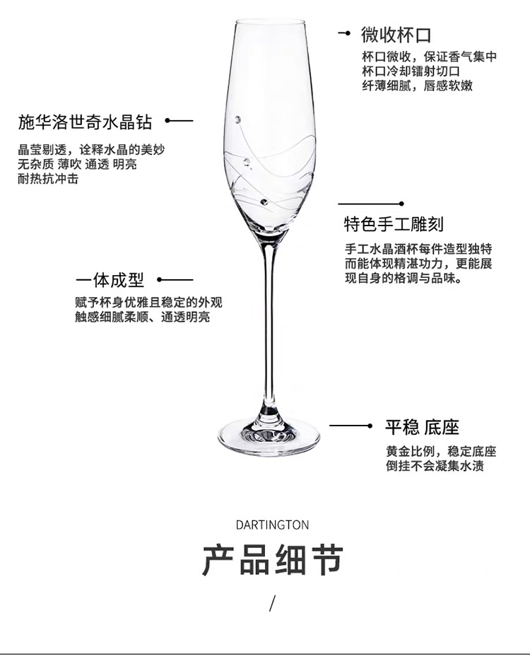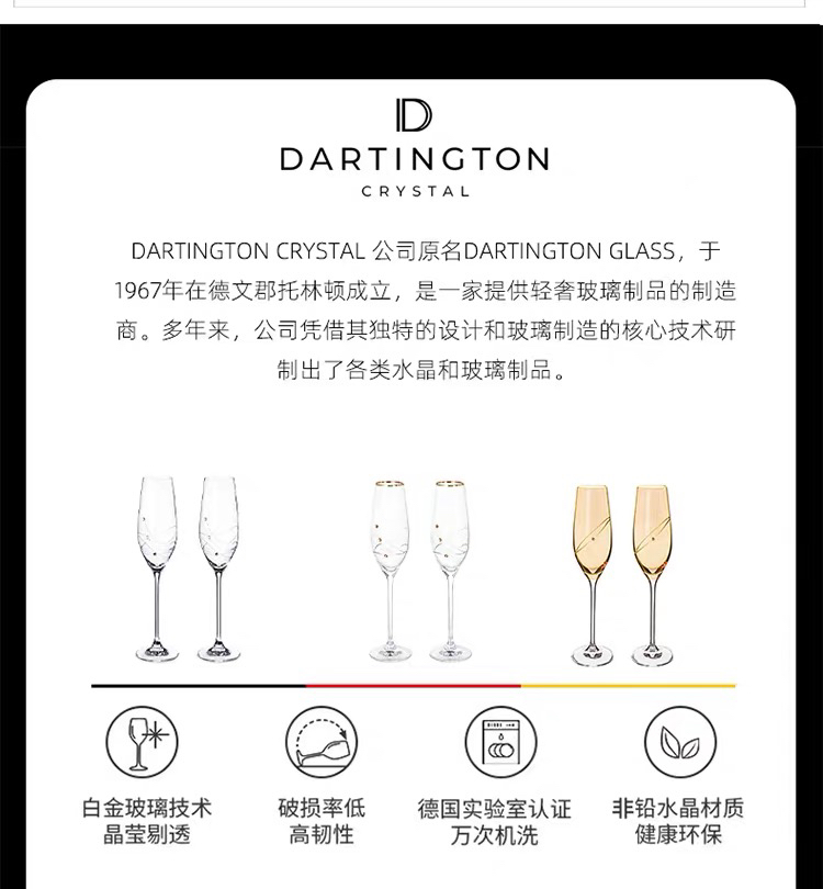 DARTINGTON英国进口水晶玻璃高脚起气泡香槟酒杯