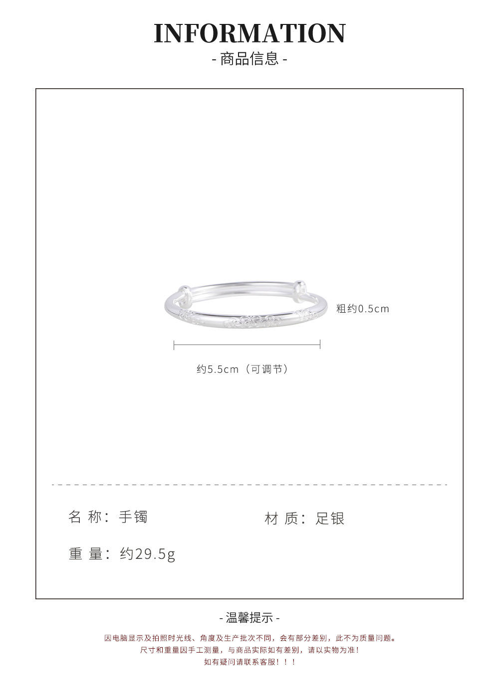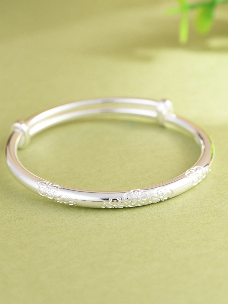 【梅花之悦】足银999素银圆棍实心推拉车花梅花手镯【SCH-SZ0025-1-228】
