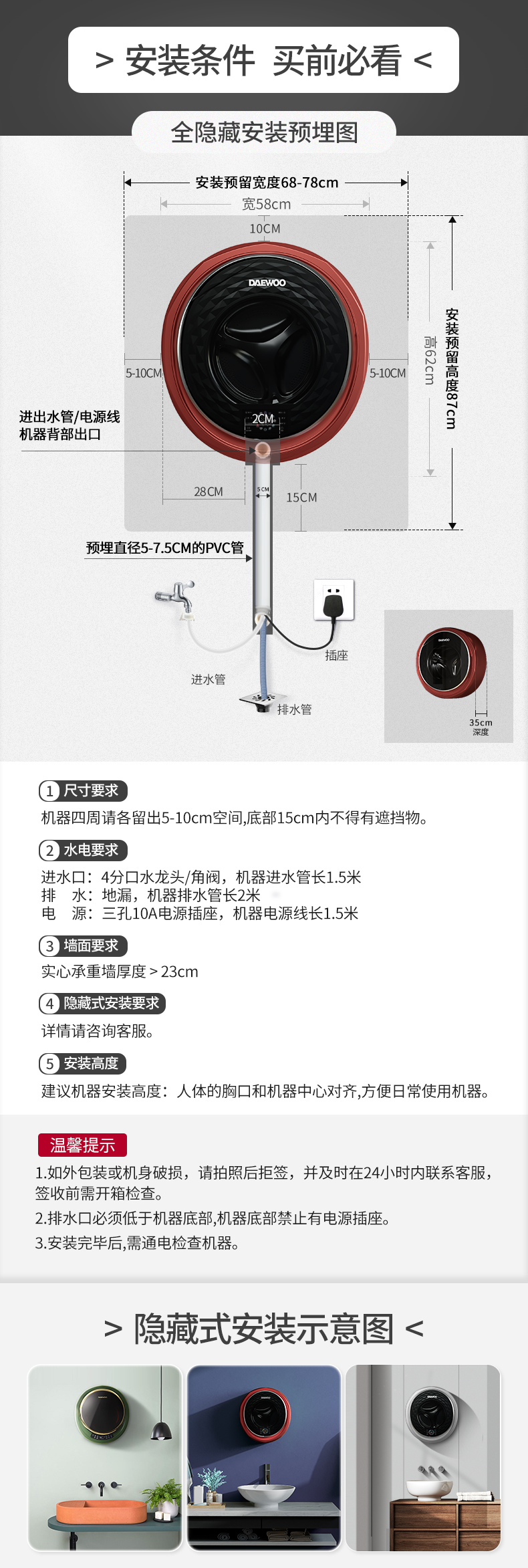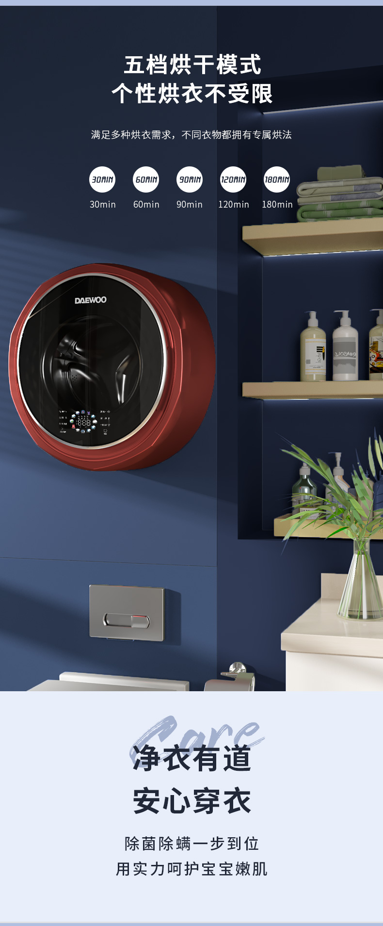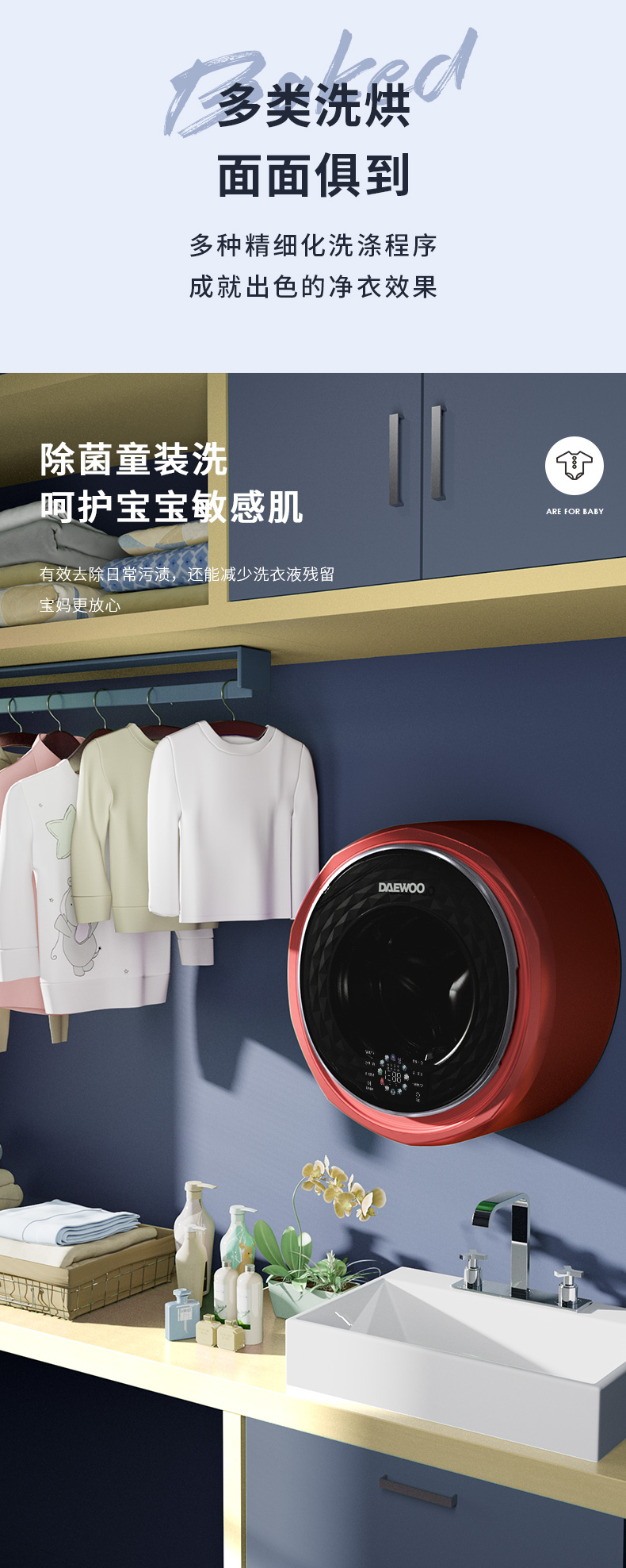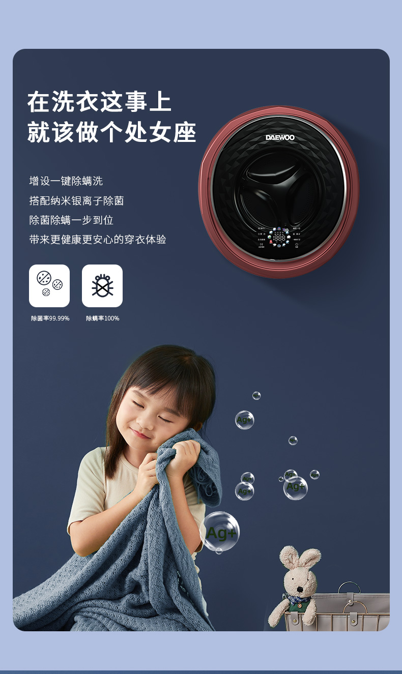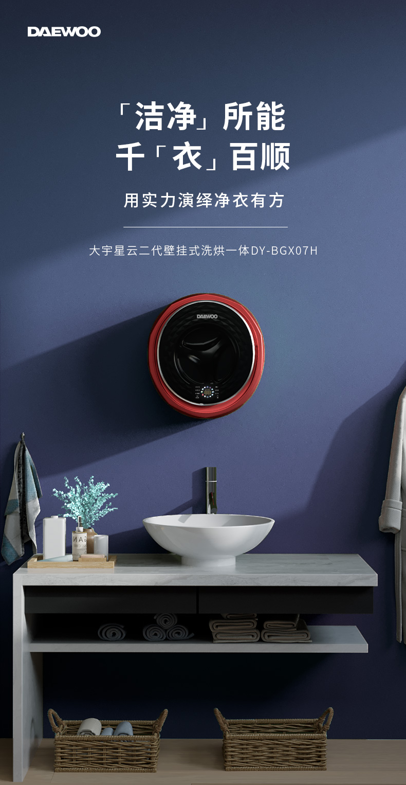 韩国大宇婴儿宝宝壁挂式洗衣机洗烘一体除螨除菌迷你小型洗衣机