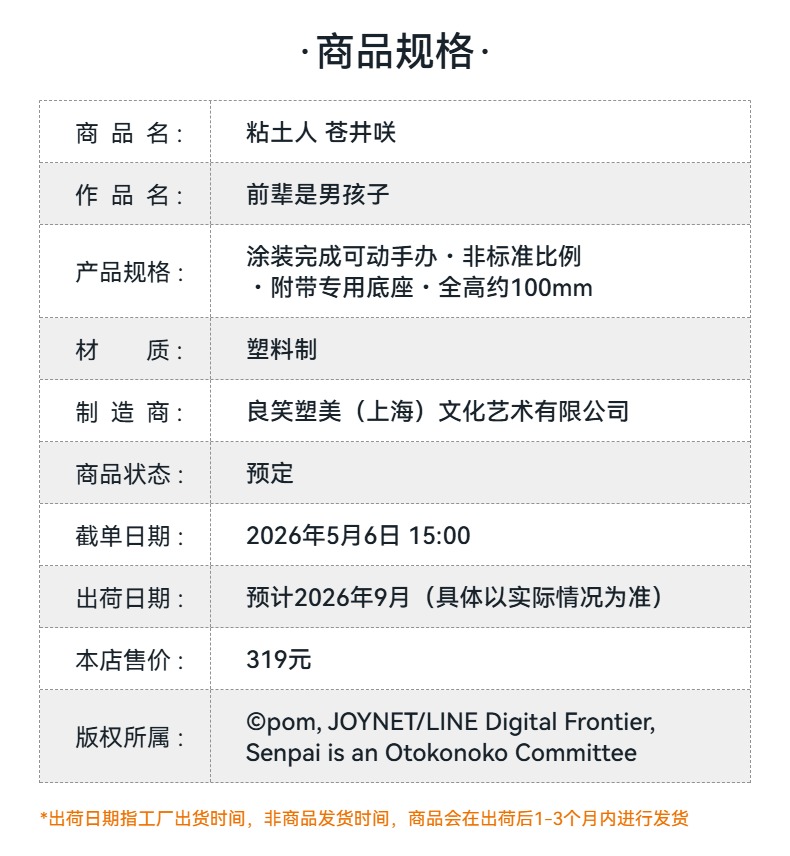 【GSC预售定金】粘土人 苍井咲 前辈是男孩子 手办模玩