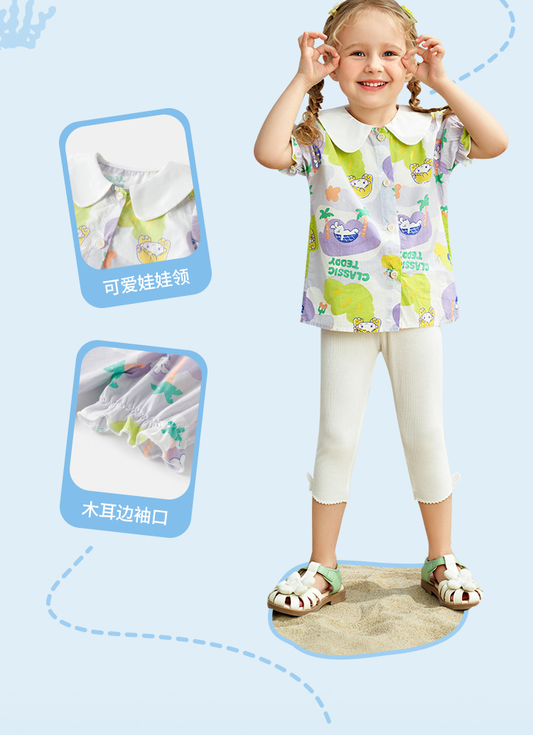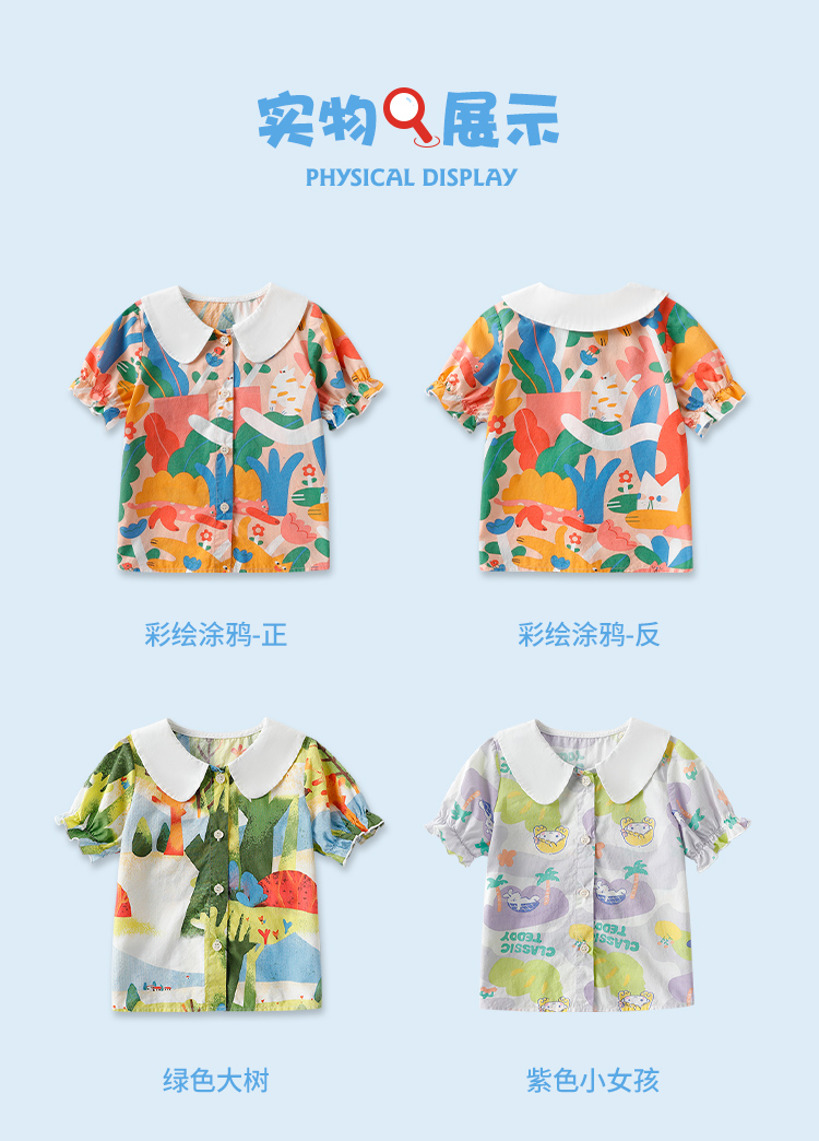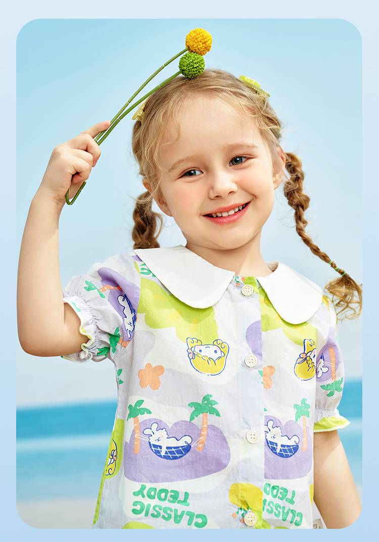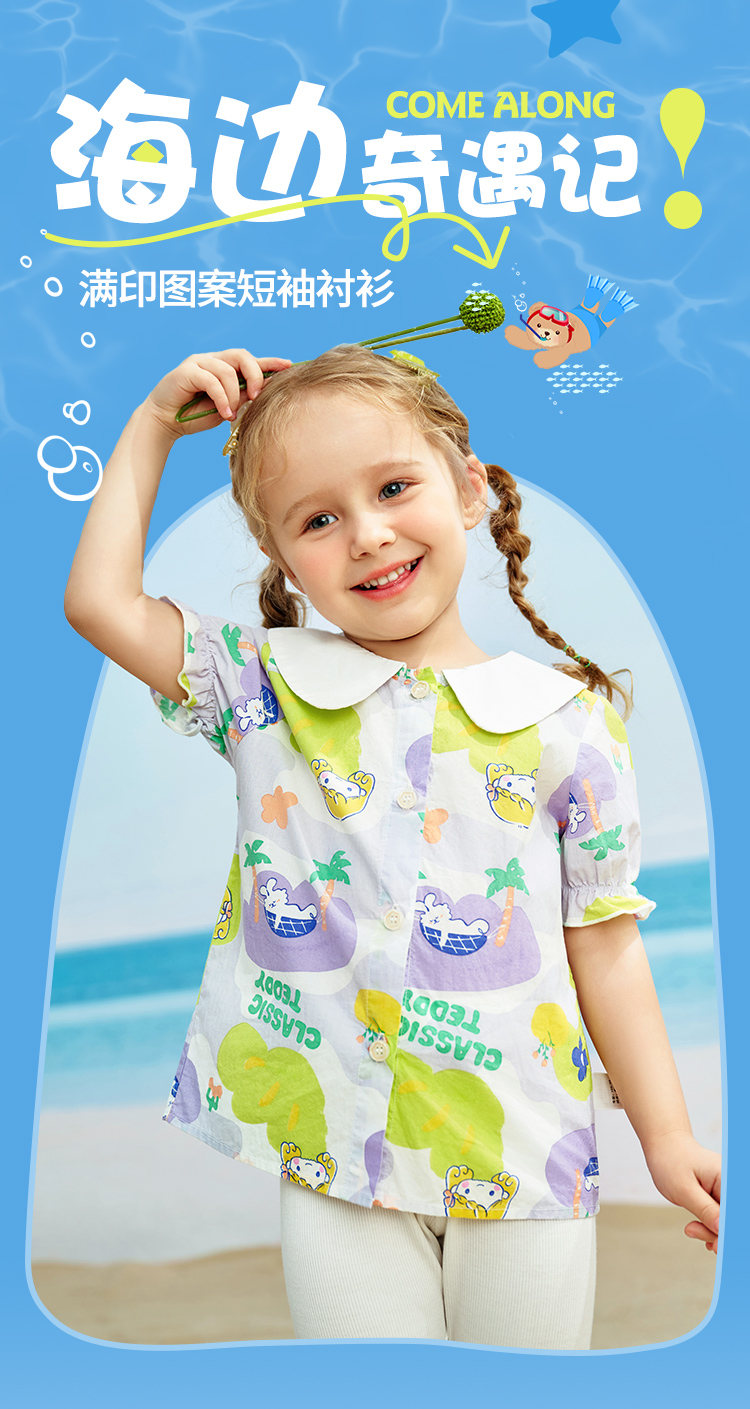 【清仓捡漏】【90-140】【精典泰迪】夏季女童印花短袖衬衫