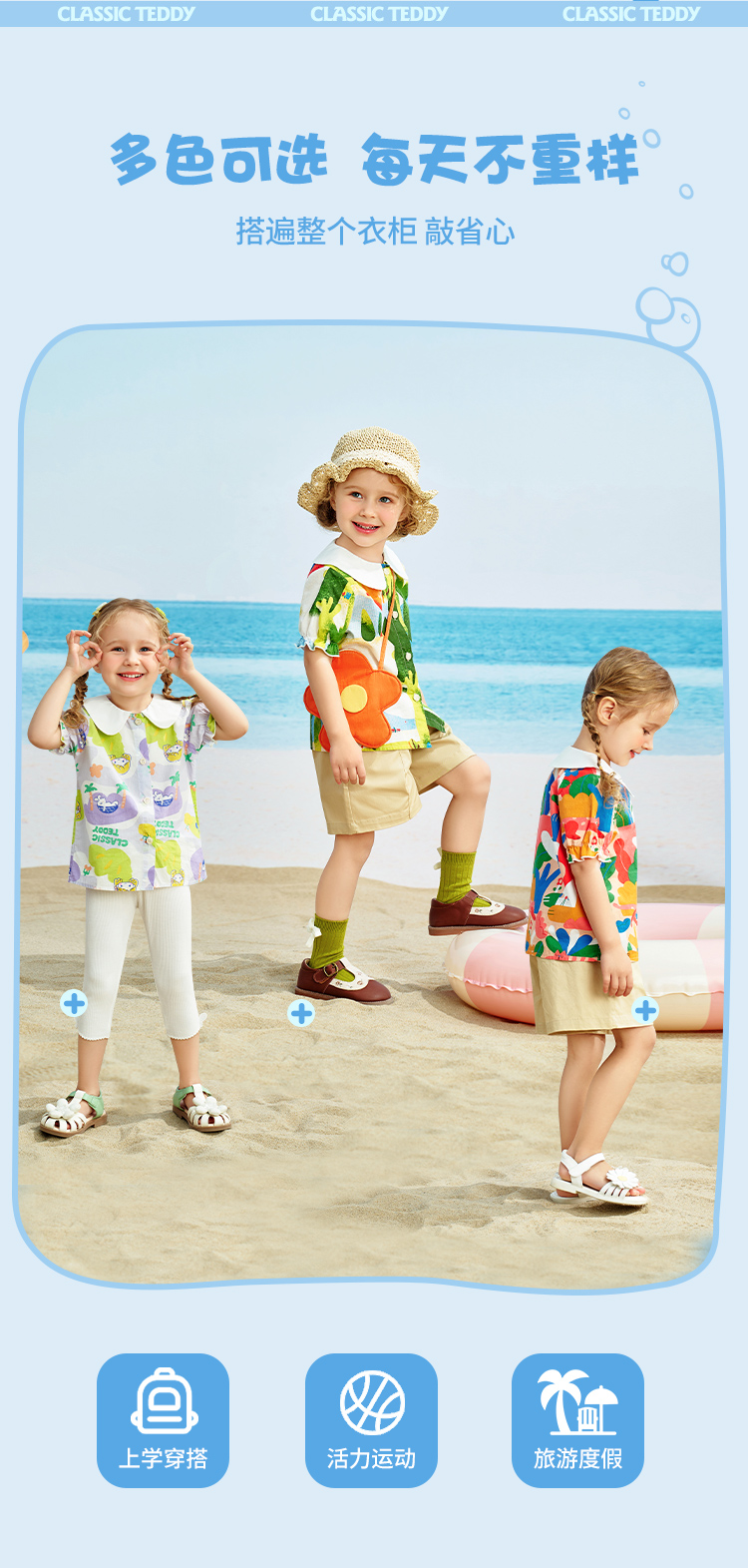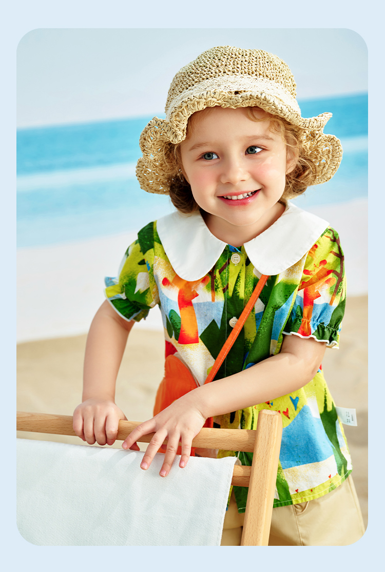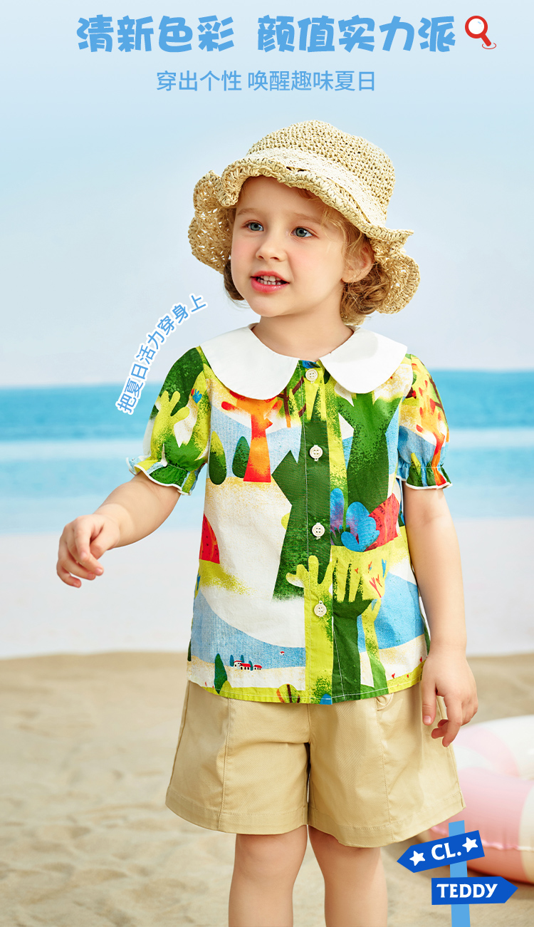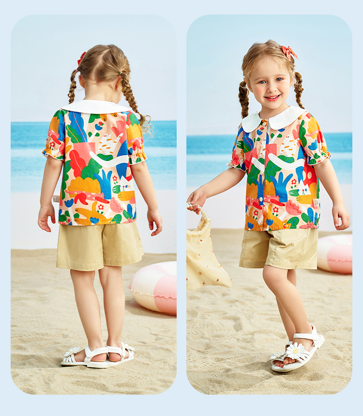 【清仓捡漏】【90-140】【精典泰迪】夏季女童印花短袖衬衫