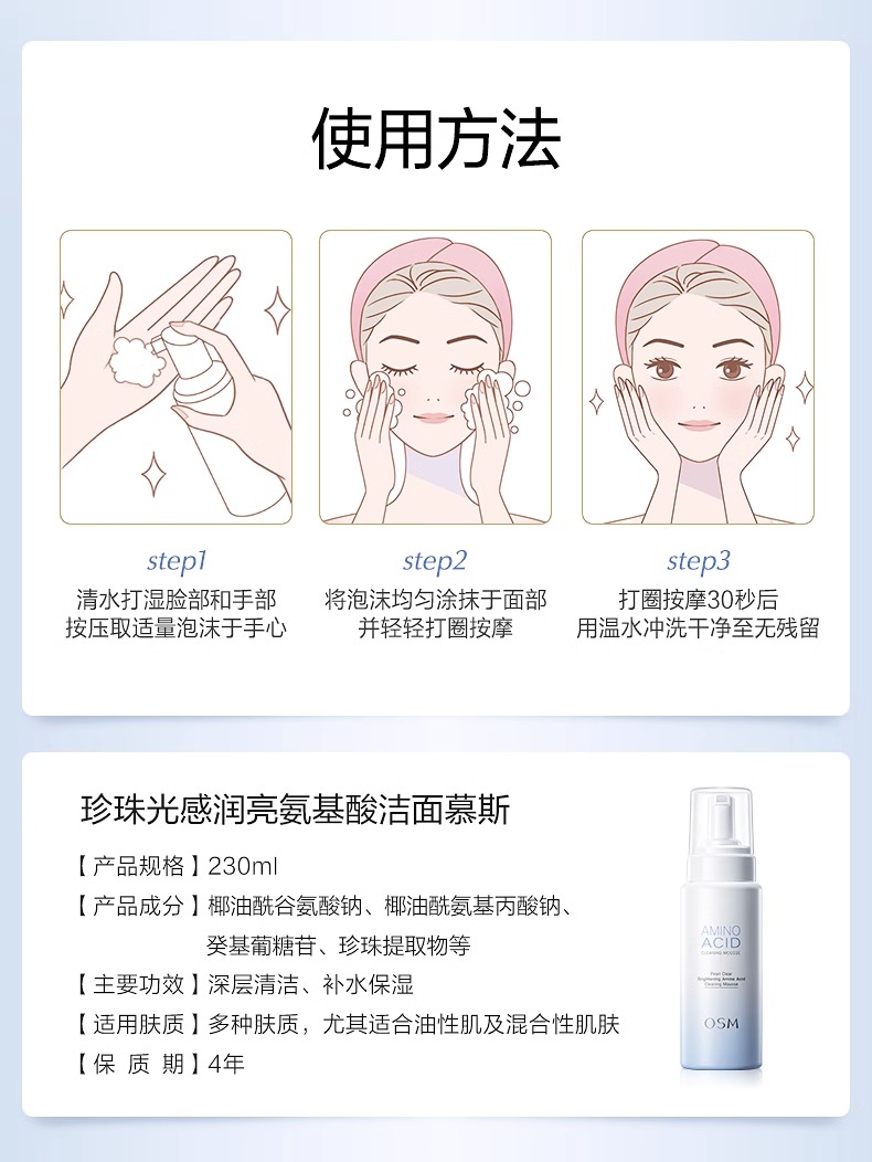 【买一赠一】珍珠奶盖氨基酸洁面慕斯230ml深层清洁补水保湿