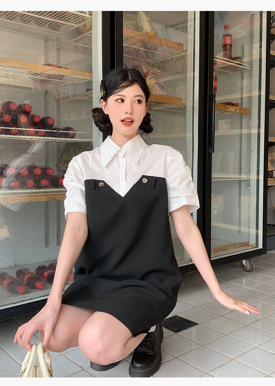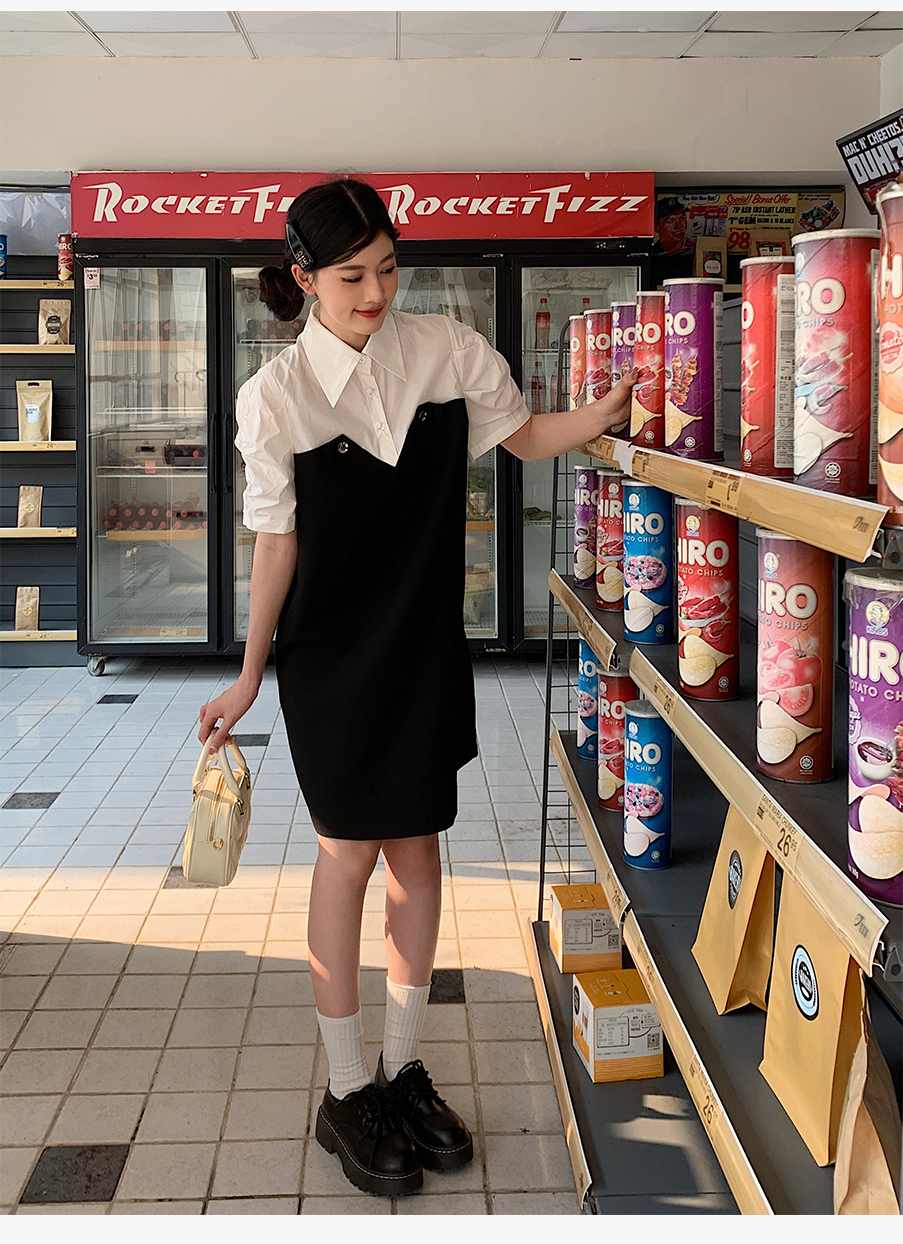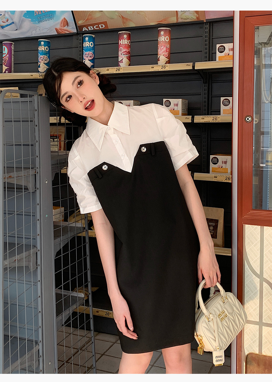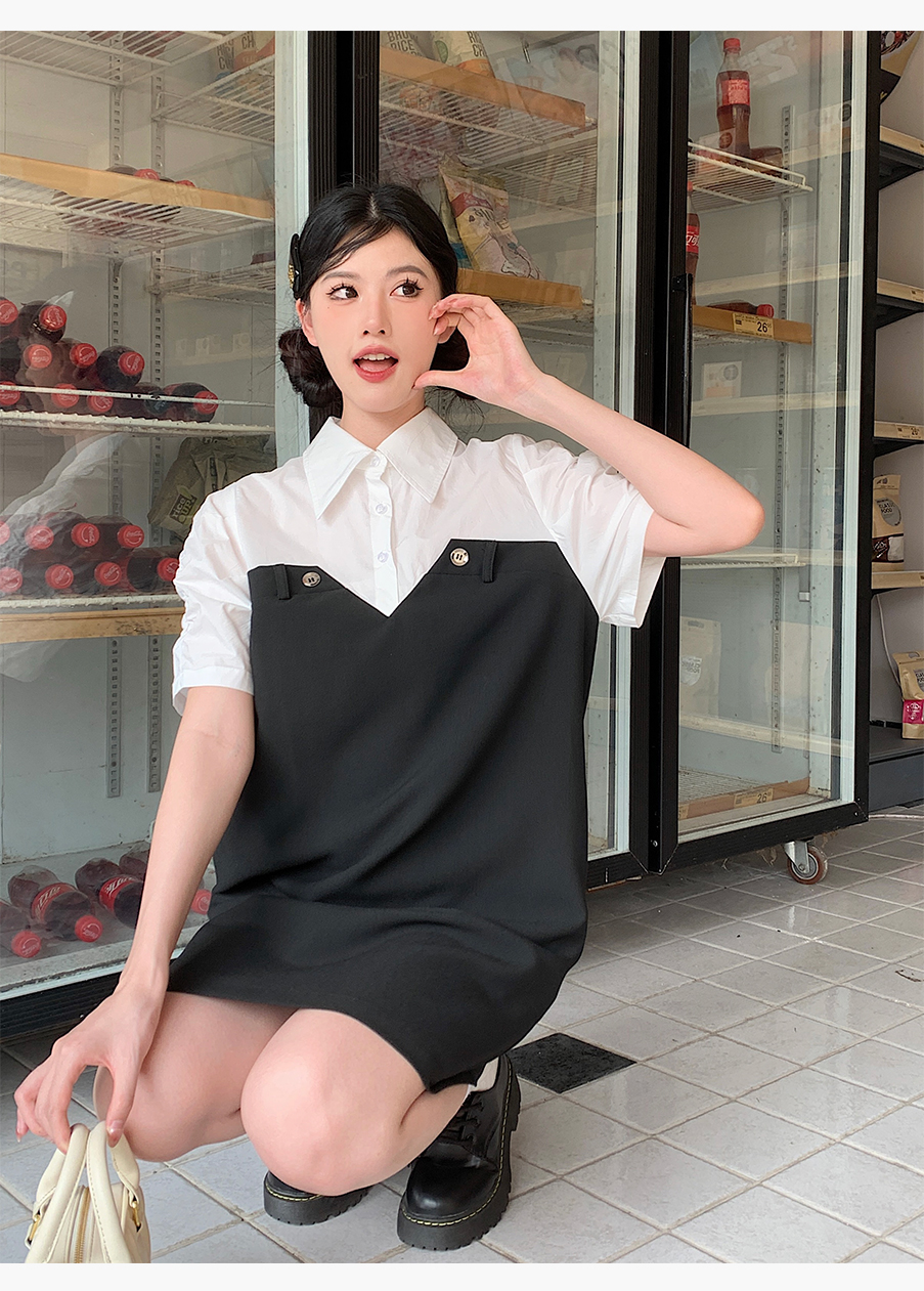P&X设计师女装夏季宽松娃娃领拼接连衣短裙 824208265 黑/白
