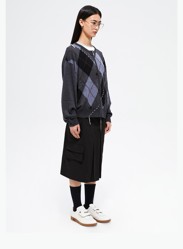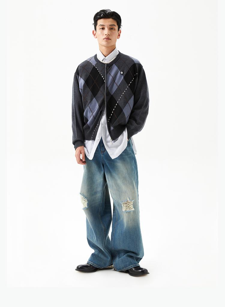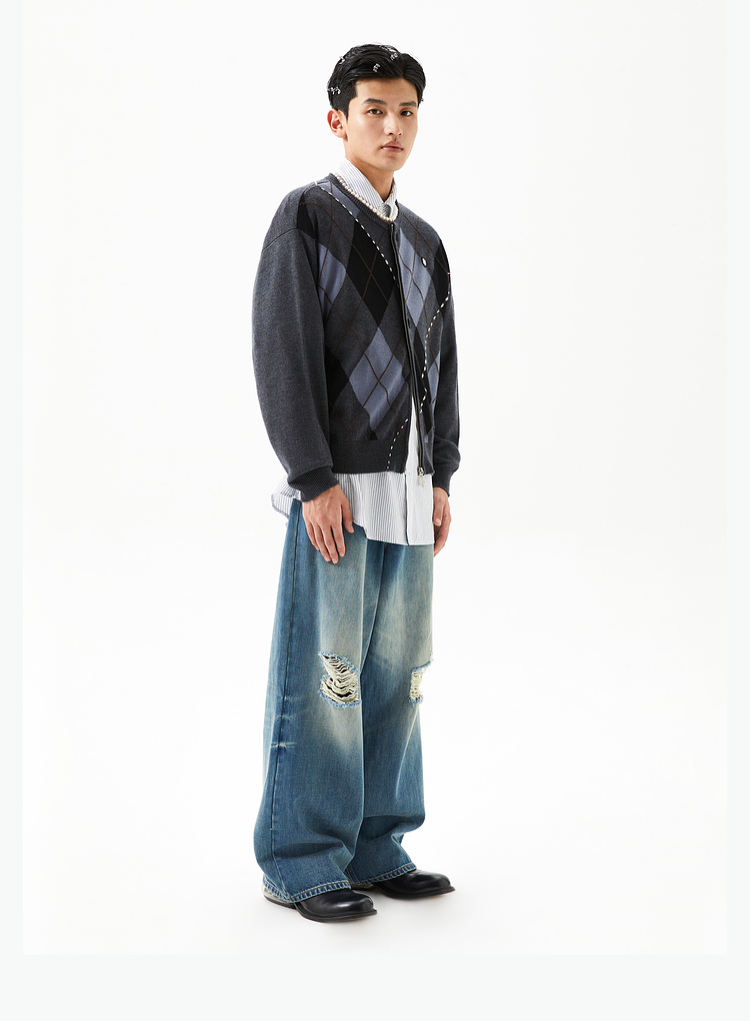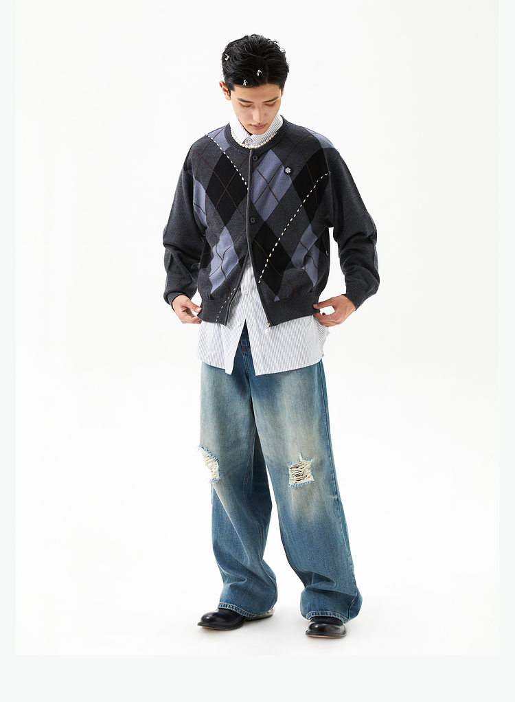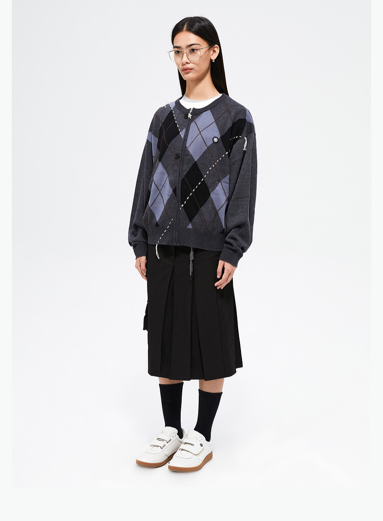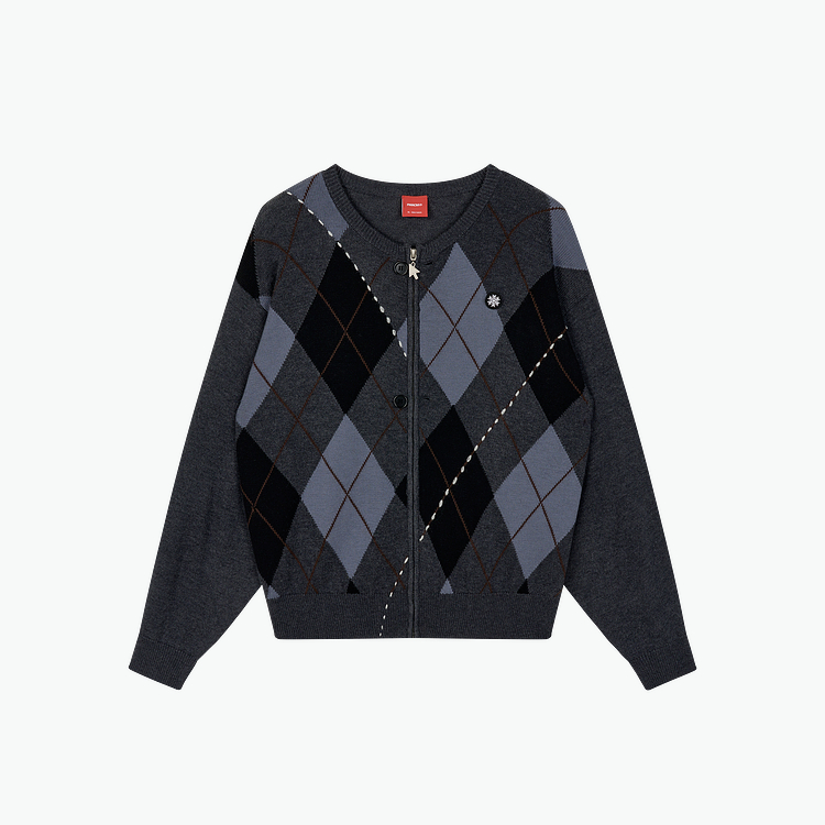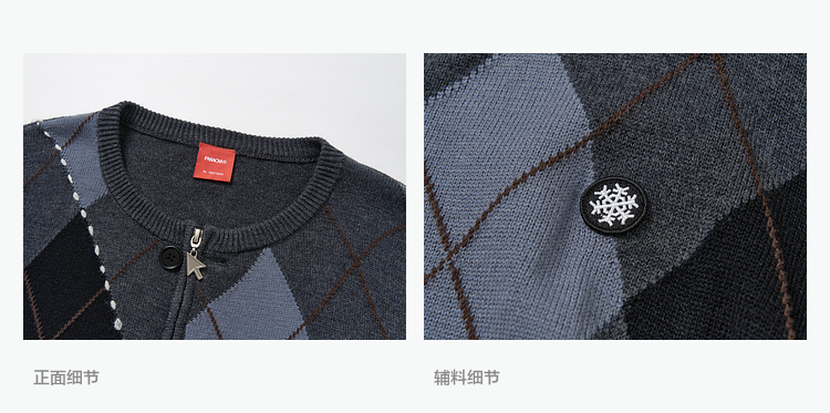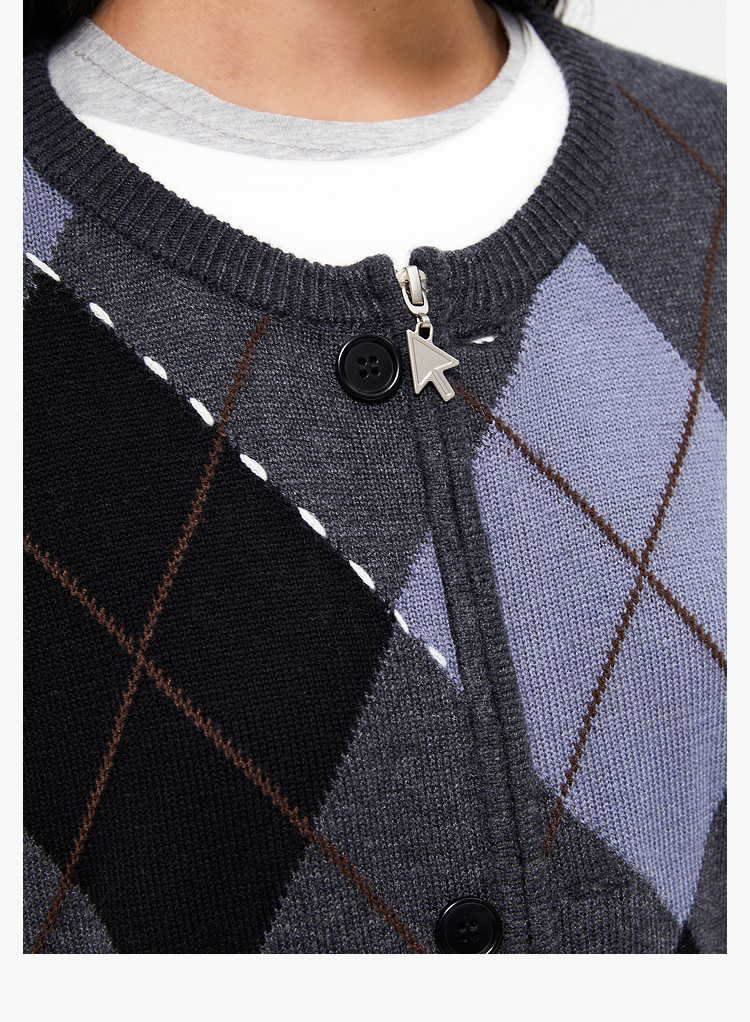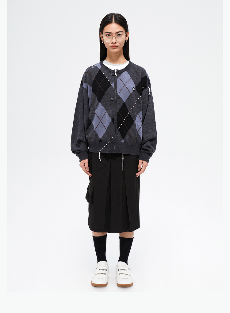 FMACM/ZZS2411/复古民族菱形格手工虚线街头针织开衫