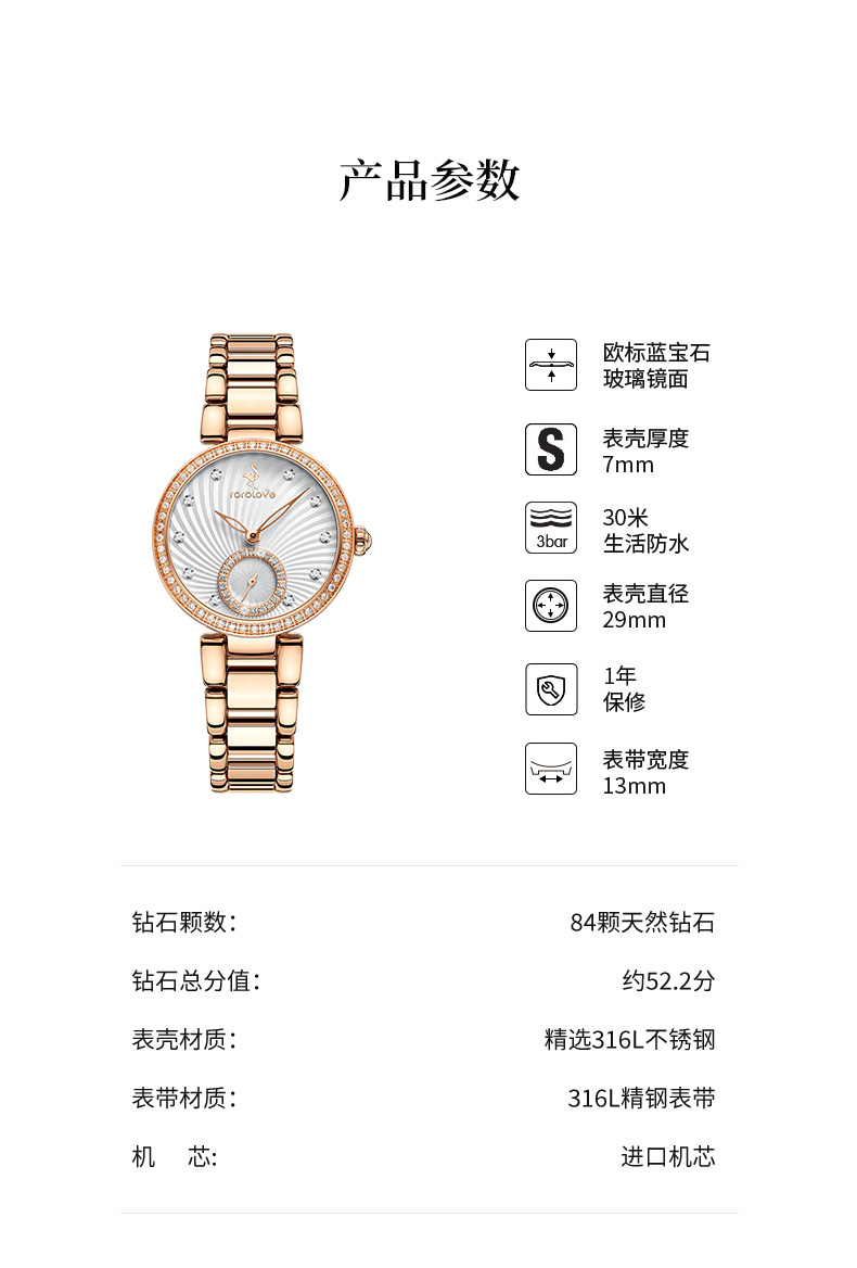 【ROROLOVE】诺爱Promise系列 天然钻石腕表 精钢天然钻石手表女轻奢气质女表(84颗钻石)