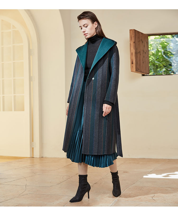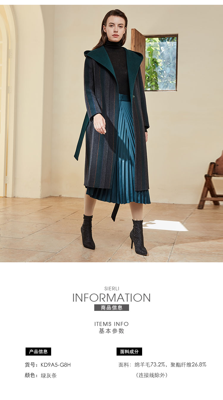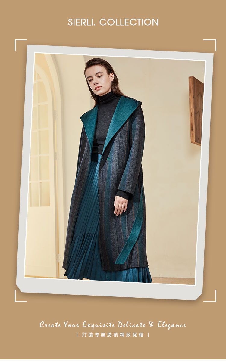 KD9A5斯尔丽瑟俪冬季新品保暖时尚修身翻领女士中长款毛呢大衣