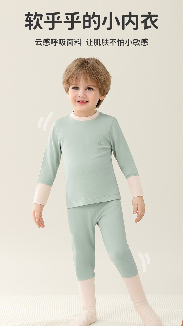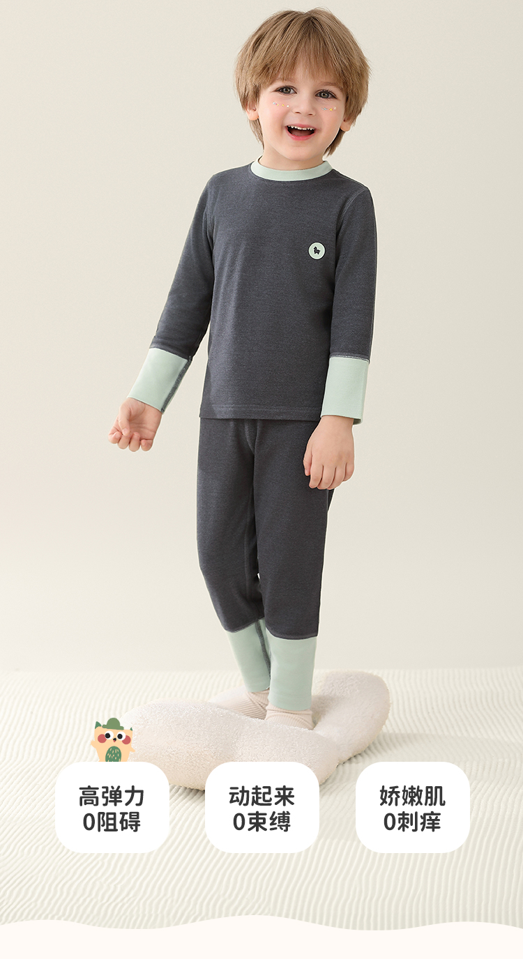 【90-140】【MQDmini】男女童撞色无骨保暖内衣套装
