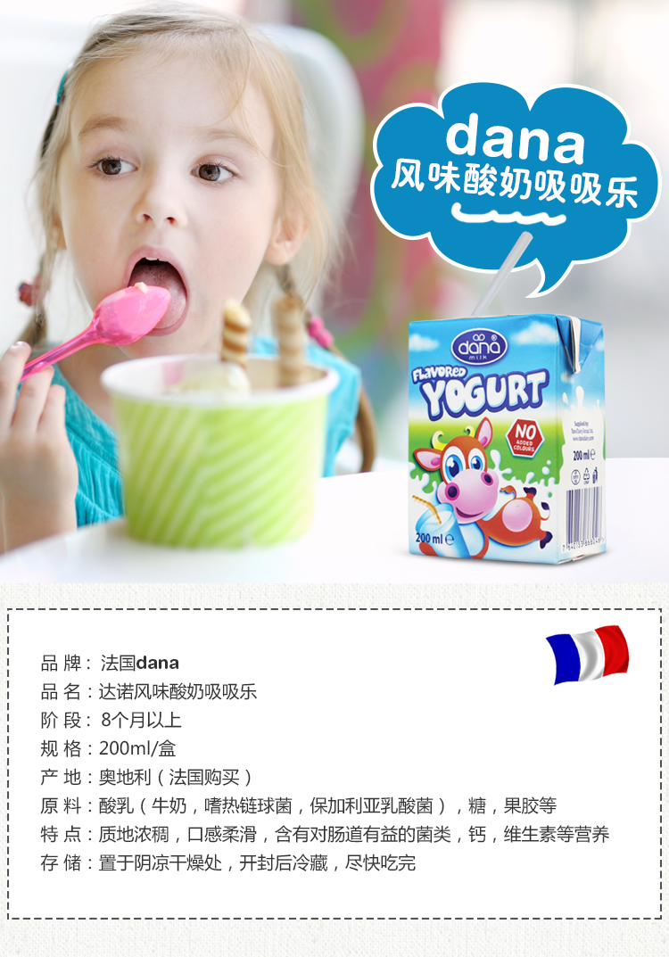 【长期团】瑞士Dana达诺儿童酸奶200ML*24【果汁乳品】