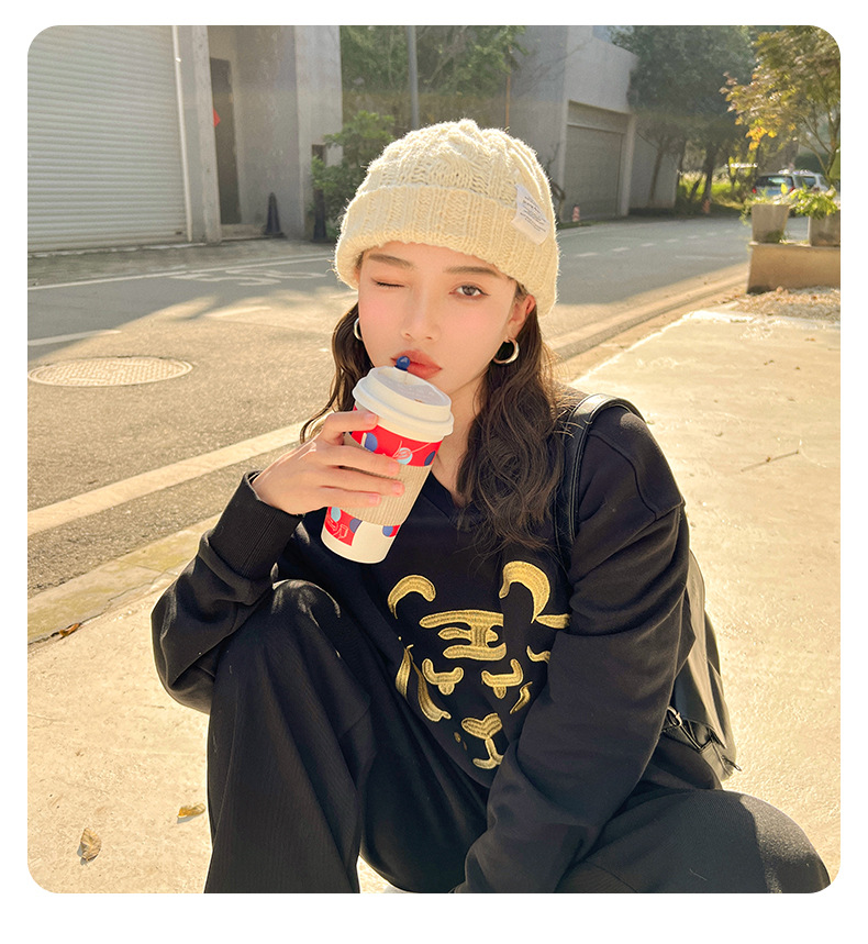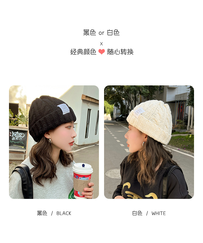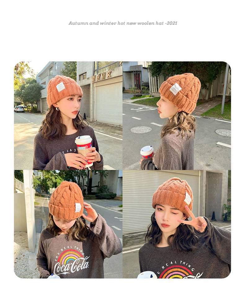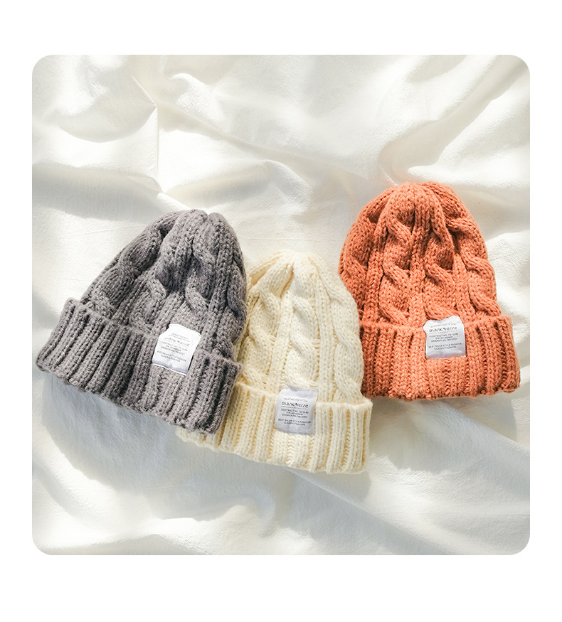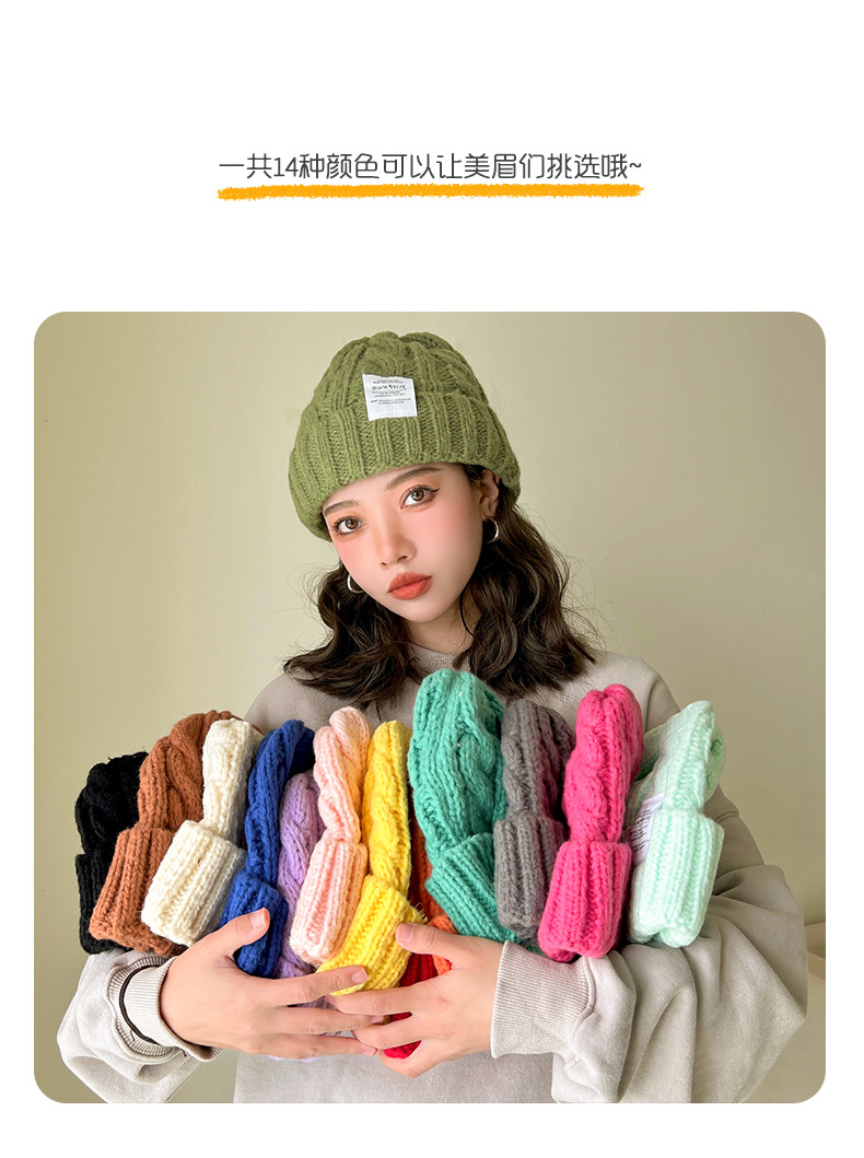 【纯色日系麻花毛线帽子】韩版秋冬学生保暖护耳针织帽 情侣百搭冷帽