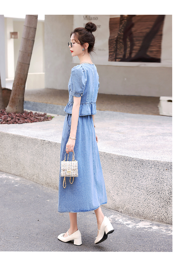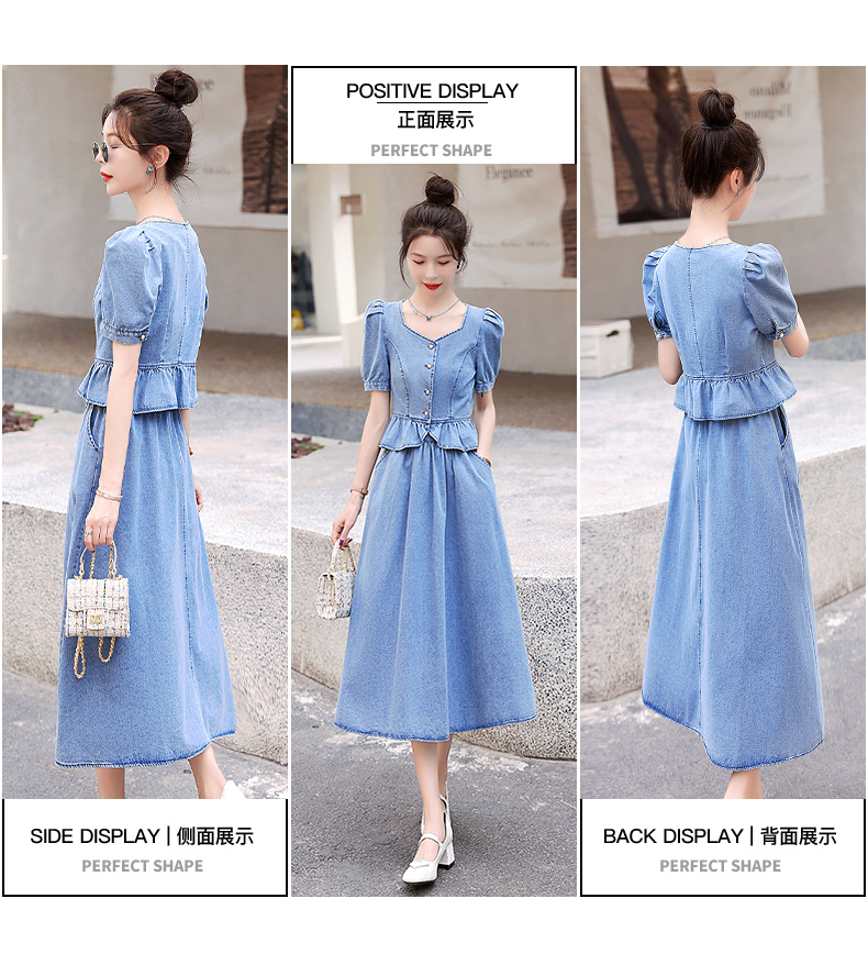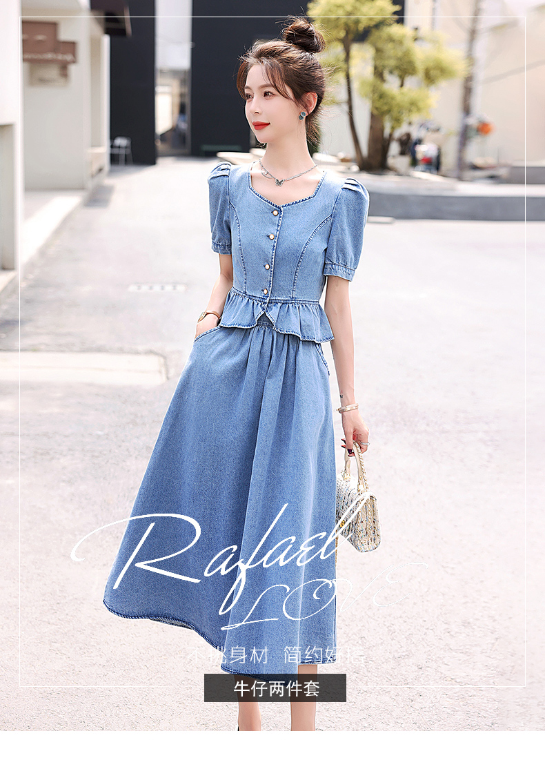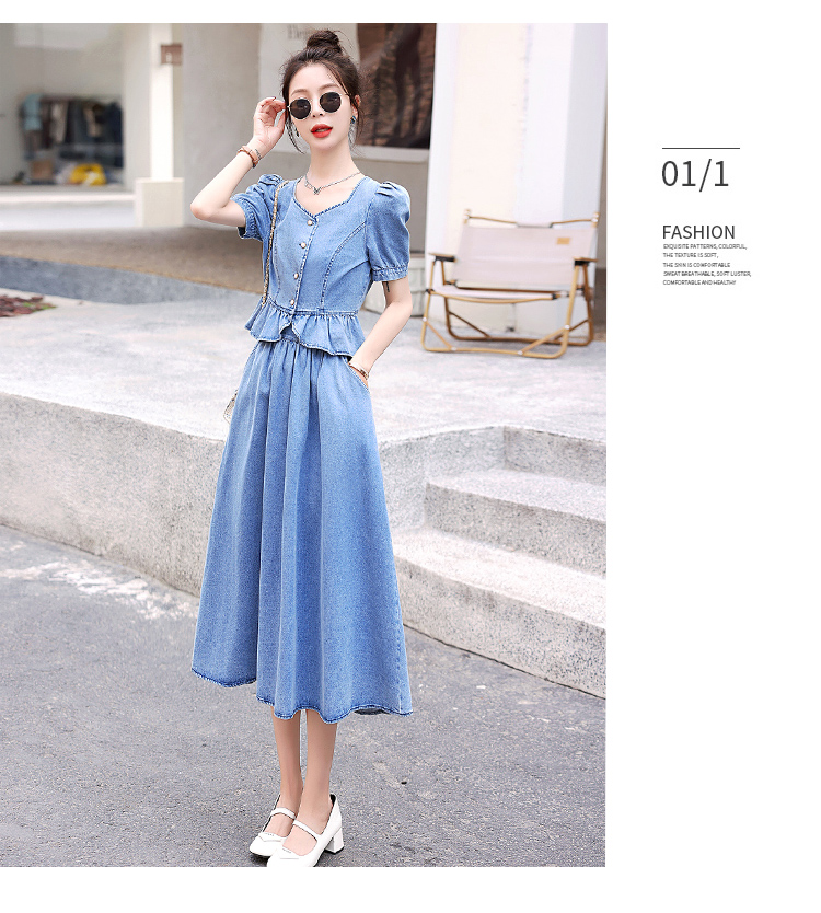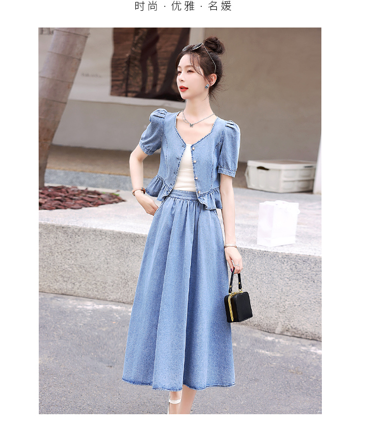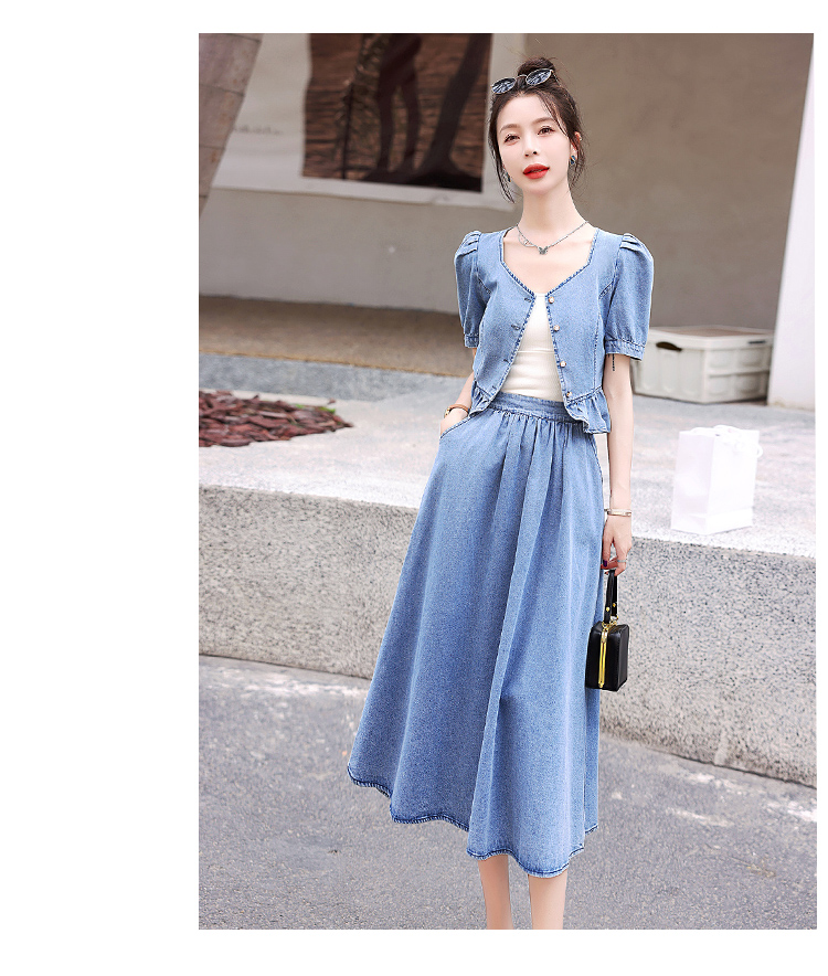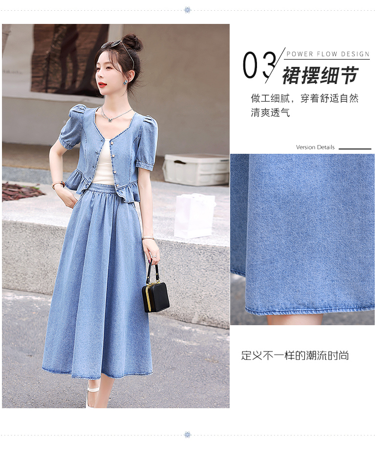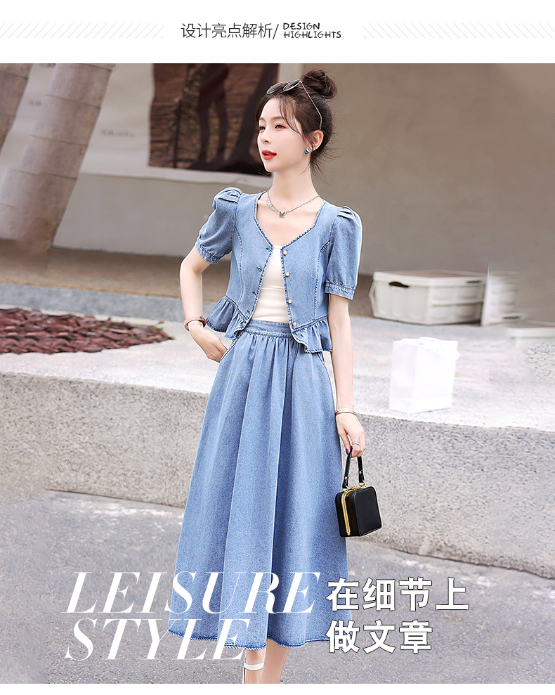 时尚气质,短袖牛仔半身裙两件套新款套装HR-BX2261-2