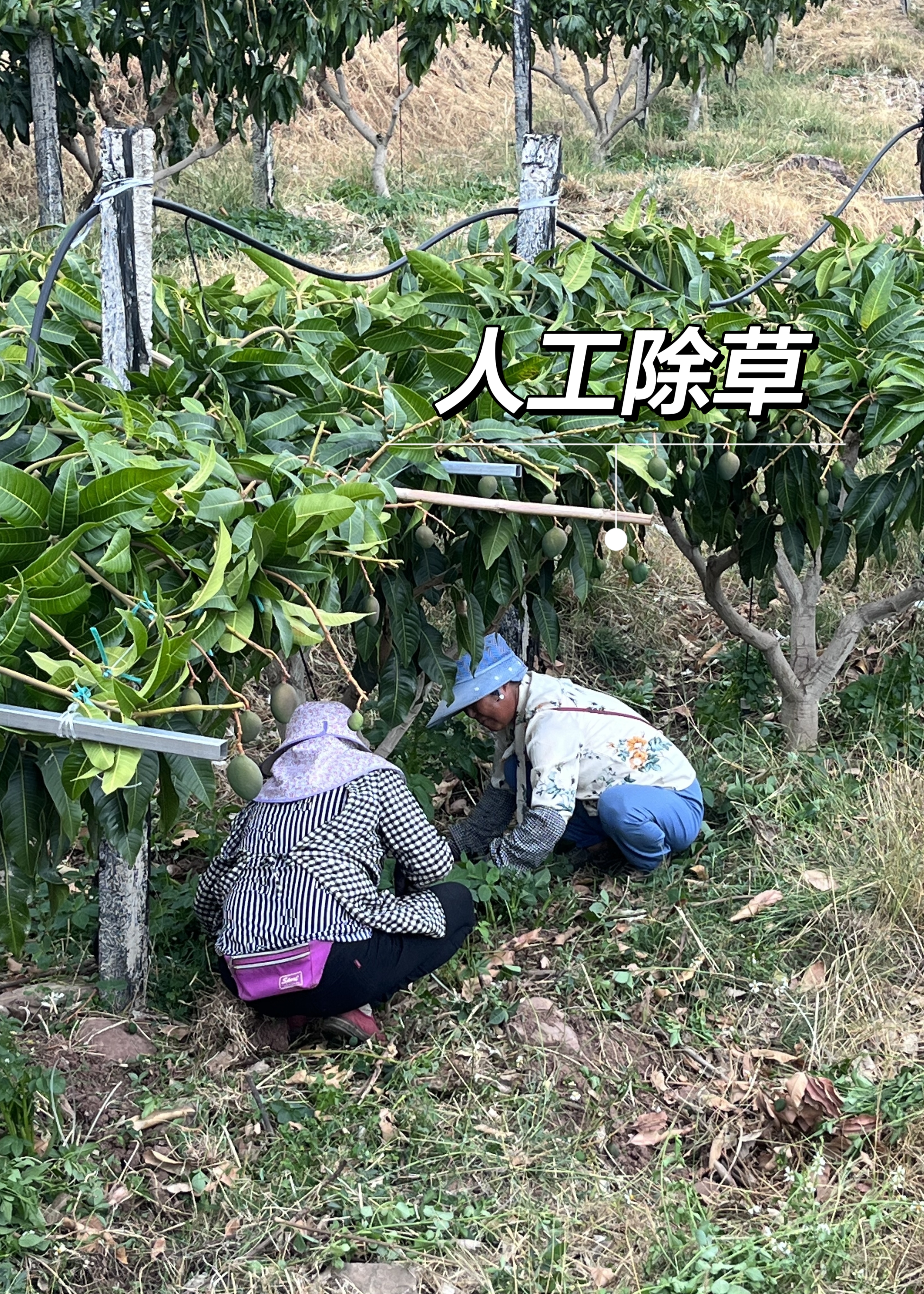 将果园里的杂草割下来盖在芒果树下