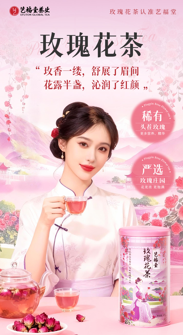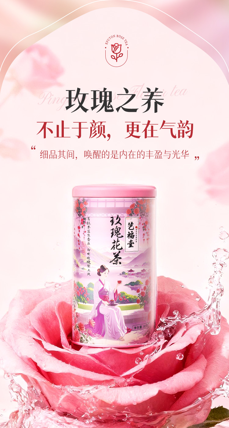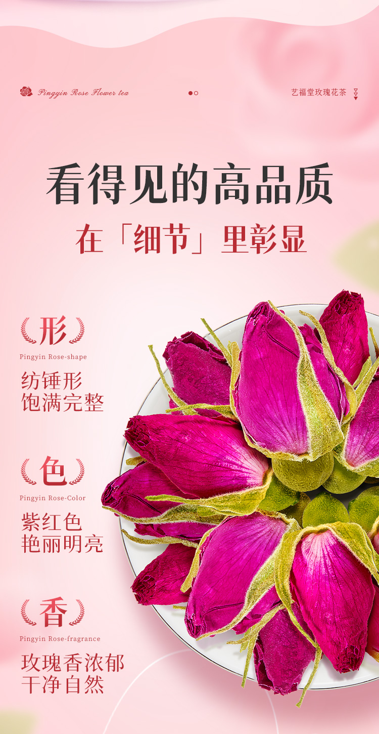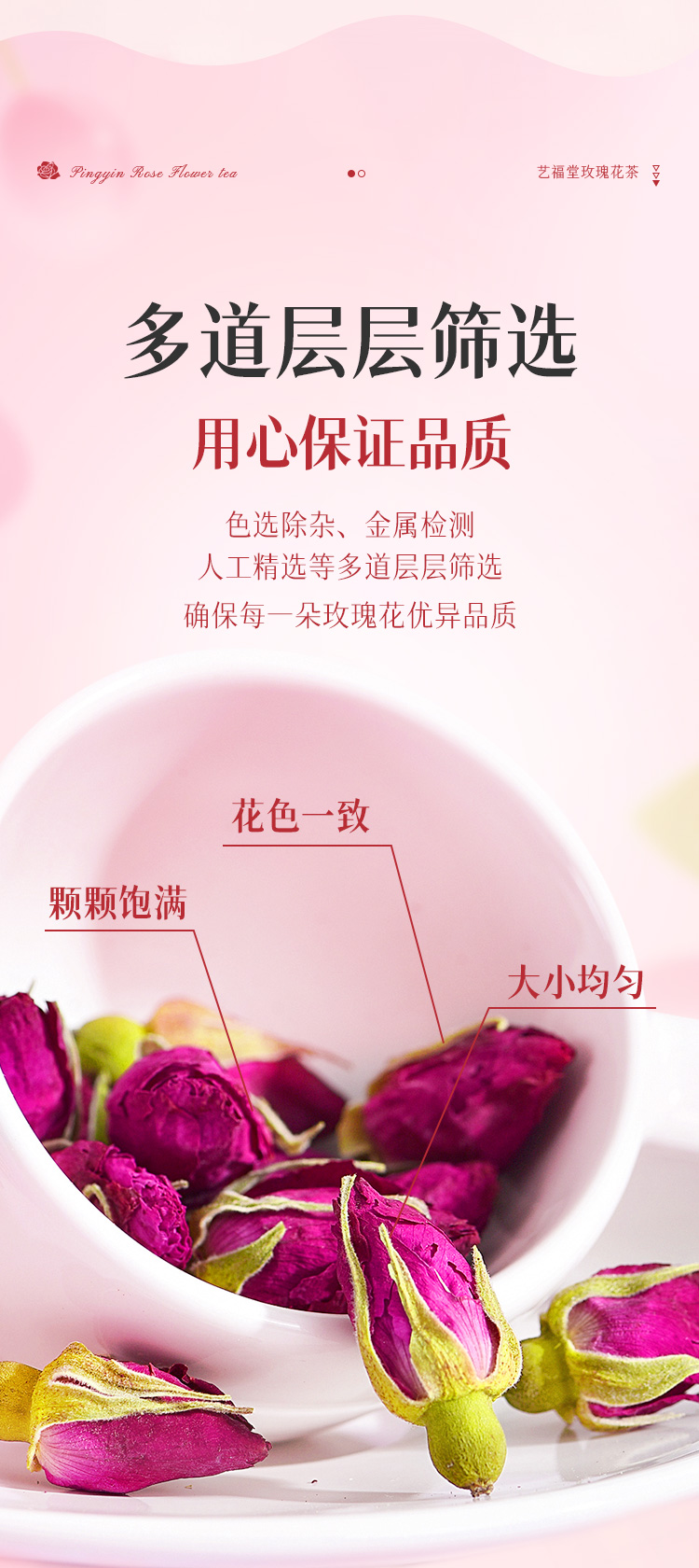 艺福堂玫瑰花茶80g/罐国风重瓣平阴玫瑰