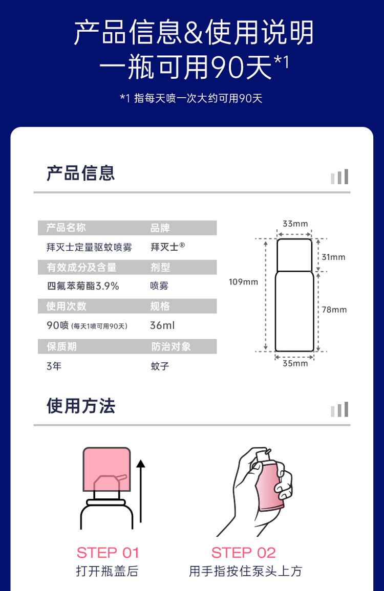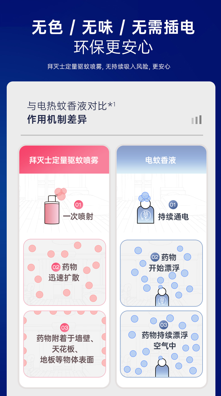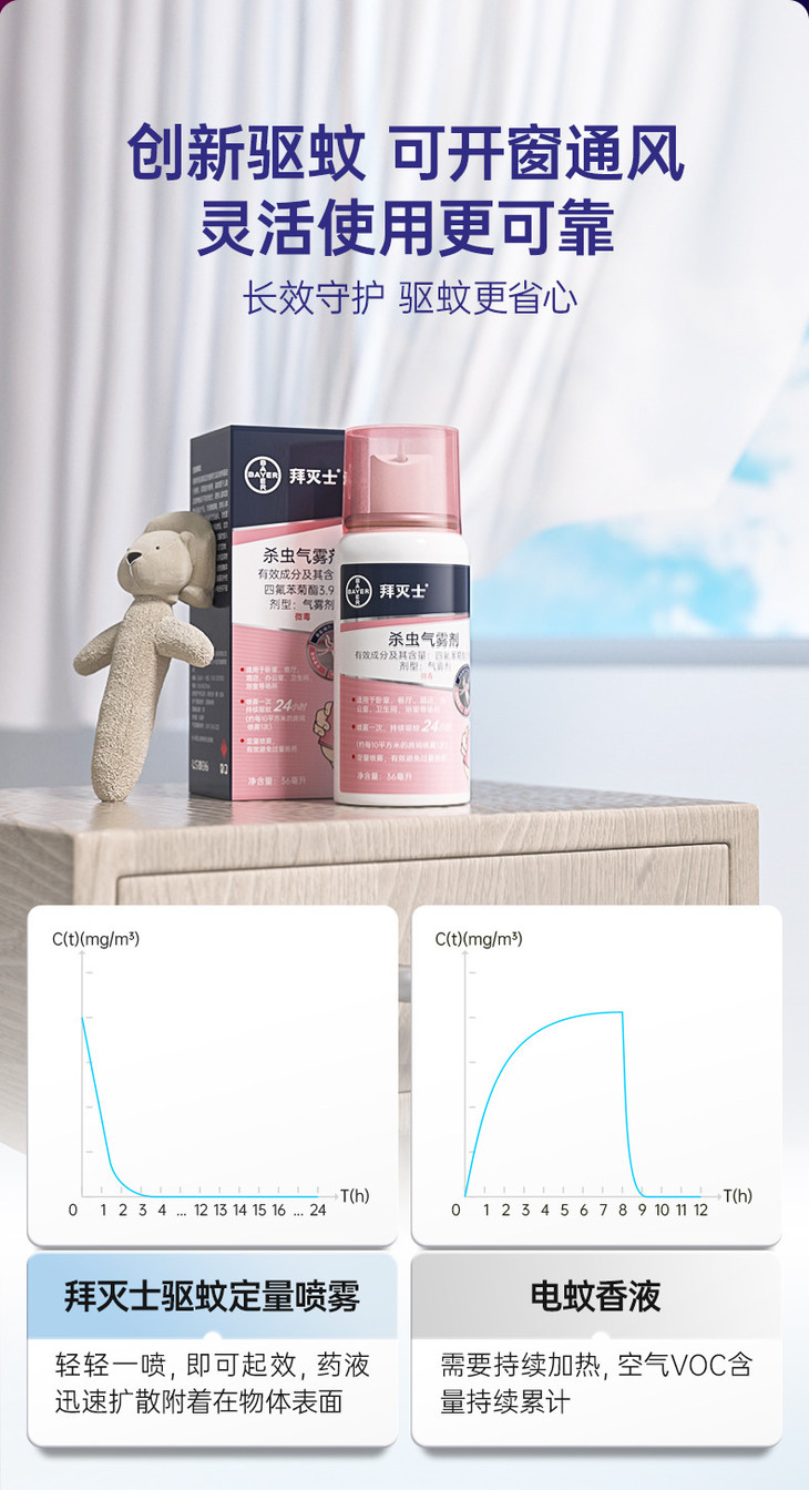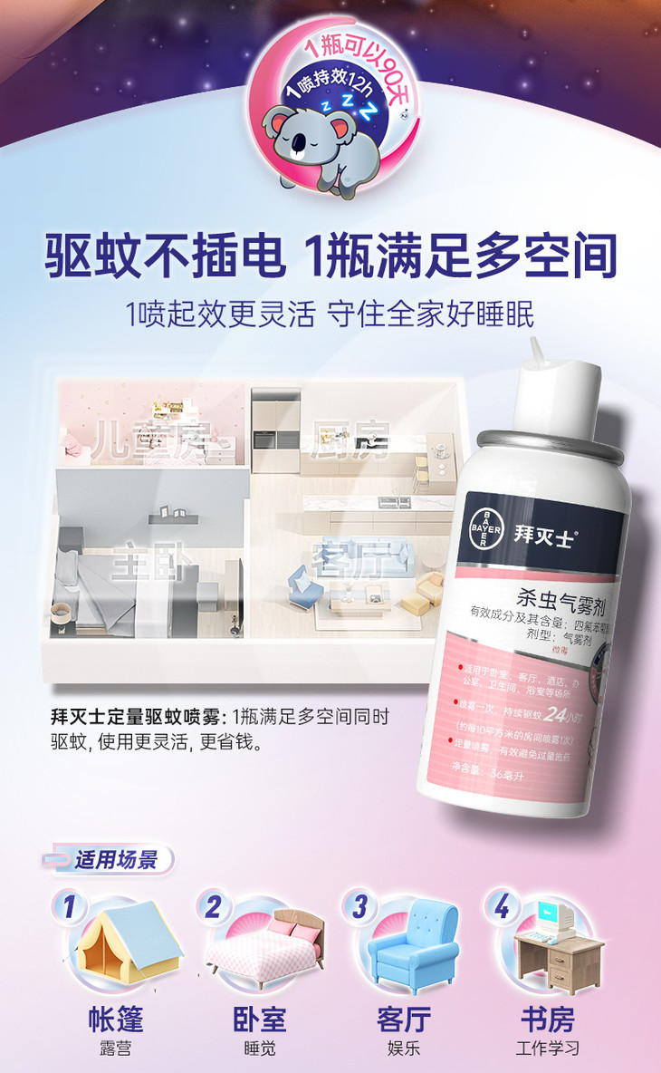 【24h持续驱蚊 买2送1】拜耳 拜灭士驱蚊喷雾 无需加热插电 驱蚊不熏人 安睡一整晚 1瓶可用90天