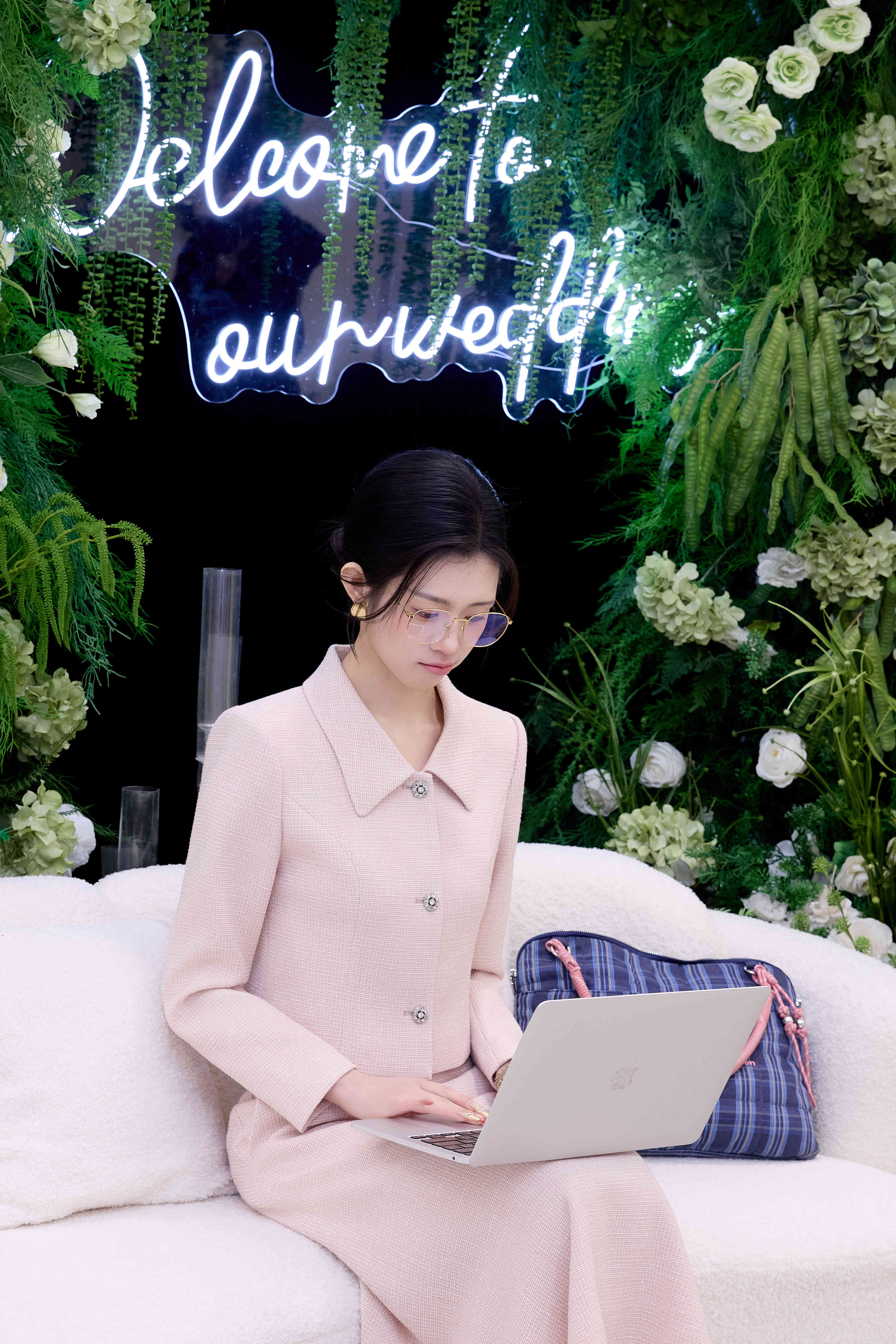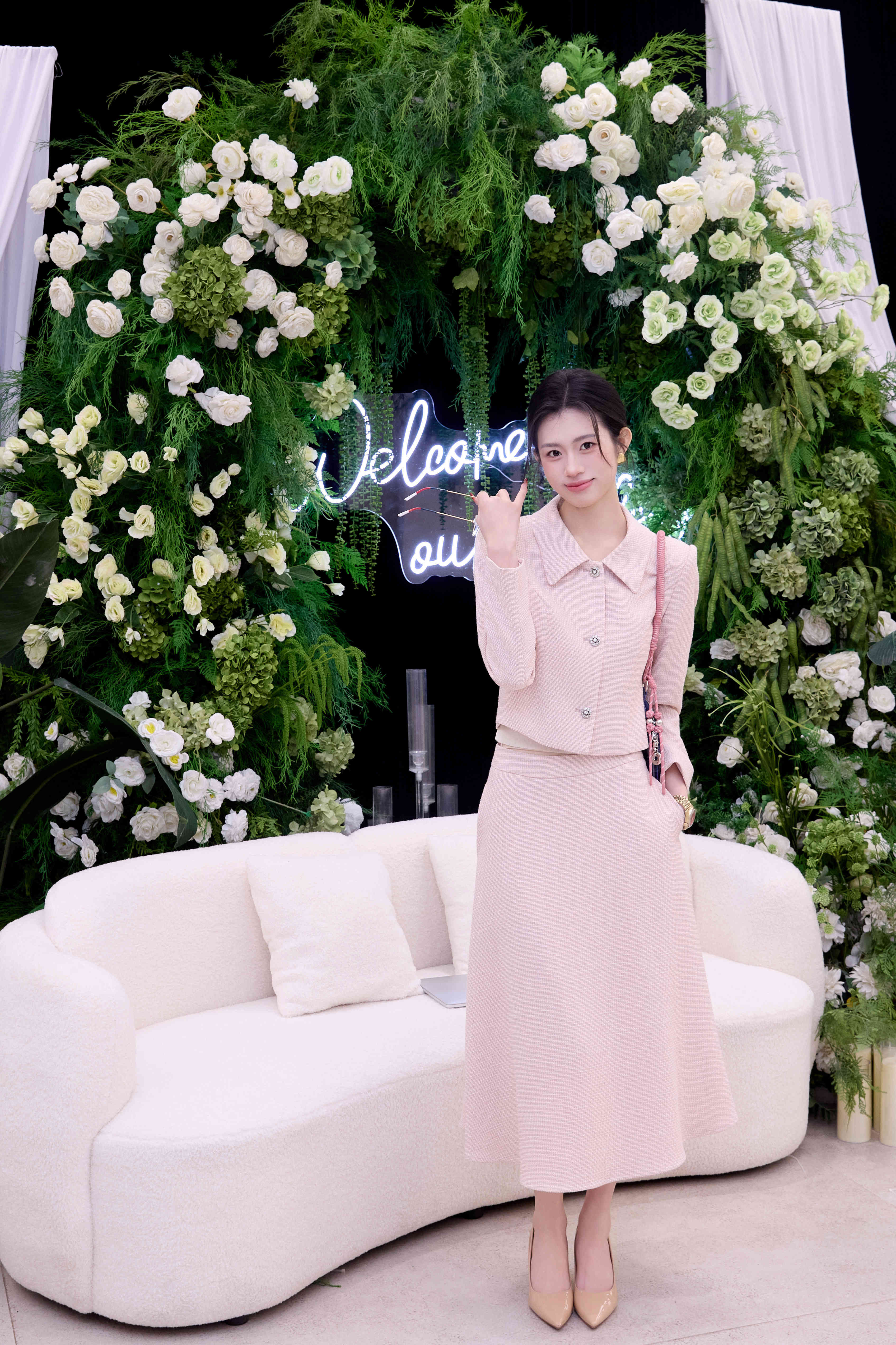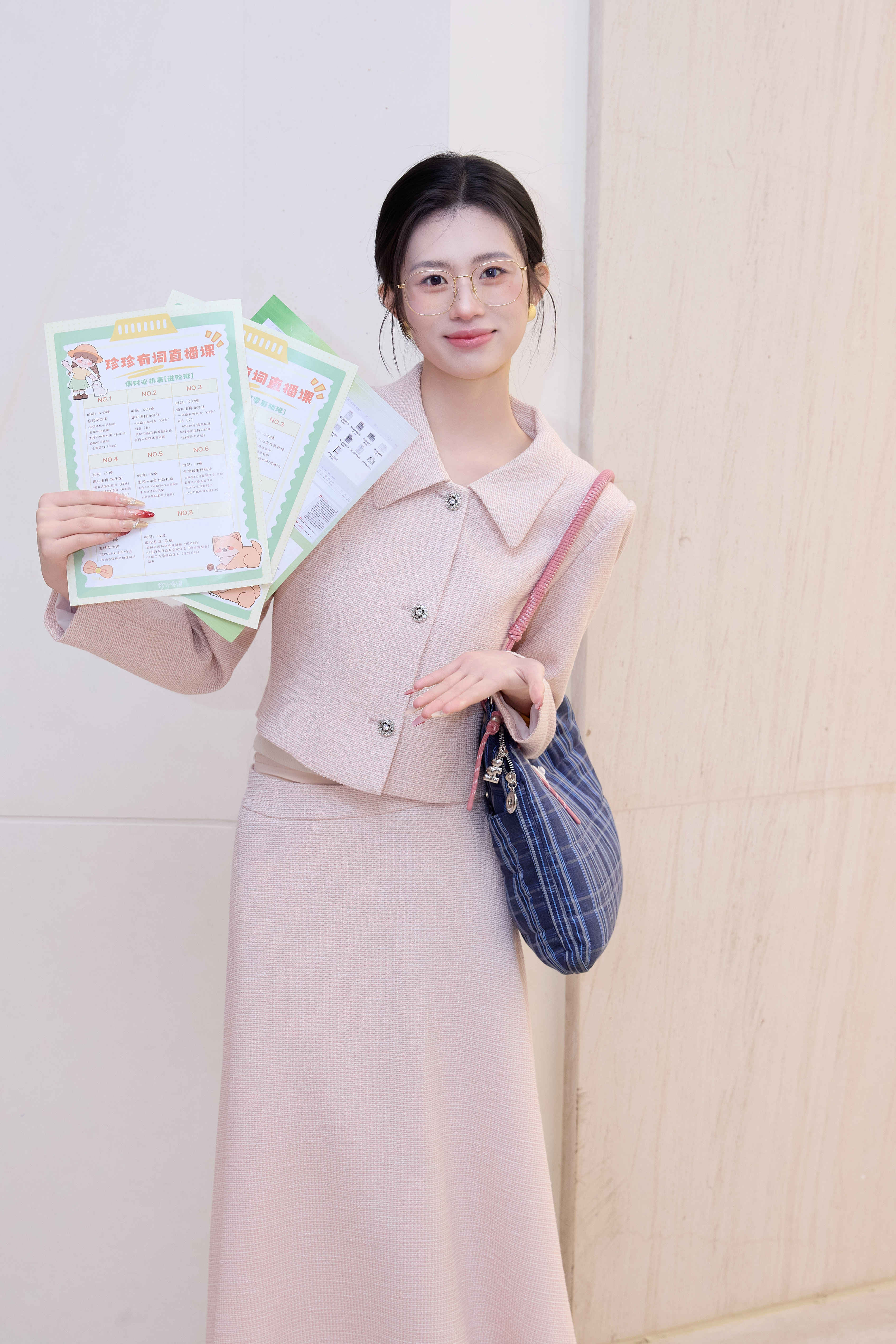 法小曼*子珍专款/粉色主持人西装三件套气质职场主持穿搭