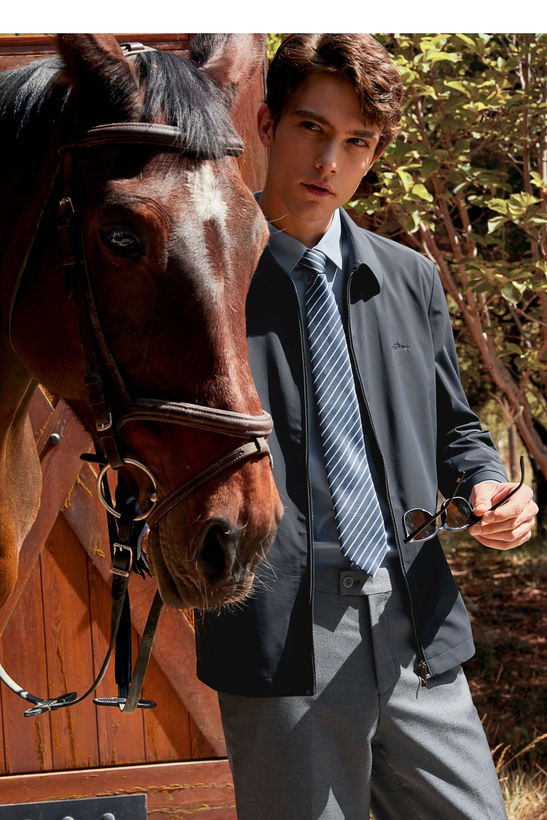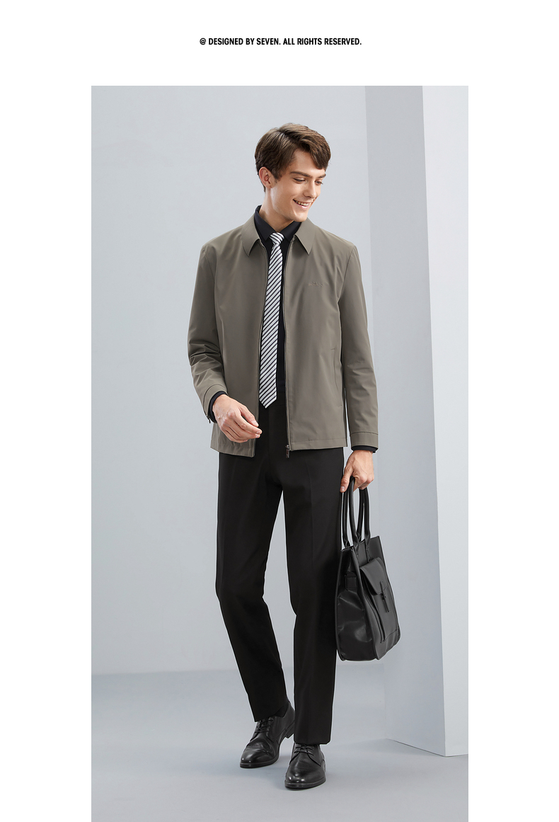 【无缝翻领】柒牌夹克男秋季新款干部商务休闲爸爸装防风外套 125K70120