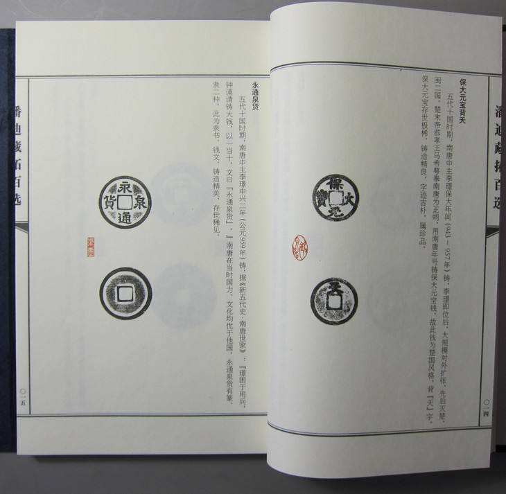 潘迪先生是知名藏家、泉商,在网络尚未普及的年代,与当时国内外一流藏家交往密切,经手珍稀钱币甚多,如三孔布“武阳”、折三型泰和重宝等,每有精品,便留下拓片,日积月累,遂蔚为大观。编者从潘先生所留原拓中精选100品,印制了这部《潘迪藏拓百选》,既是对古泉文化的传承,也是表达对那一代人的敬意。